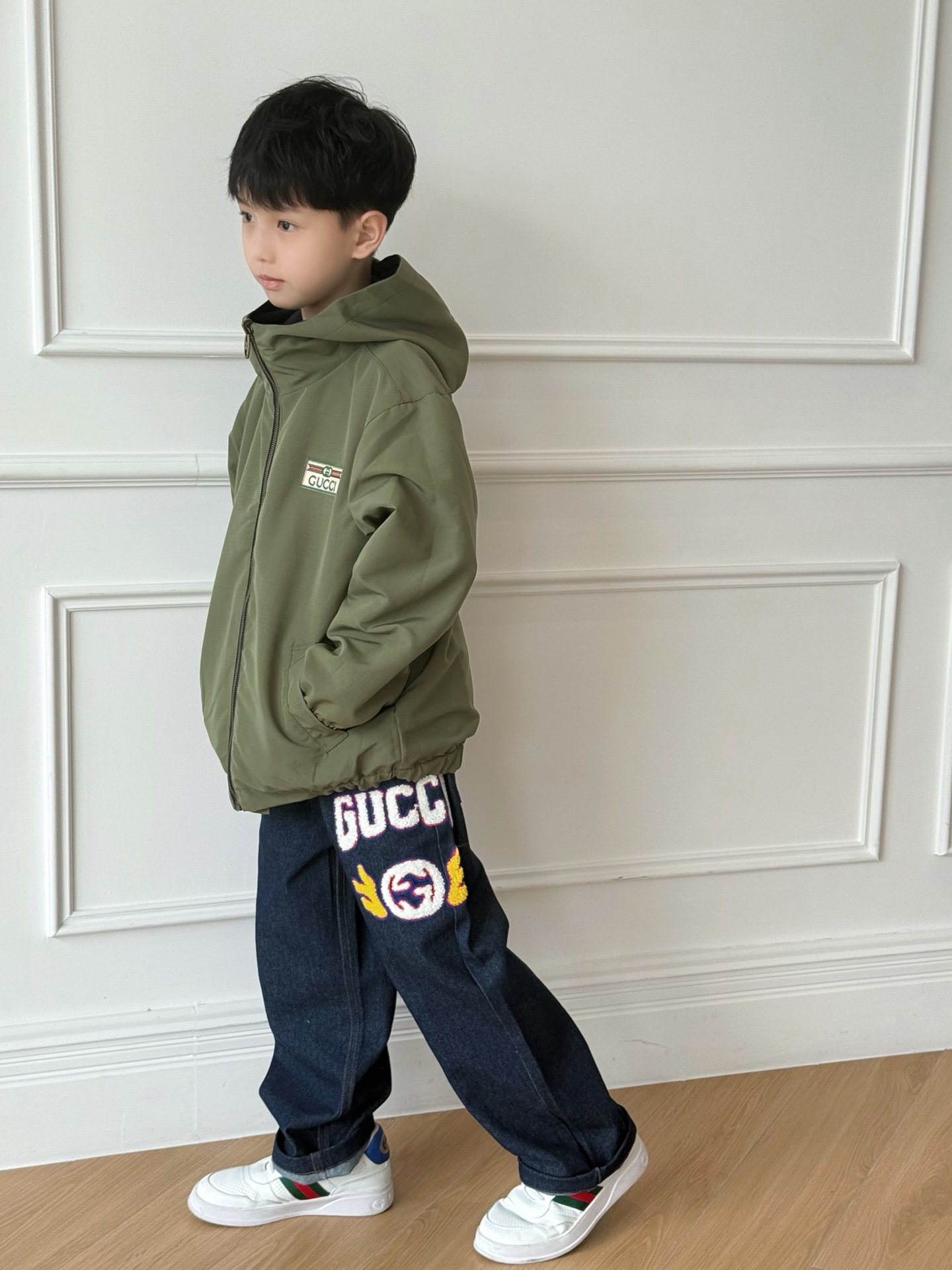 This children's clothes is AAAAA 1:1 quality (superb). Materials used are identical to the original ones. trademark marks are indistinguishable to the authentic. Photos take by actual children's clothes, what you receive will be 100% same with our photos.