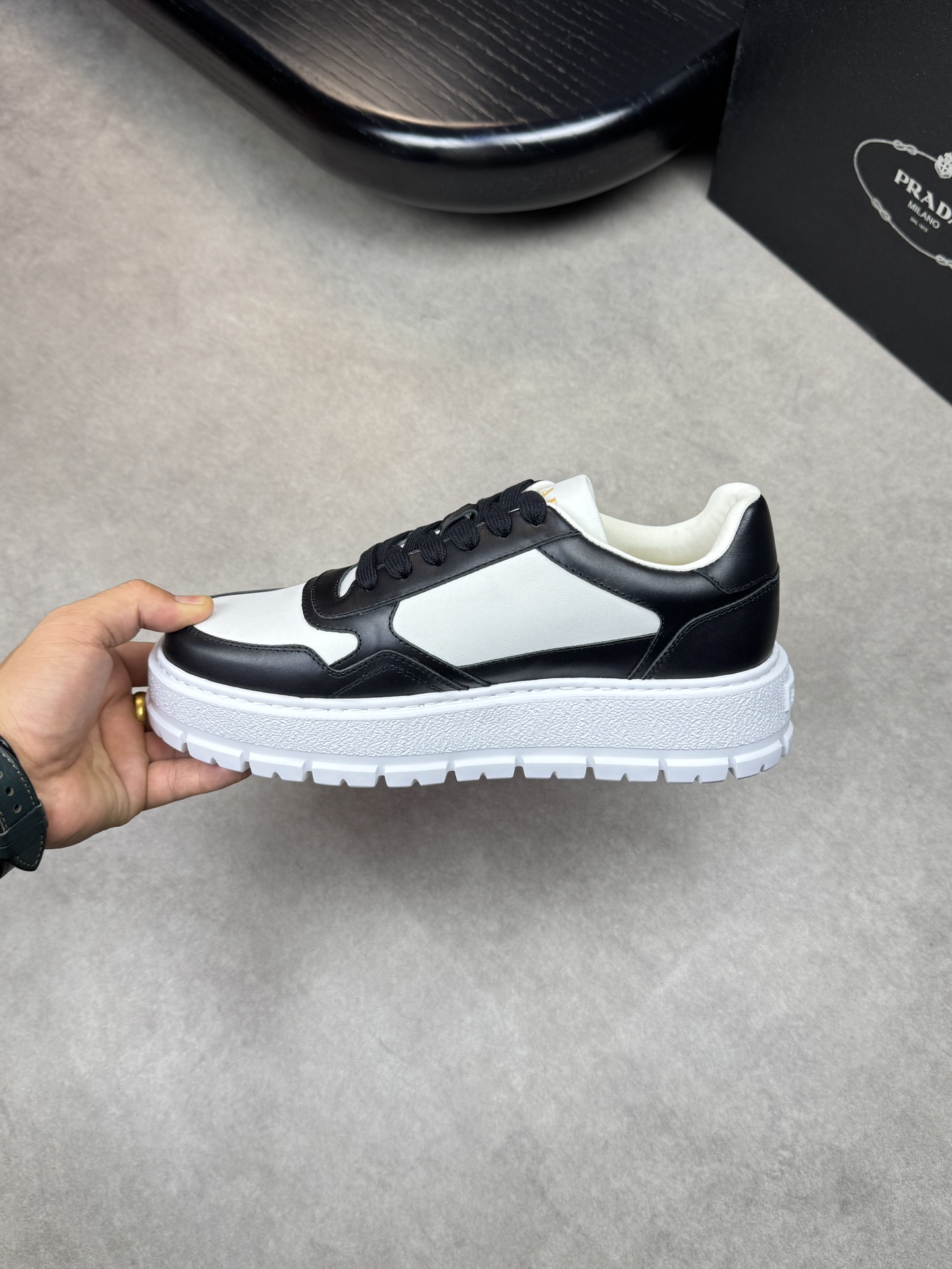 This shoes is AAAAA 1:1 quality (superb). Materials used are identical to the original ones. Prada trademark marks are indistinguishable to the authentic. Photos take by actual shoes, what you receive will be 100% same with our photos.