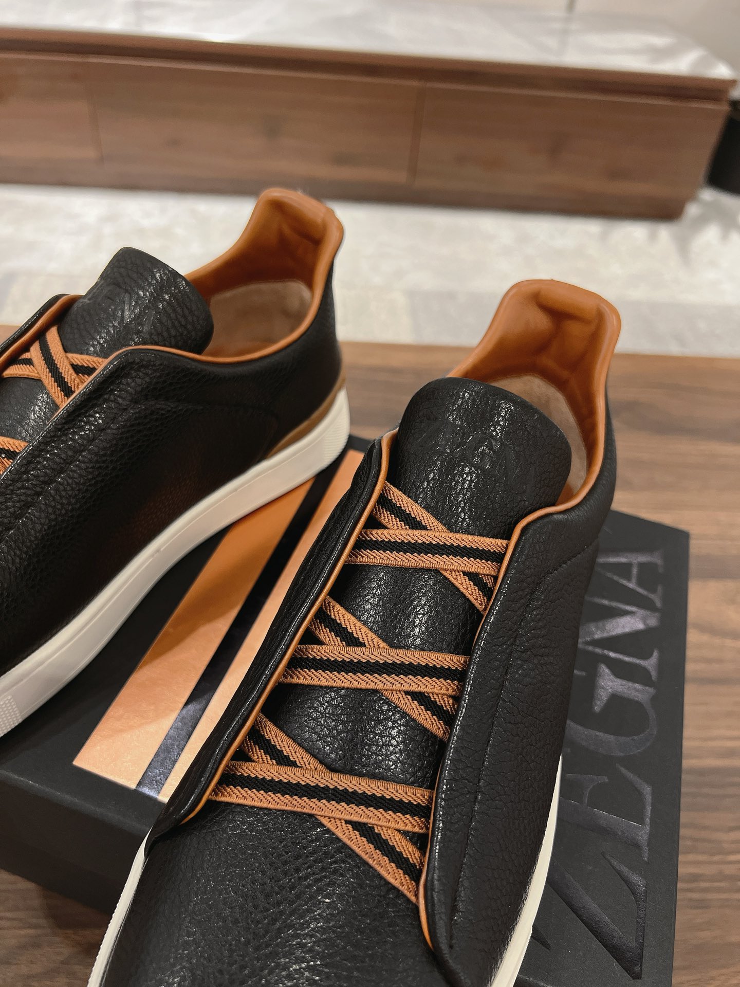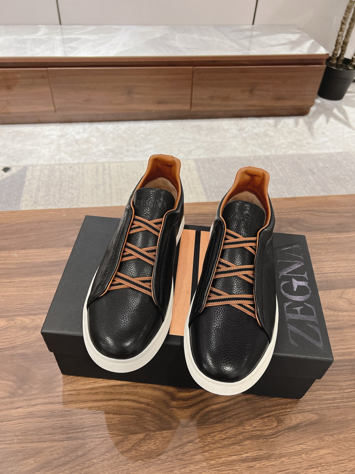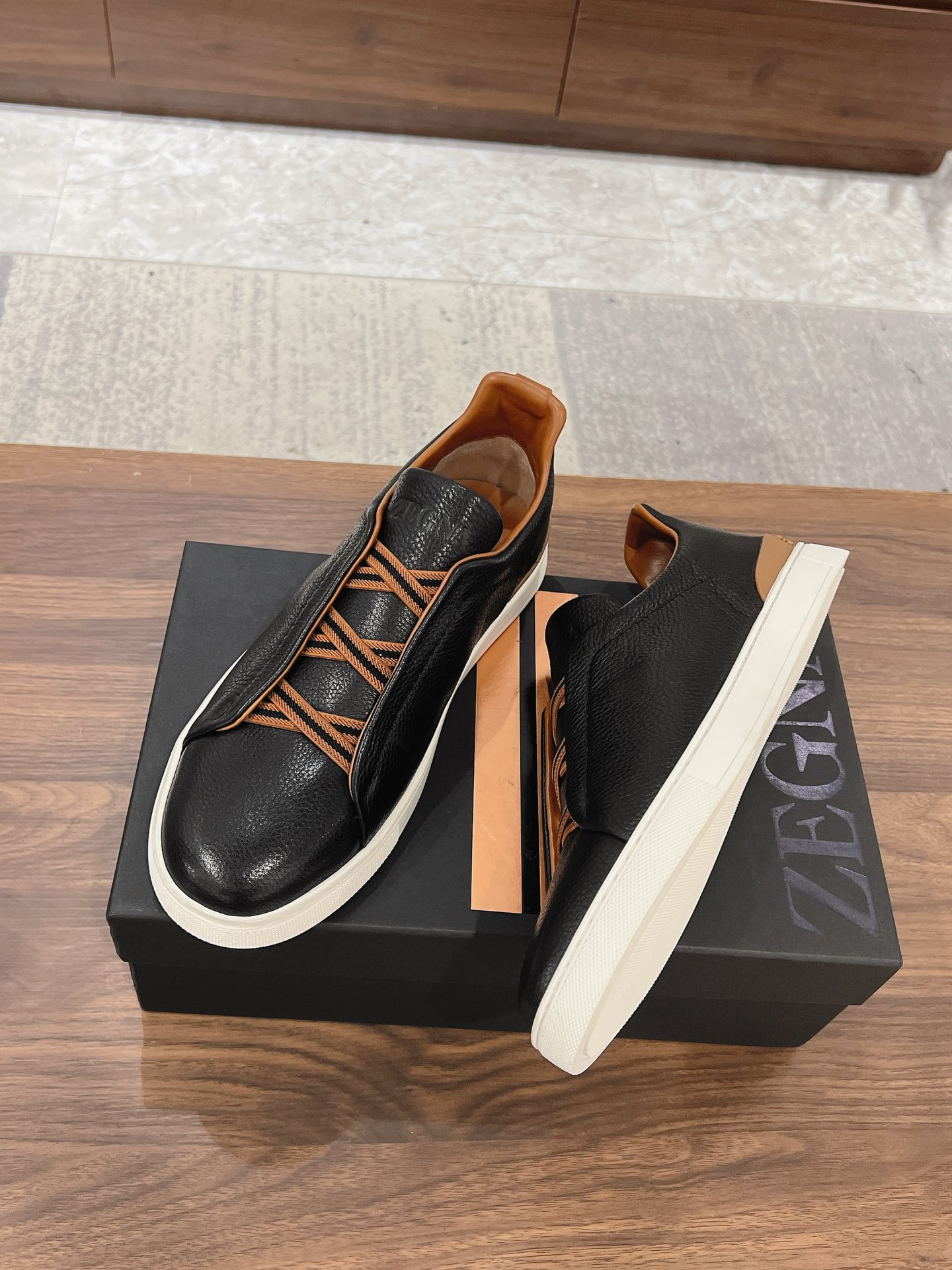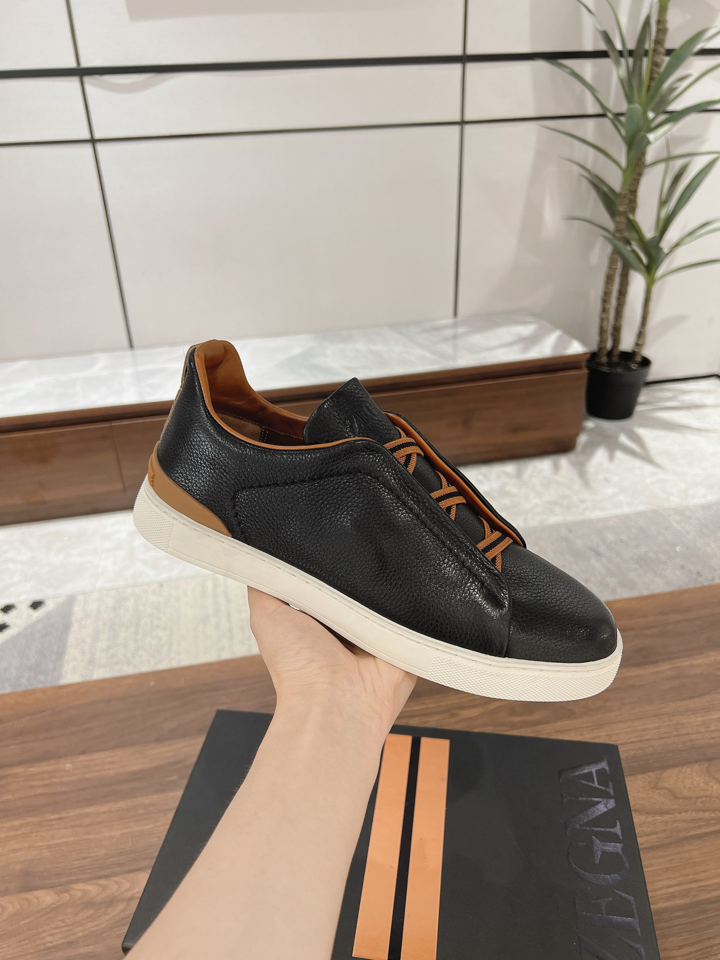 This shoes is AAAAA 1:1 quality (superb). Materials used are identical to the original ones. Zegna trademark marks are indistinguishable to the authentic. Photos take by actual shoes, what you receive will be 100% same with our photos.