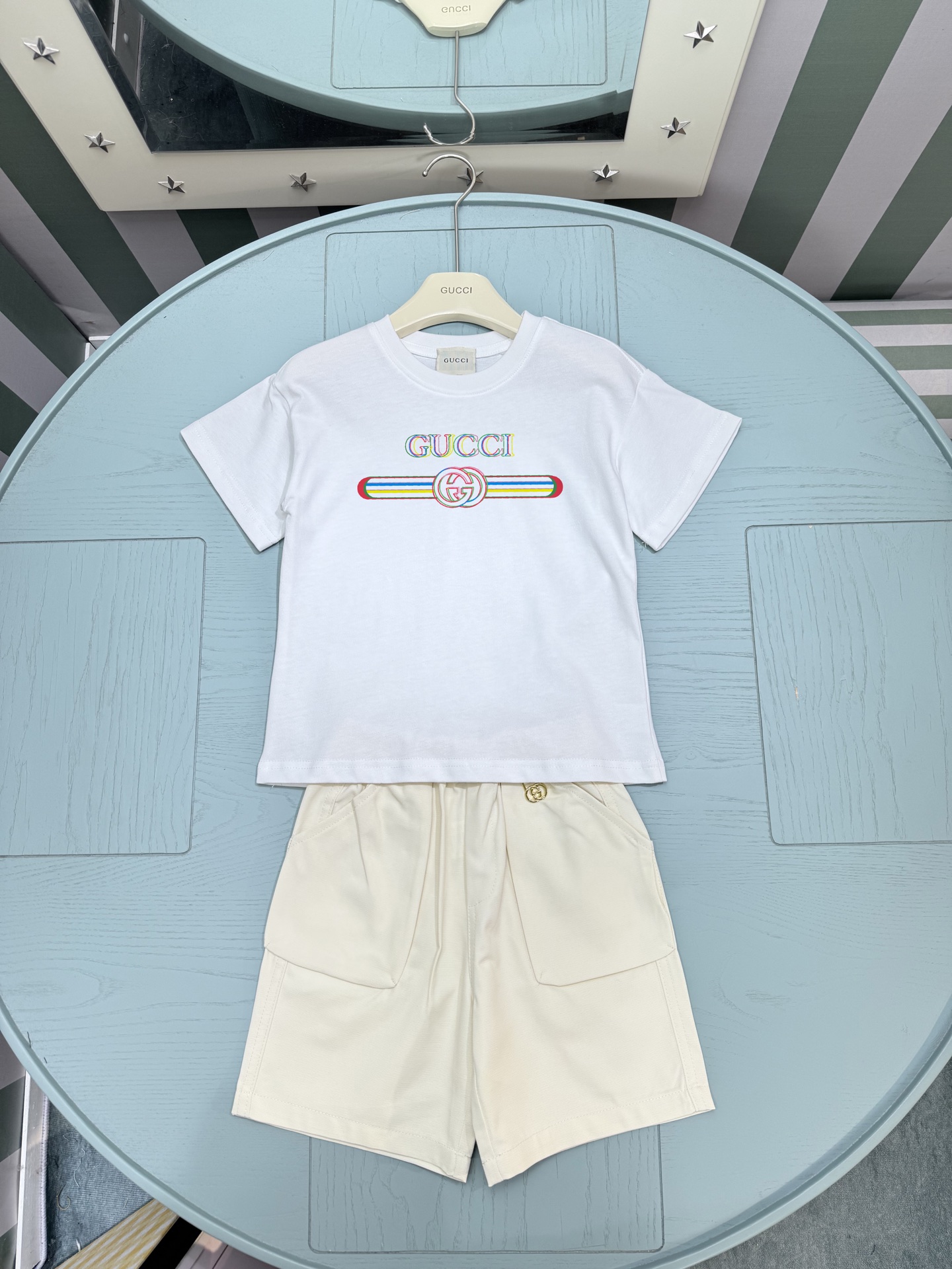 This children's clothes is AAAAA 1:1 quality (superb). Materials used are identical to the original ones. trademark marks are indistinguishable to the authentic. Photos take by actual children's clothes, what you receive will be 100% same with our photos.