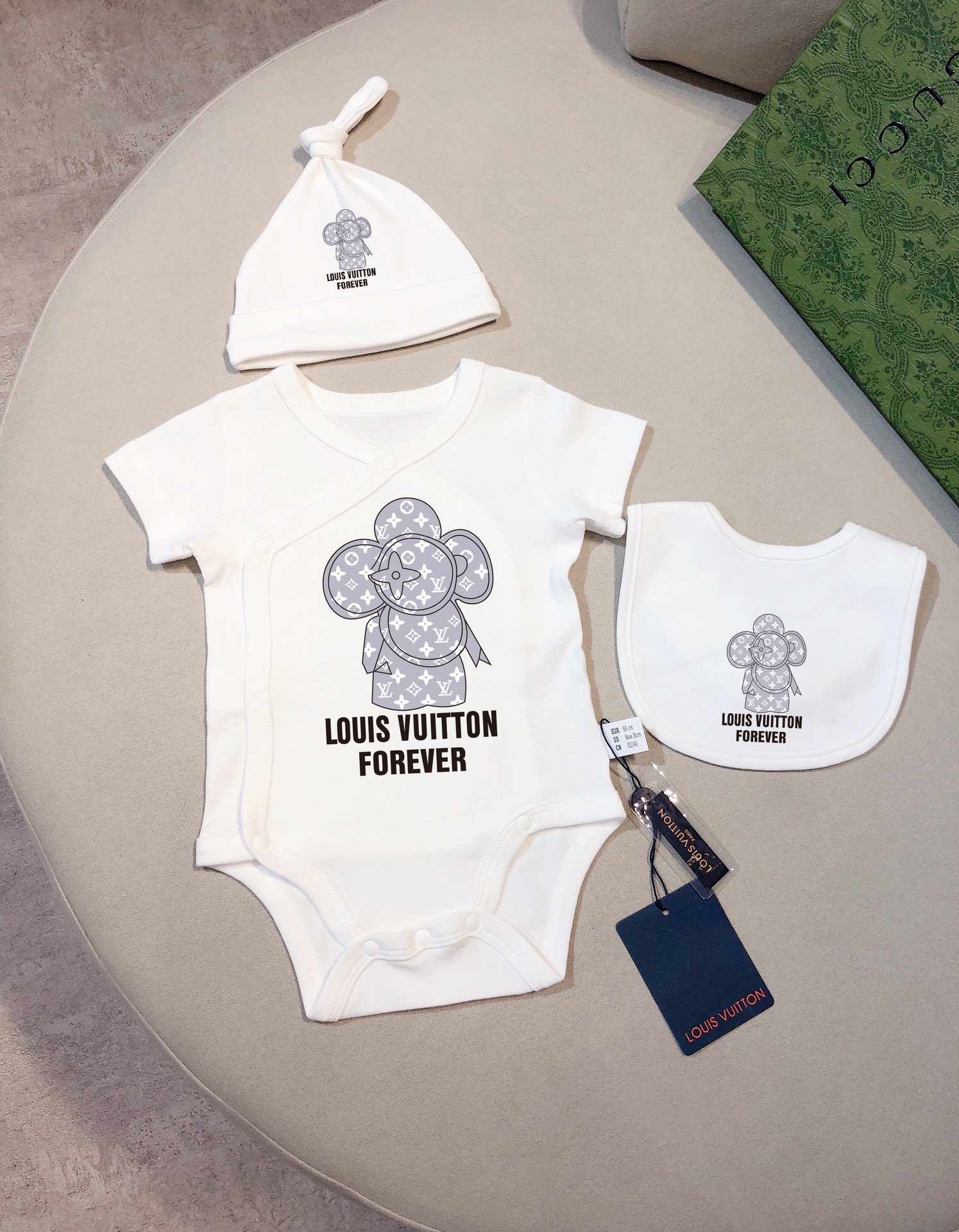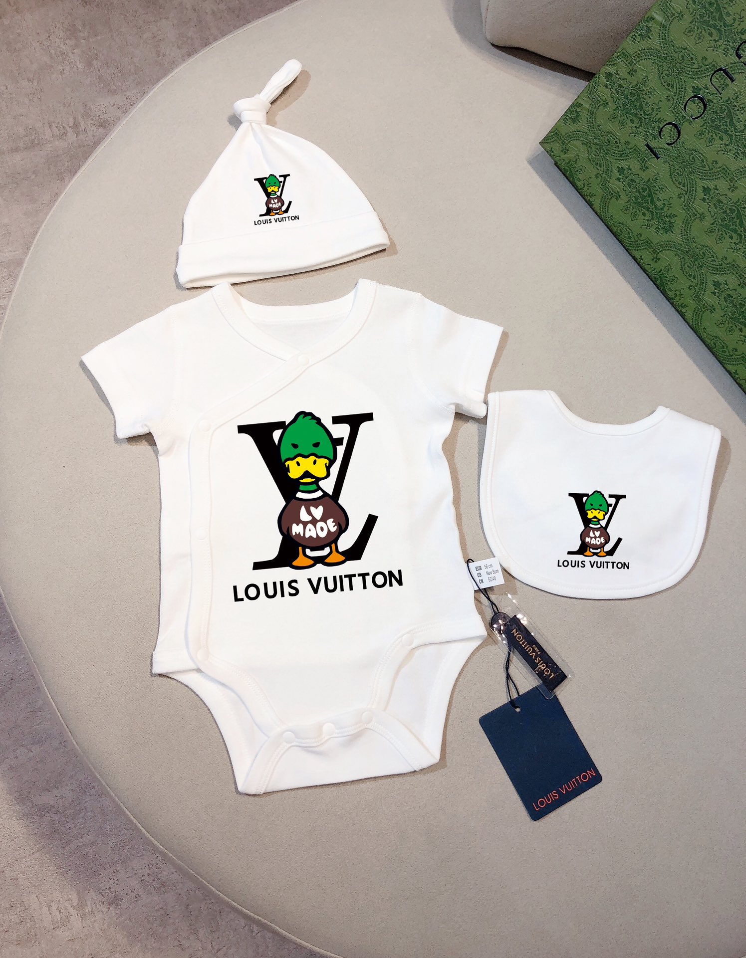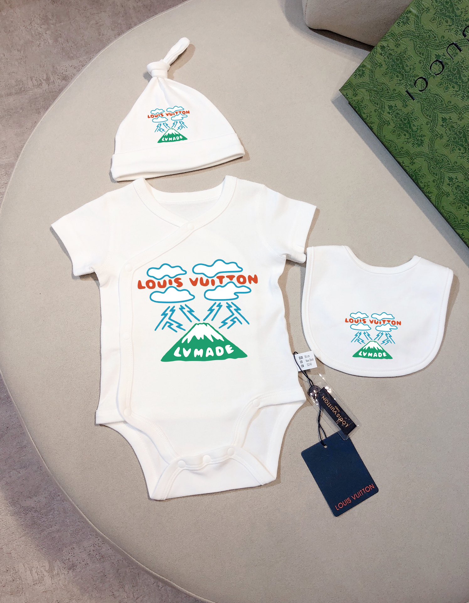This children's clothes is AAAAA 1:1 quality (superb). Materials used are identical to the original ones. trademark marks are indistinguishable to the authentic. Photos take by actual children's clothes, what you receive will be 100% same with our photos.