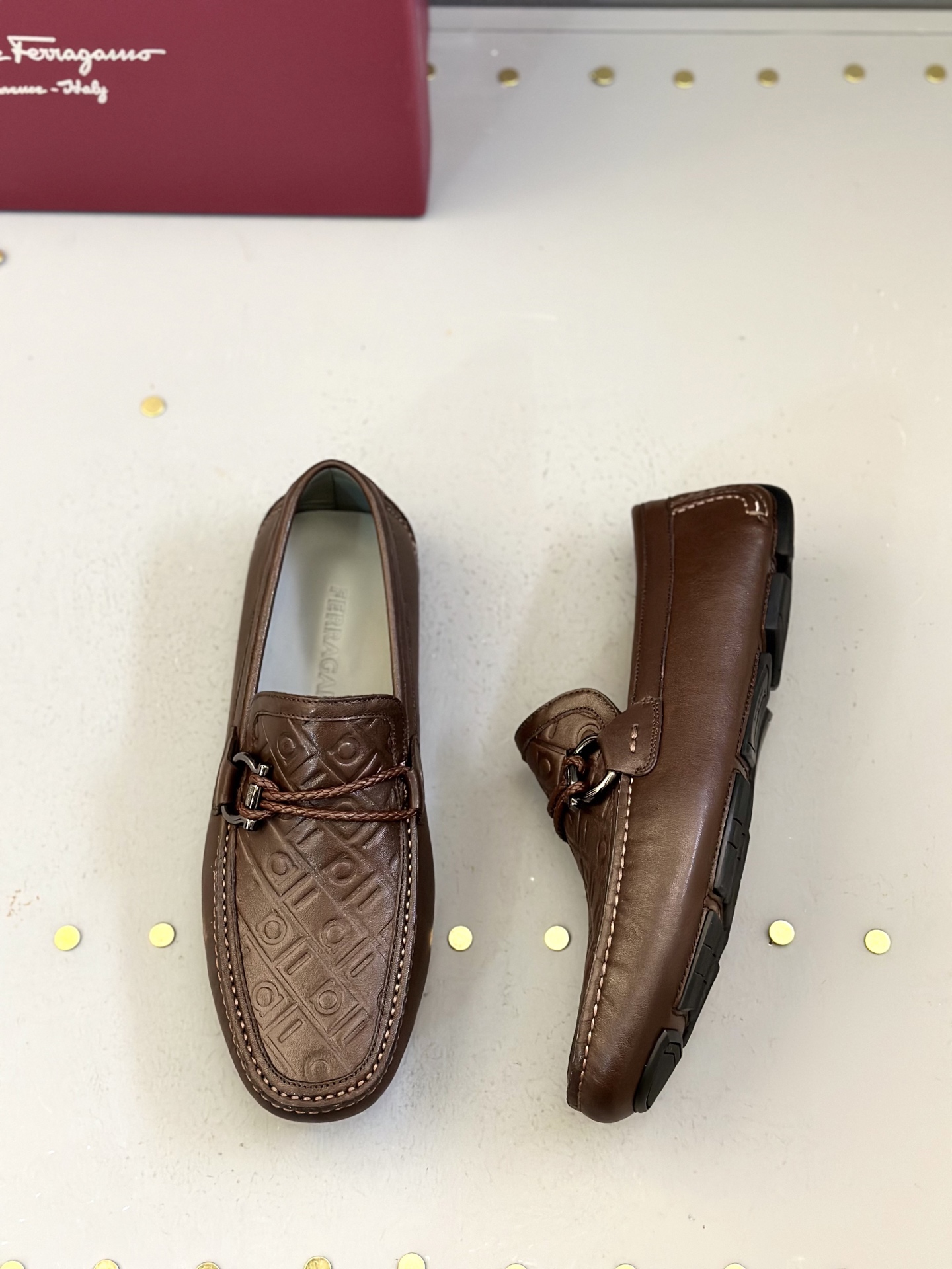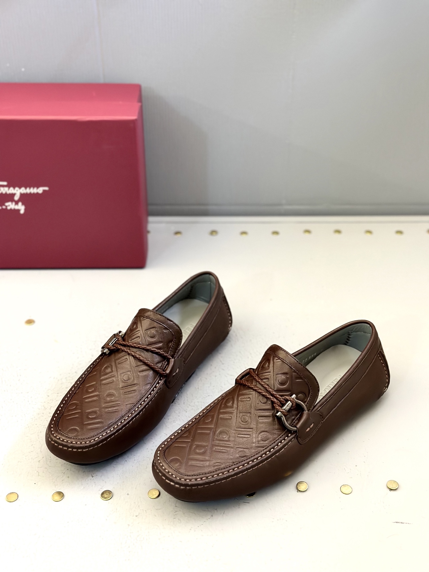 This shoes is AAAAA 1:1 quality (superb). Materials used are identical to the original ones. Salvatore Ferragamo trademark marks are indistinguishable to the authentic. Photos take by actual shoes, what you receive will be 100% same with our photos.