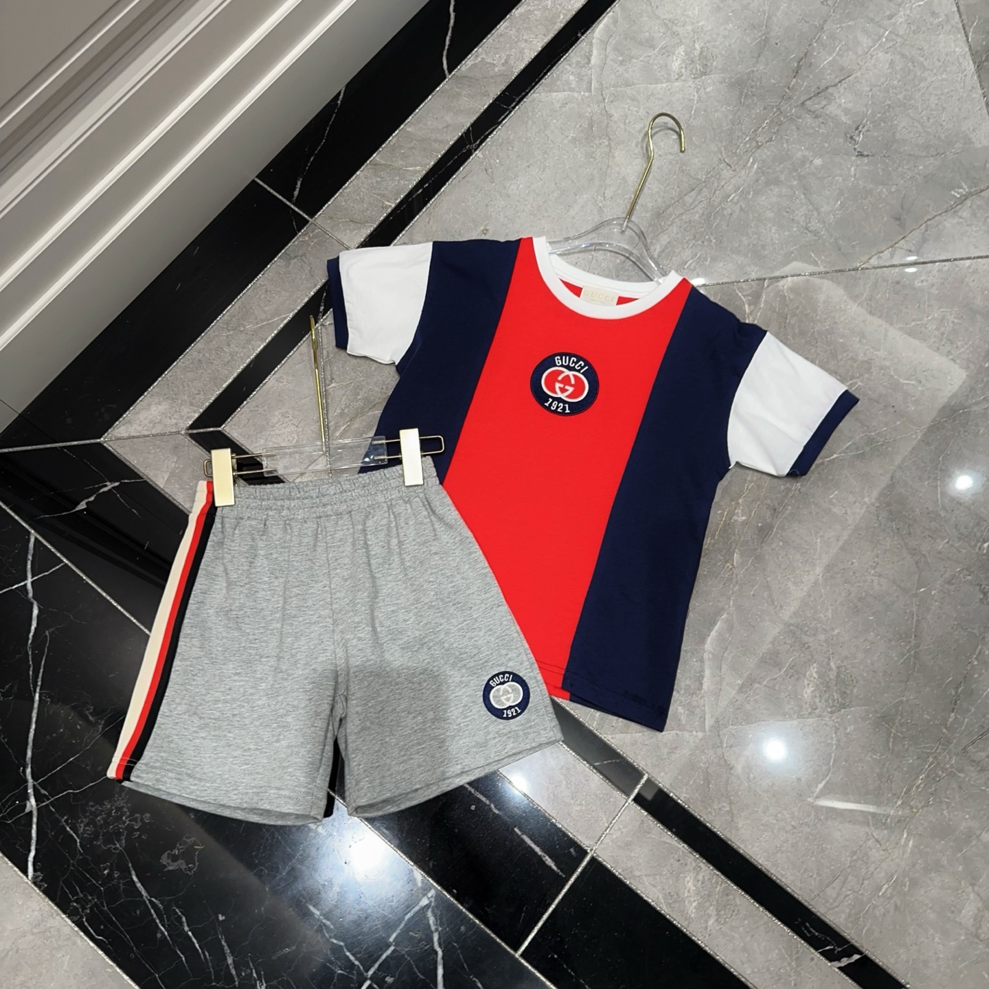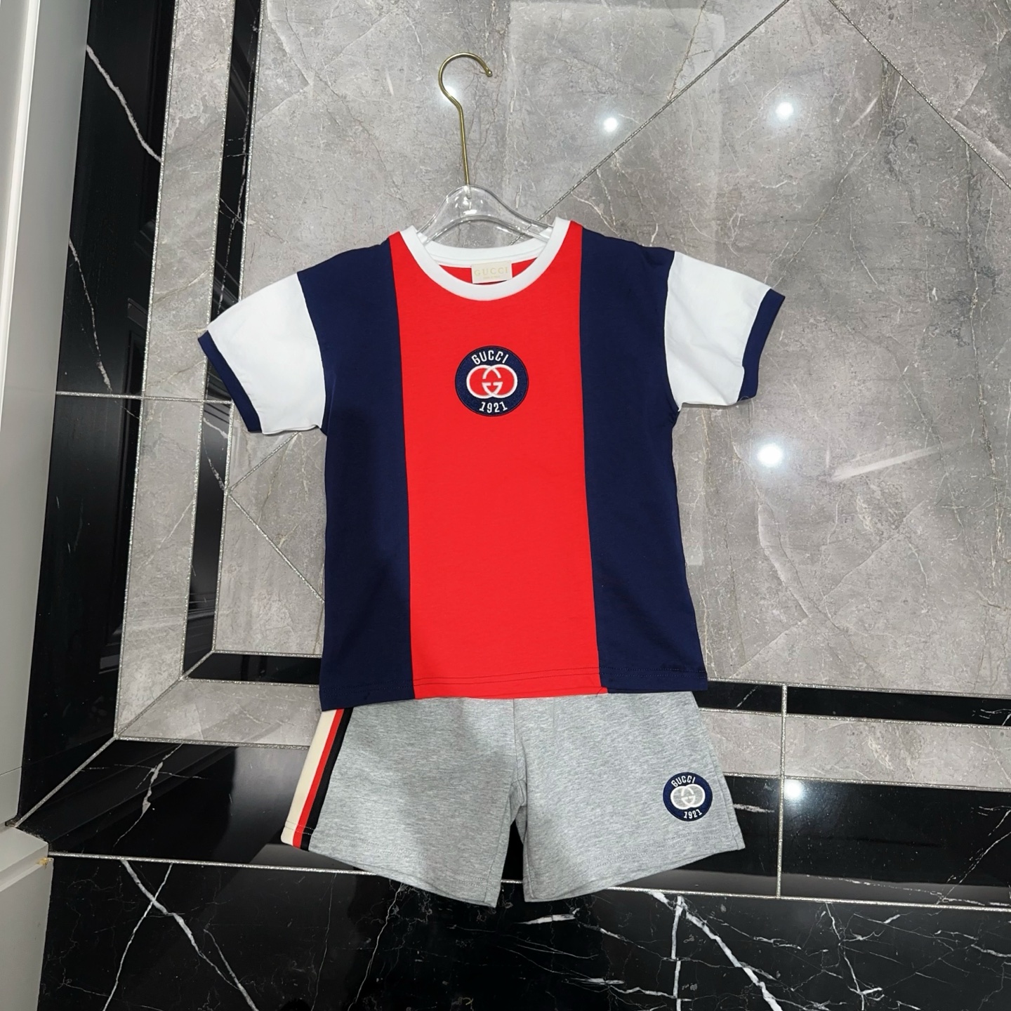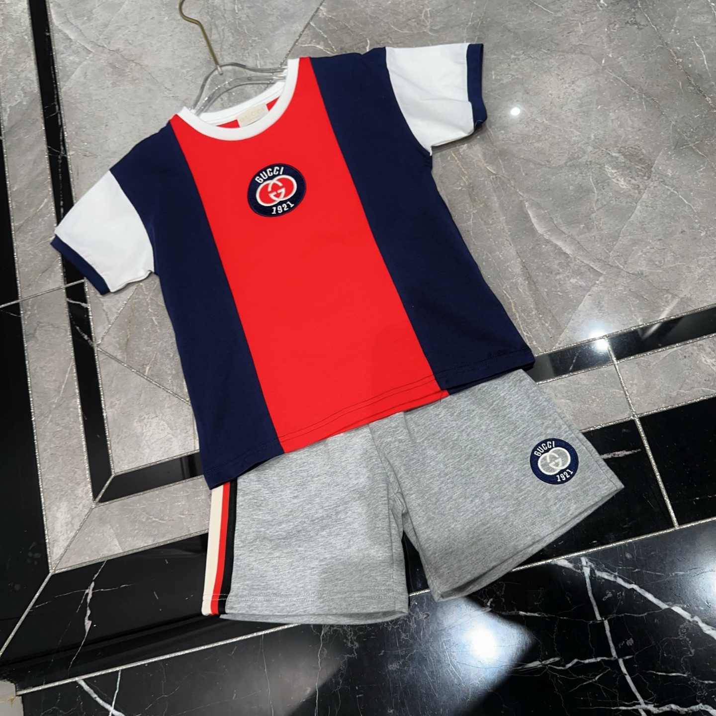 This children's clothes is AAAAA 1:1 quality (superb). Materials used are identical to the original ones. trademark marks are indistinguishable to the authentic. Photos take by actual children's clothes, what you receive will be 100% same with our photos.