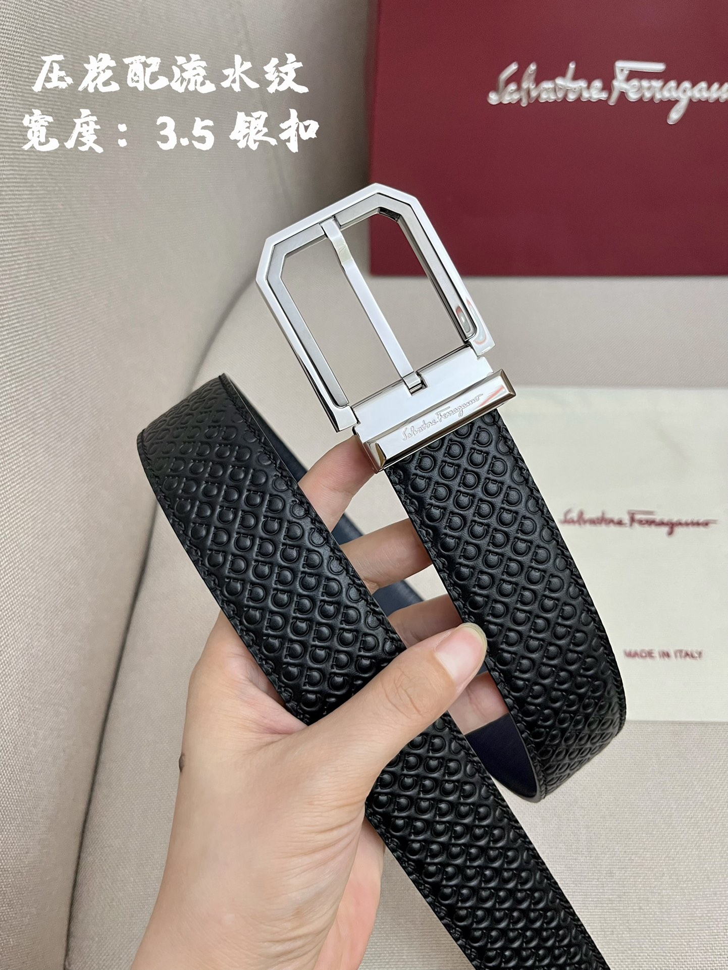 This belt is AAAAA 1:1 quality (superb). Materials used are identical to the original ones. Salvatore Ferragamo trademark marks are indistinguishable to the authentic. Photos take by actual belt, what you receive will be 100% same with our photos.