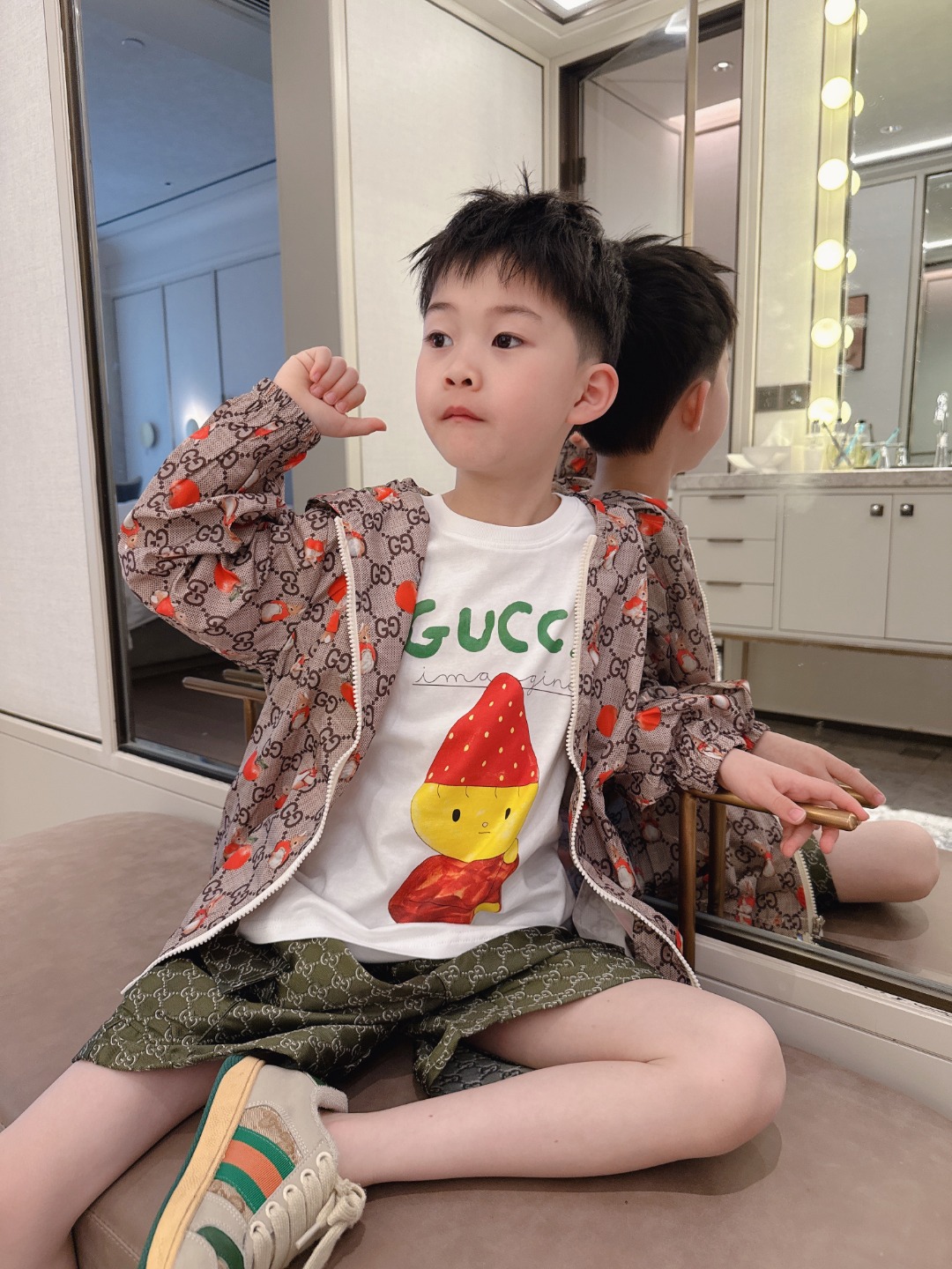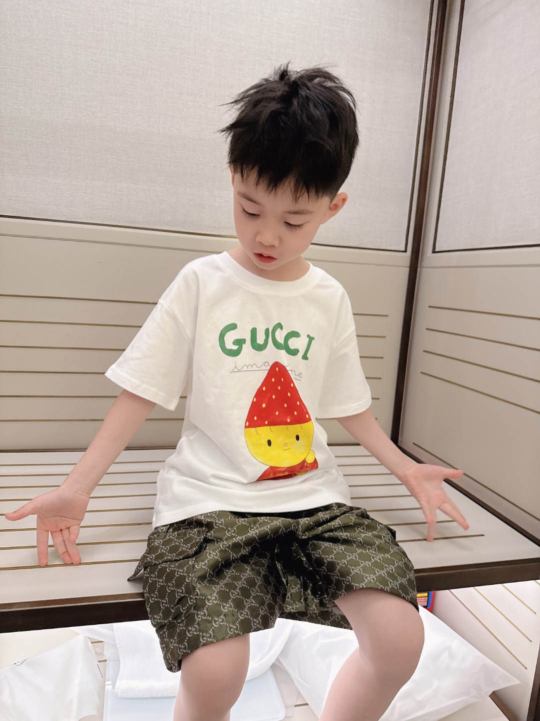 This children's clothes is AAAAA 1:1 quality (superb). Materials used are identical to the original ones. trademark marks are indistinguishable to the authentic. Photos take by actual children's clothes, what you receive will be 100% same with our photos.