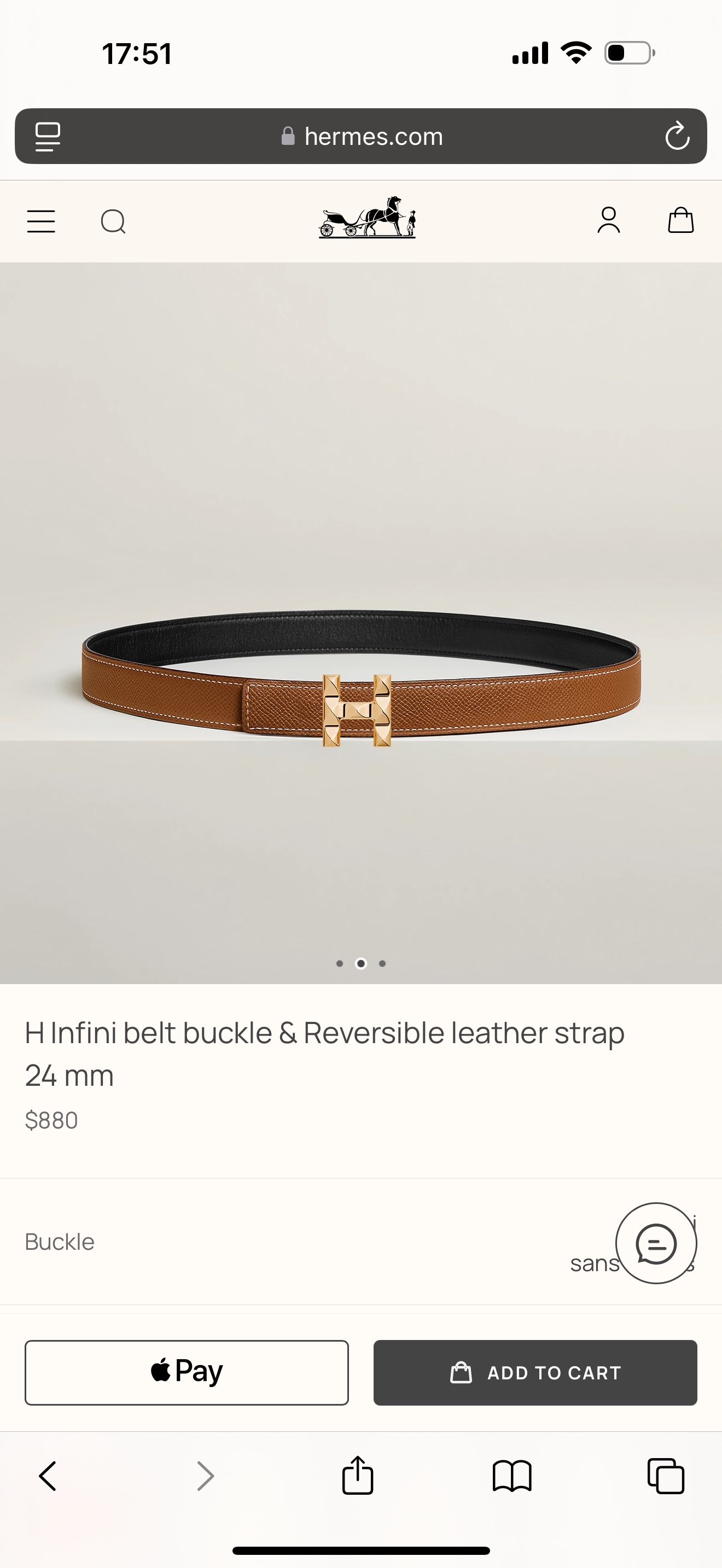 NO:2825064. The belt is from Hermes designer.