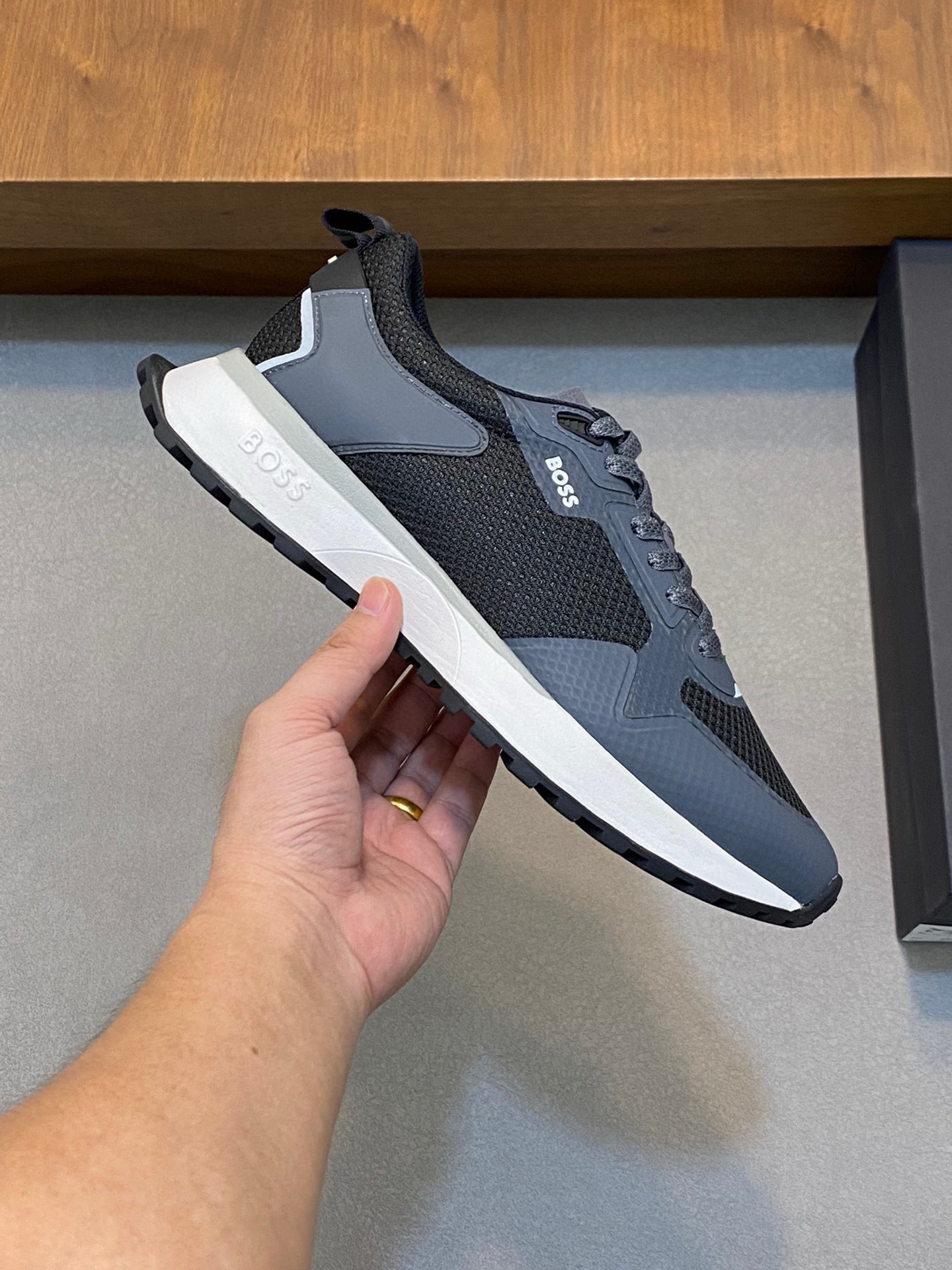 This shoes is AAAAA 1:1 quality (superb). Materials used are identical to the original ones. BOSS trademark marks are indistinguishable to the authentic. Photos take by actual shoes, what you receive will be 100% same with our photos.