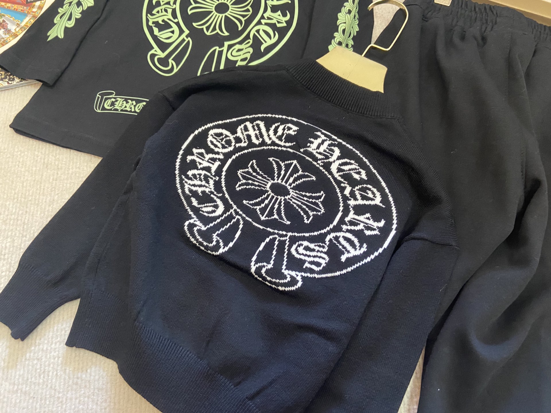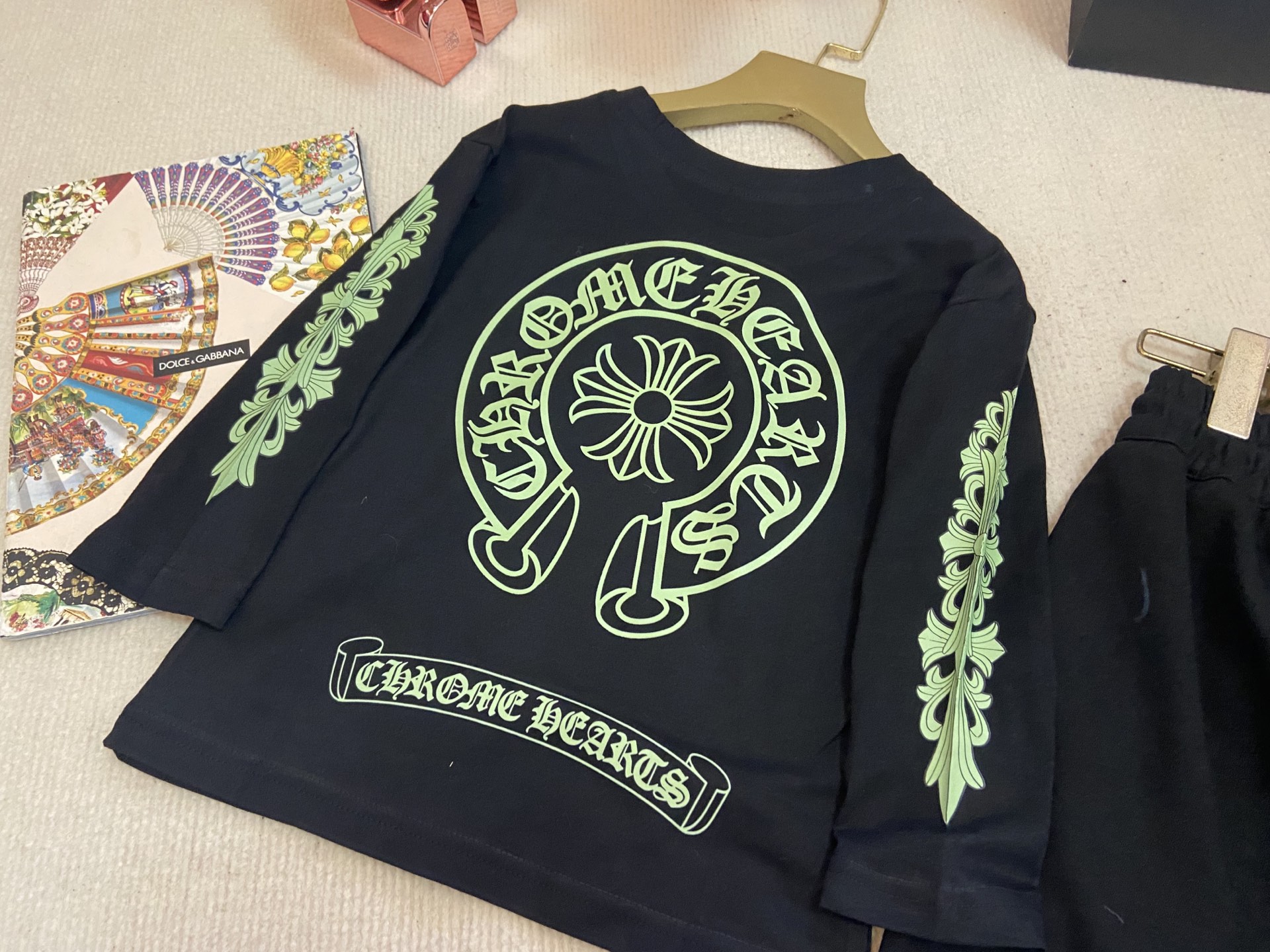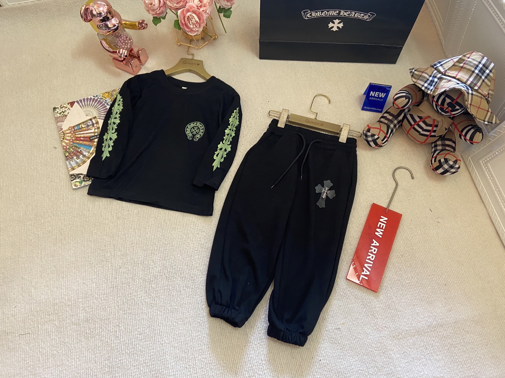 This children's clothes is AAAAA 1:1 quality (superb). Materials used are identical to the original ones. Chrome Hearts trademark marks are indistinguishable to the authentic. Photos take by actual children's clothes, what you receive will be 100% same with our photos.
