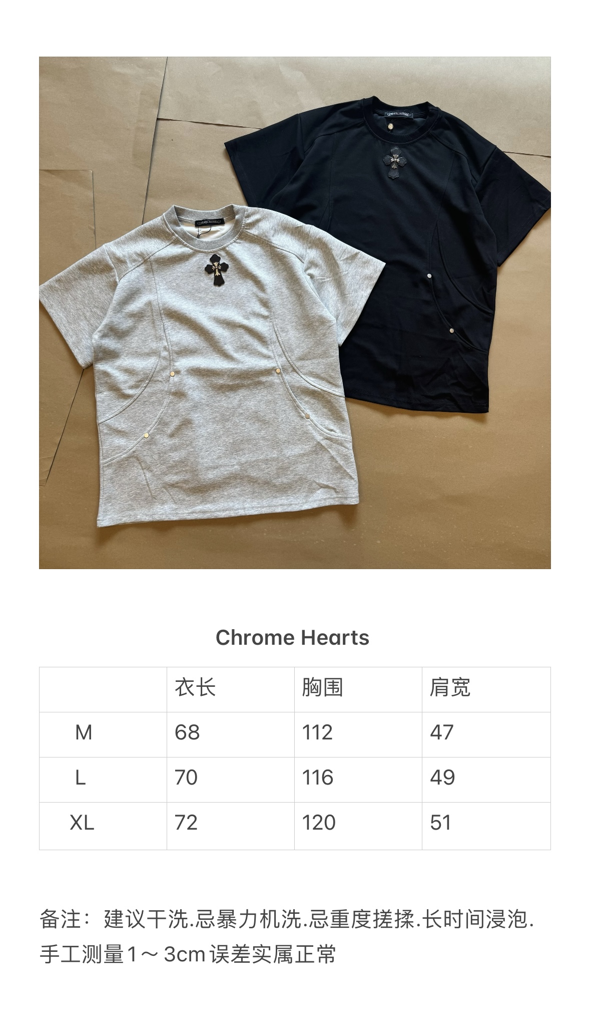 This clothes is AAAAA 1:1 quality (superb). Materials used are identical to the original ones. Chrome Hearts trademark marks are indistinguishable to the authentic. Photos take by actual clothes, what you receive will be 100% same with our photos.
