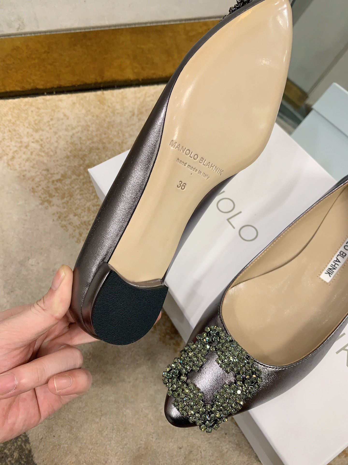 This shoes is AAAAA 1:1 quality (superb). Materials used are identical to the original ones. Manolo Blahnik trademark marks are indistinguishable to the authentic. Photos take by actual shoes, what you receive will be 100% same with our photos.
