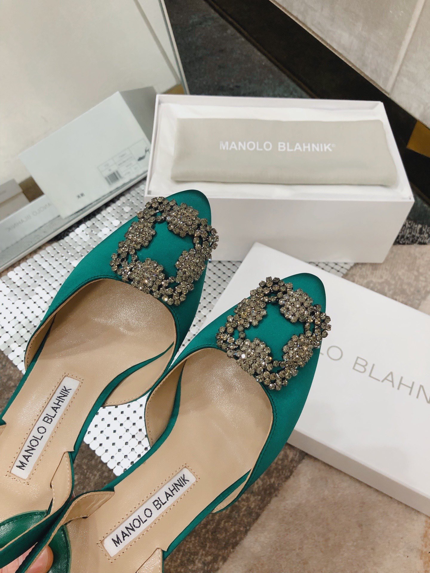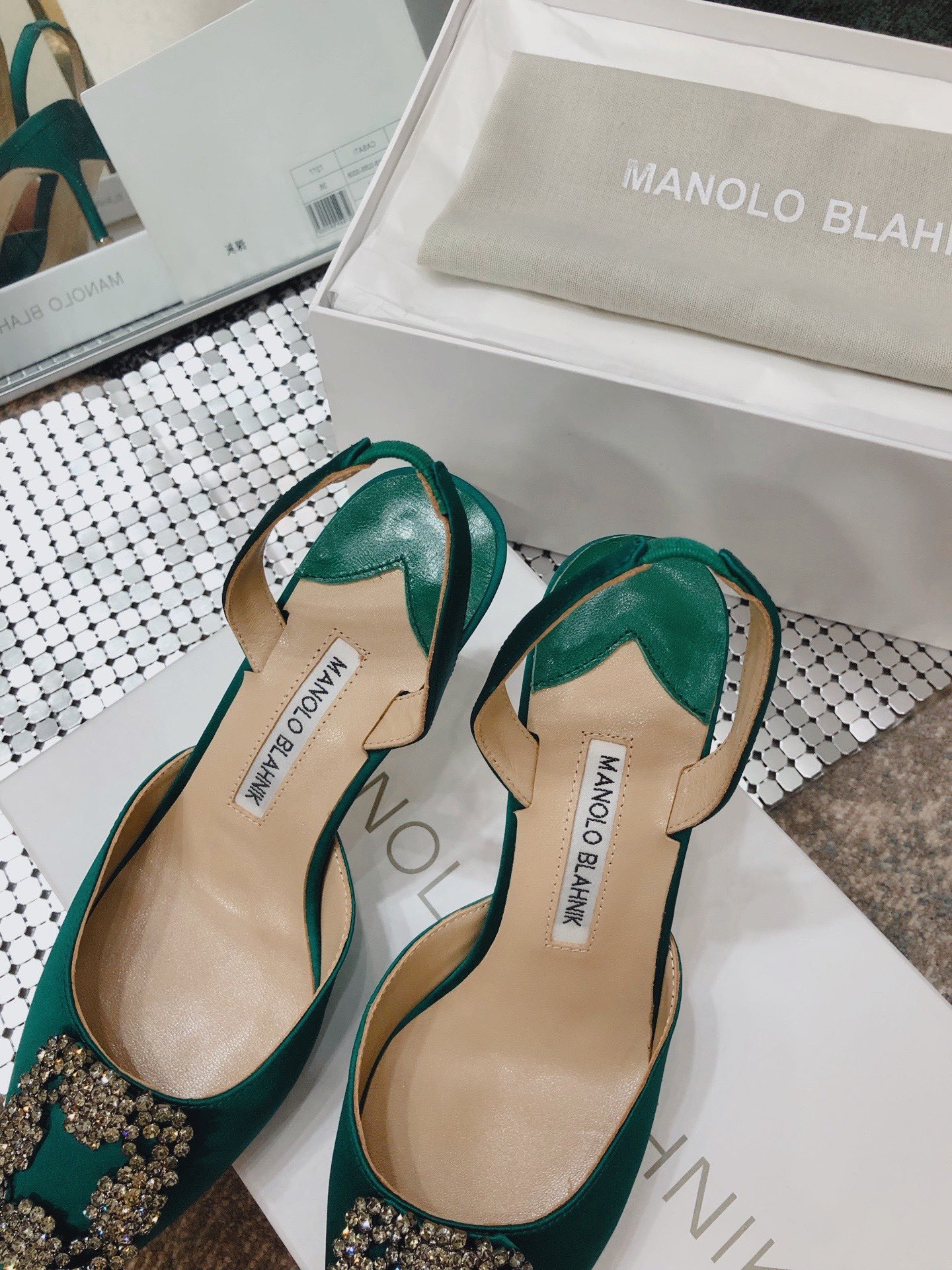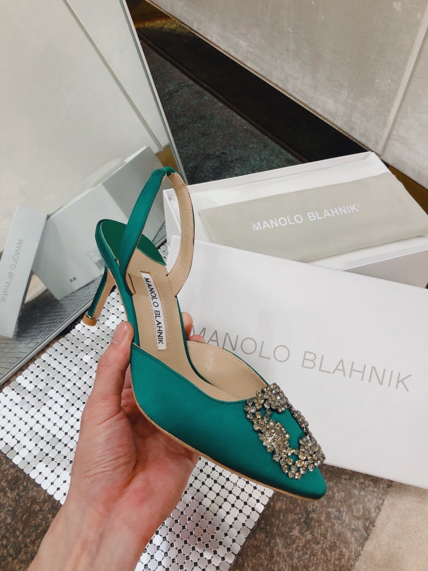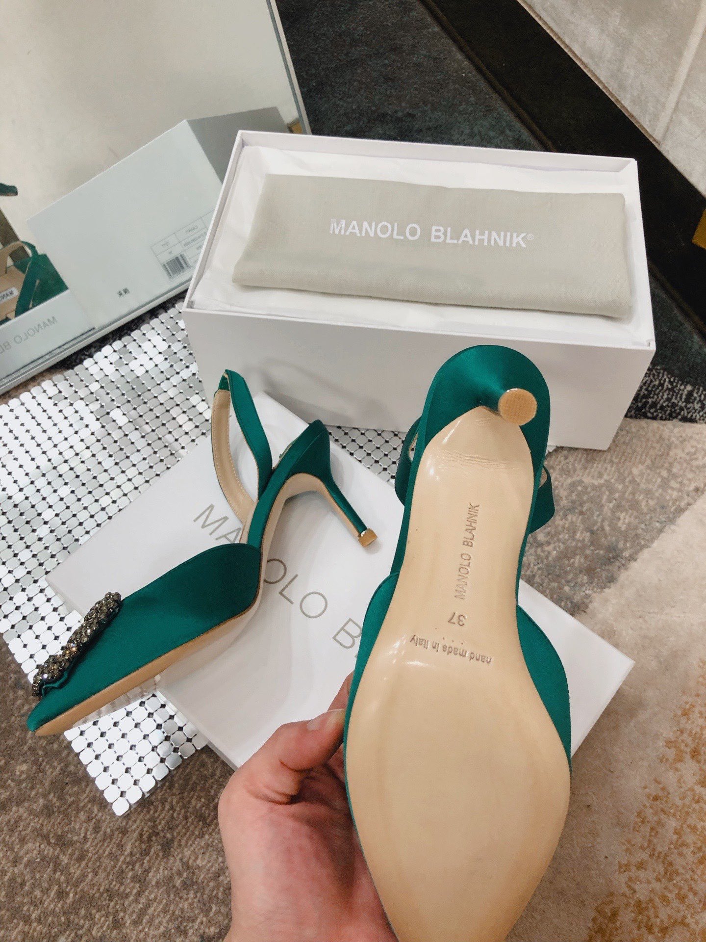 This shoes is AAAAA 1:1 quality (superb). Materials used are identical to the original ones. Manolo Blahnik trademark marks are indistinguishable to the authentic. Photos take by actual shoes, what you receive will be 100% same with our photos.