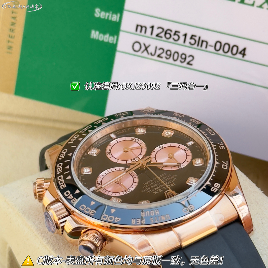 This watches is AAAAA 1:1 quality (superb). Materials used are identical to the original ones. Rolex trademark marks are indistinguishable to the authentic. Photos take by actual watches, what you receive will be 100% same with our photos.