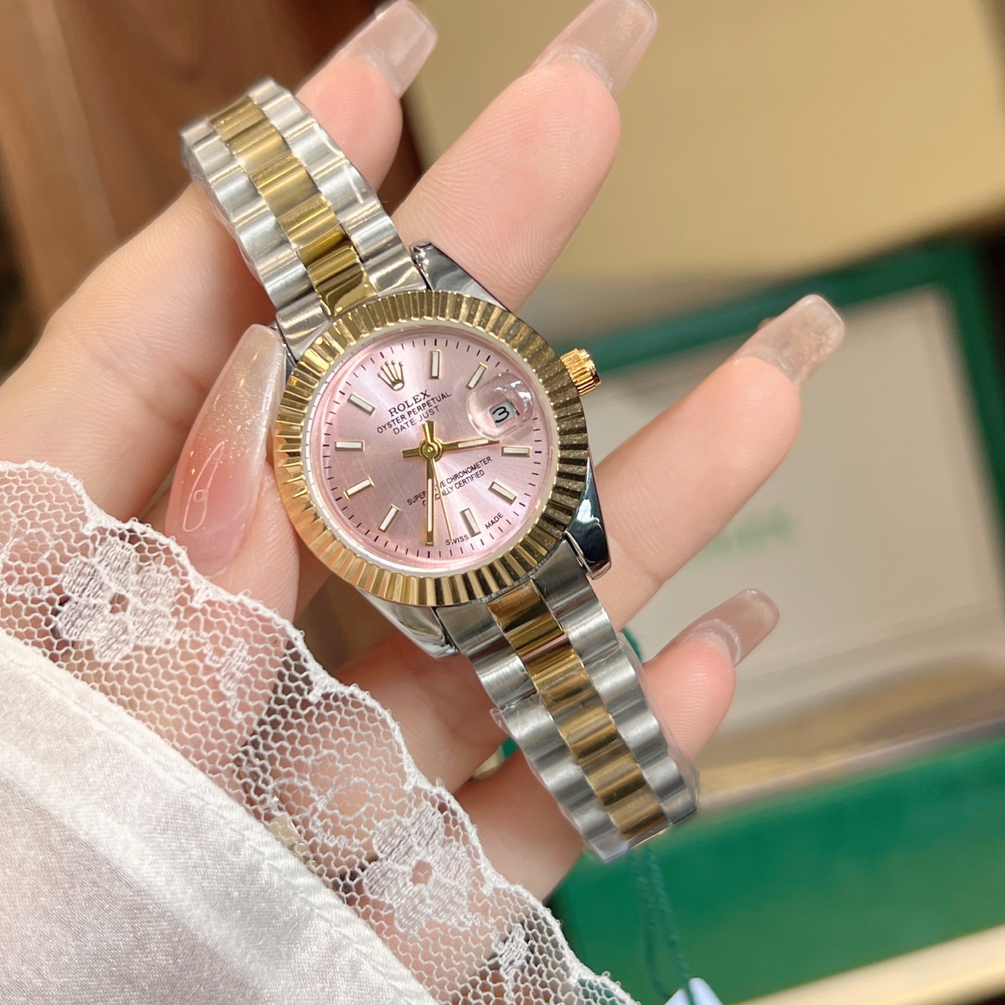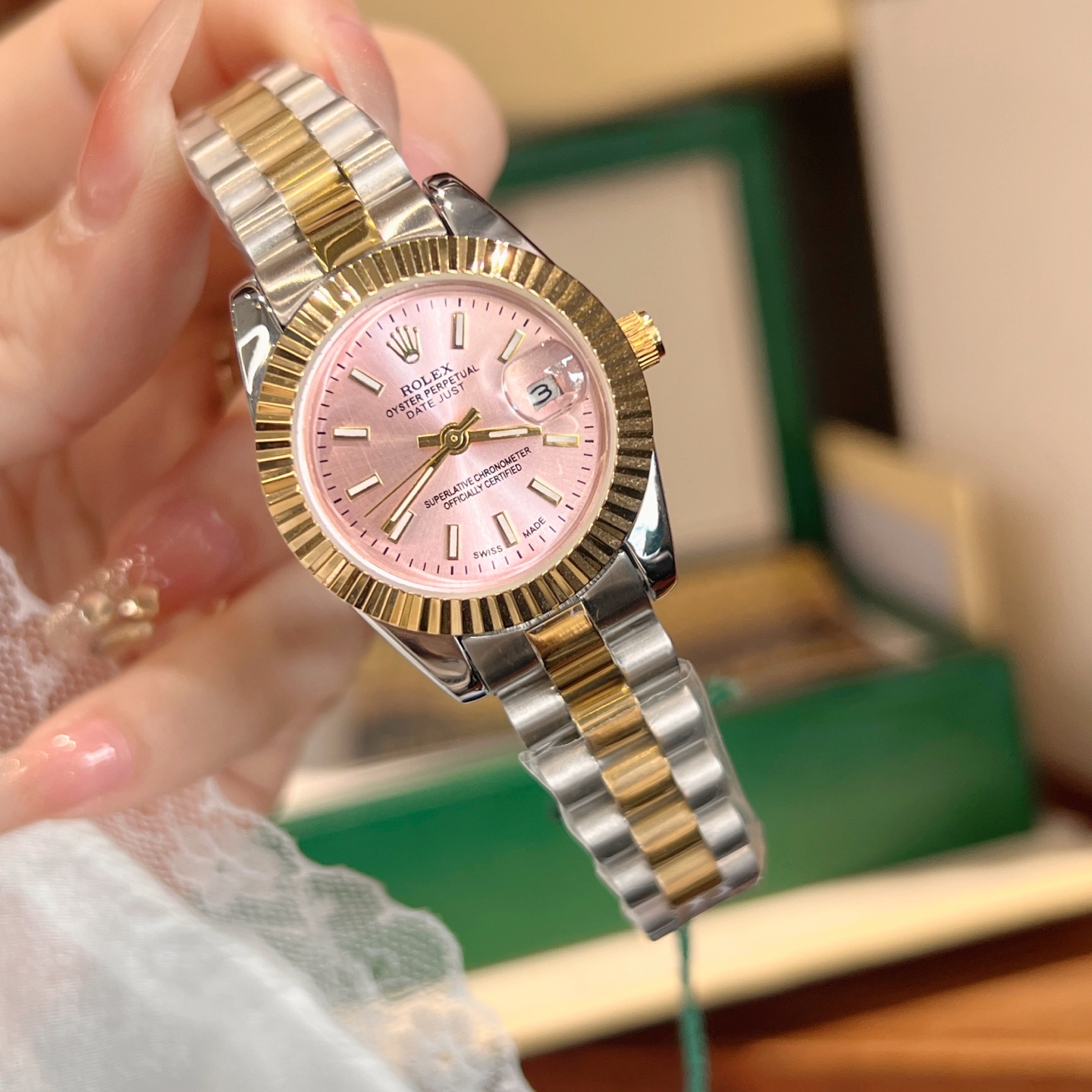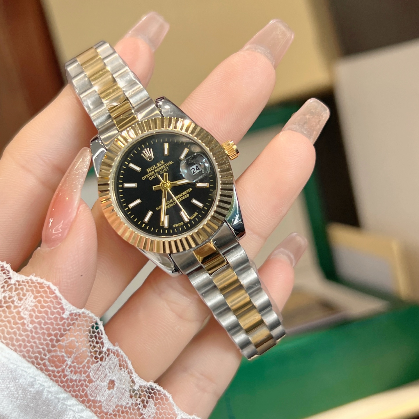 This watches is AAAAA 1:1 quality (superb). Materials used are identical to the original ones. Rolex trademark marks are indistinguishable to the authentic. Photos take by actual watches, what you receive will be 100% same with our photos.