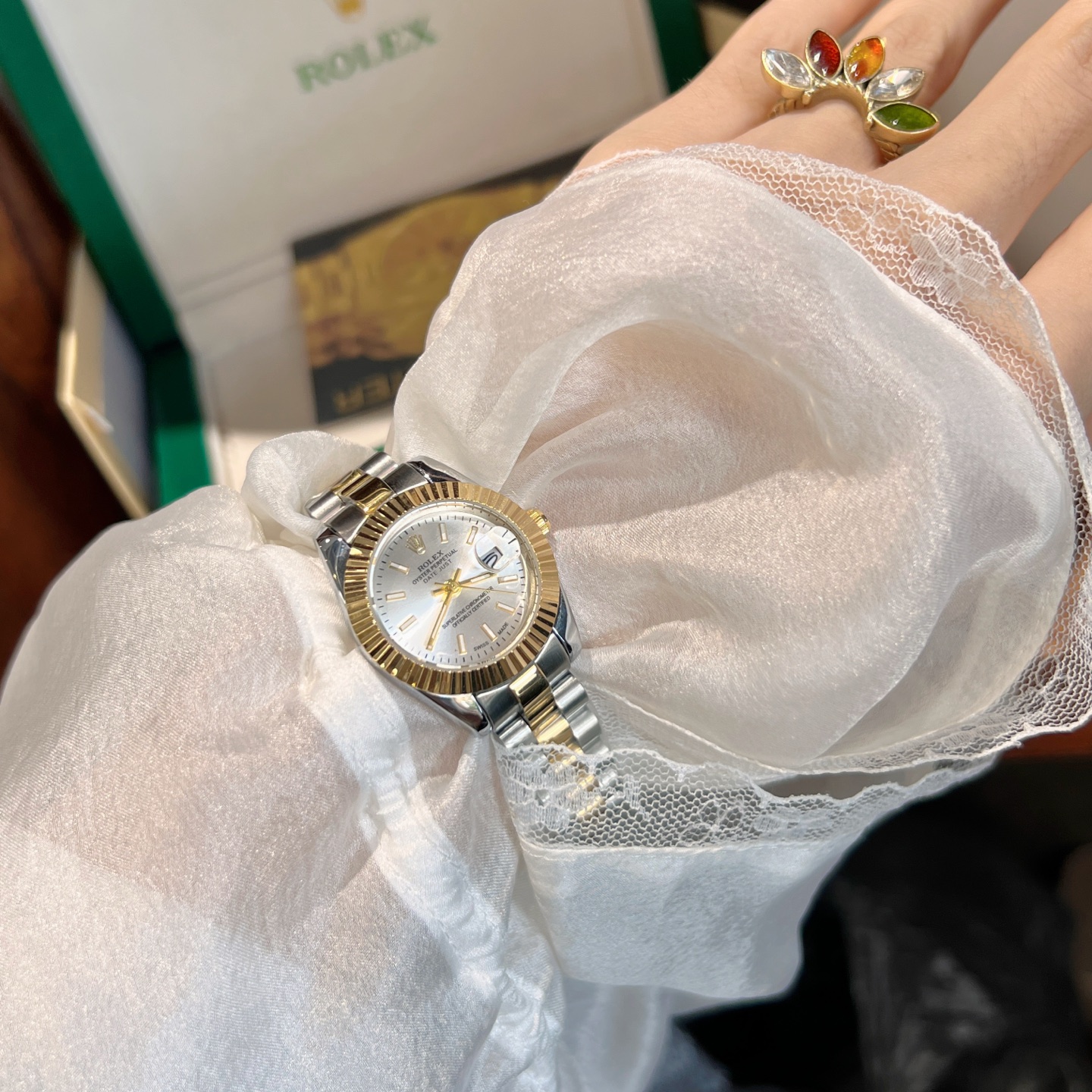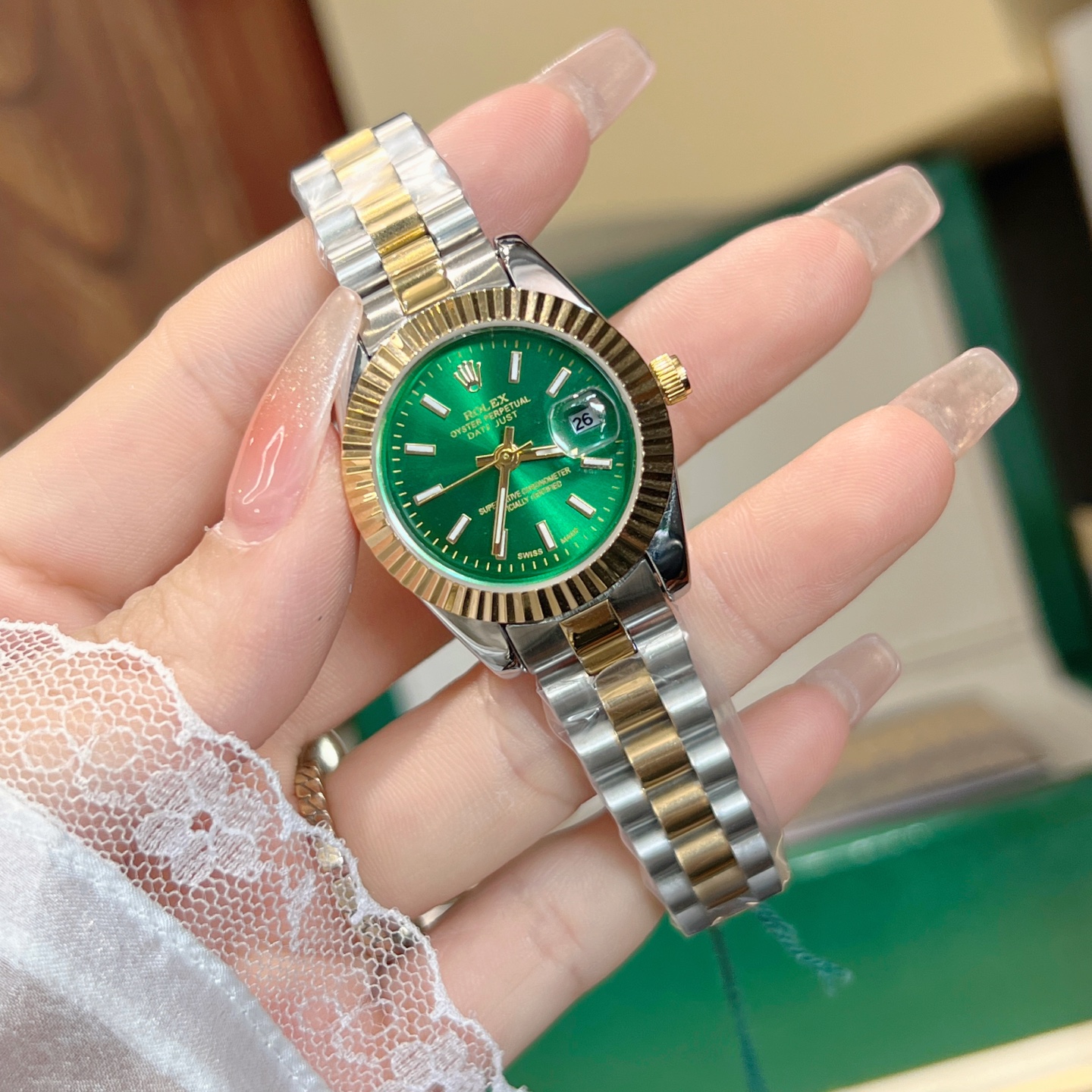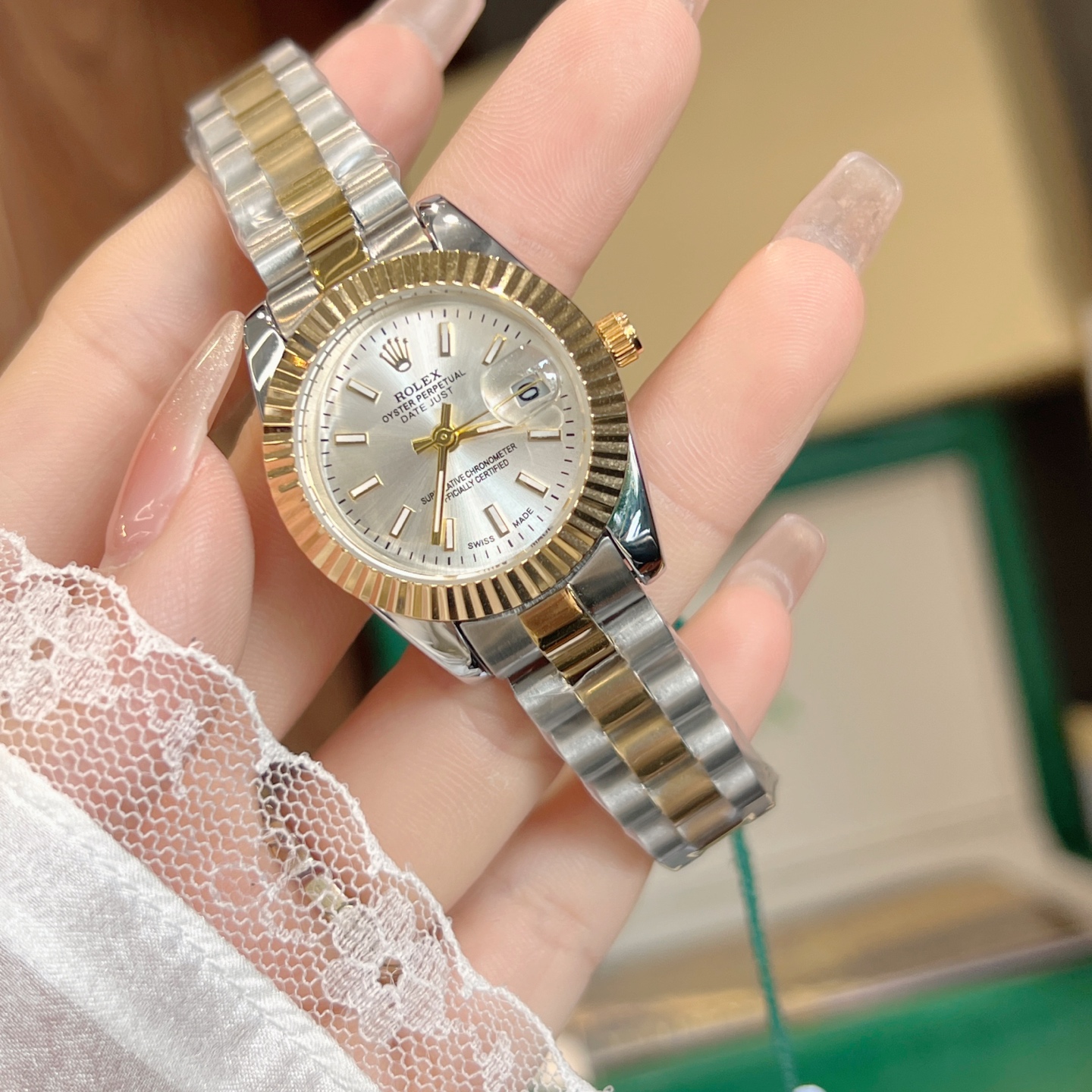 This watches is AAAAA 1:1 quality (superb). Materials used are identical to the original ones. Rolex trademark marks are indistinguishable to the authentic. Photos take by actual watches, what you receive will be 100% same with our photos.