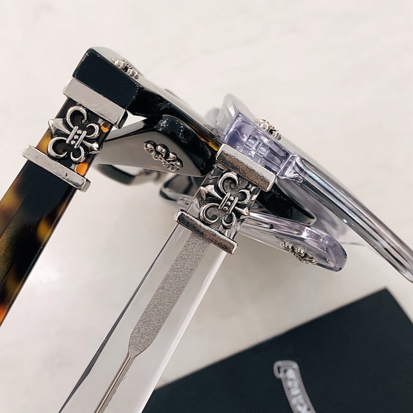 This sunglasses is AAAAA 1:1 quality (superb). Materials used are identical to the original ones. Chrome Hearts trademark marks are indistinguishable to the authentic. Photos take by actual sunglasses, what you receive will be 100% same with our photos.