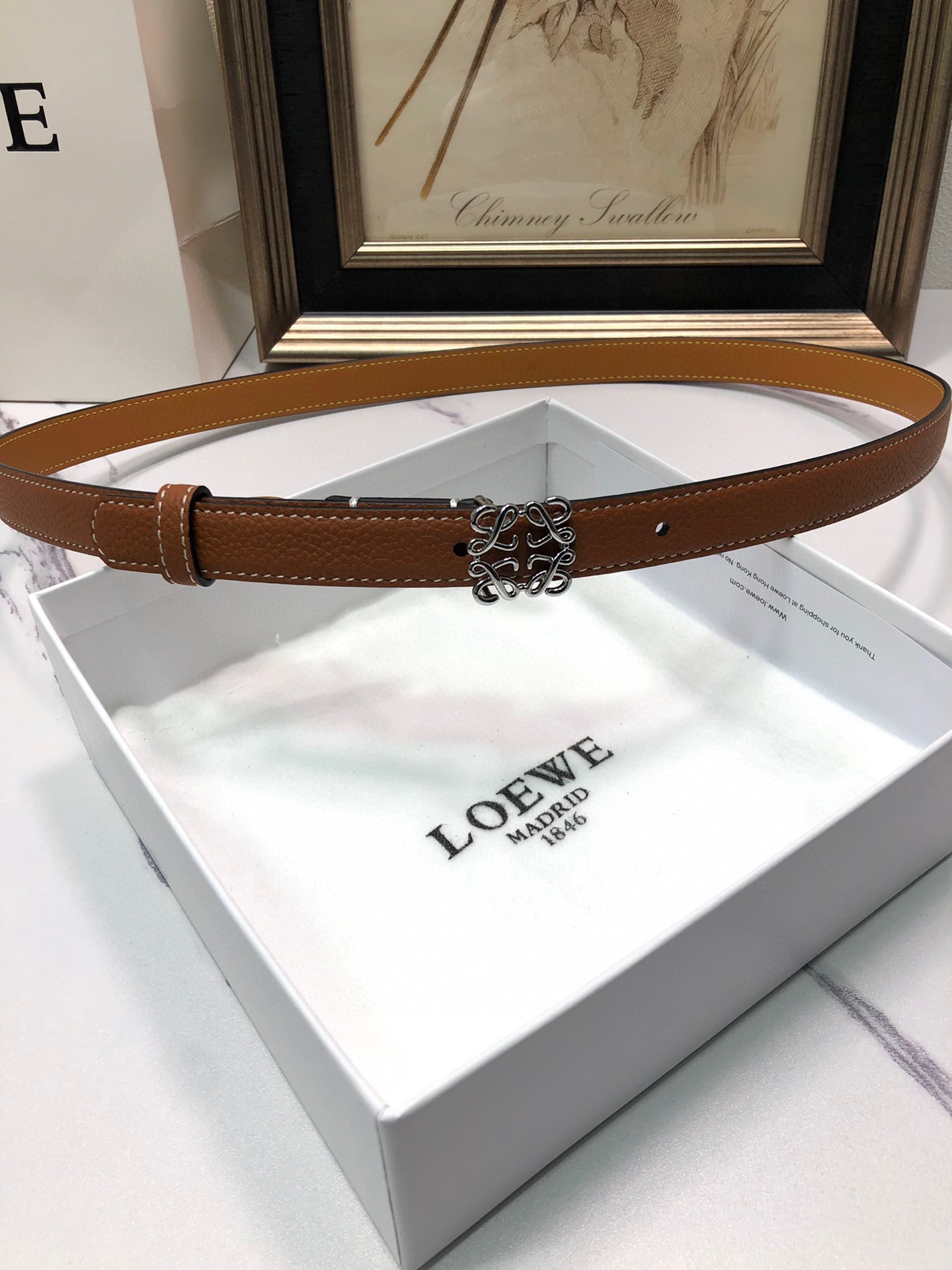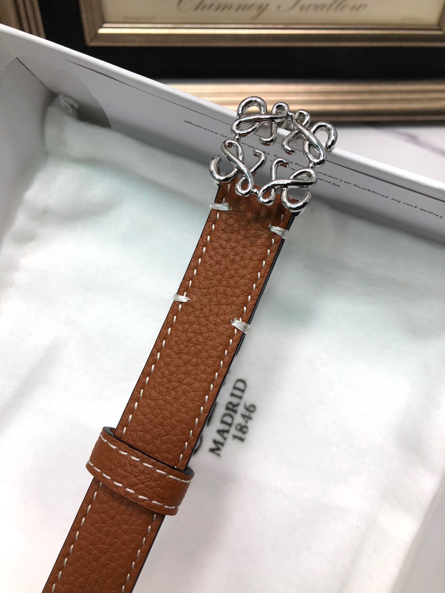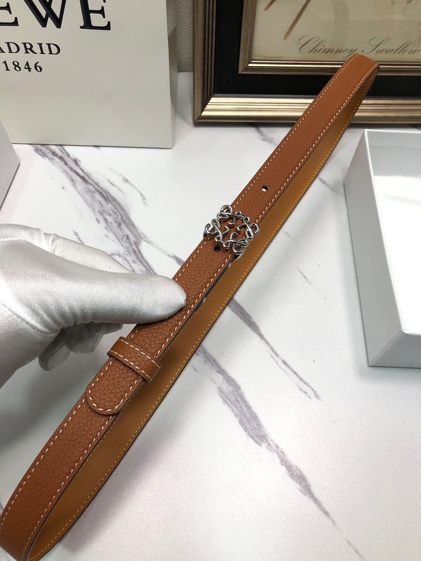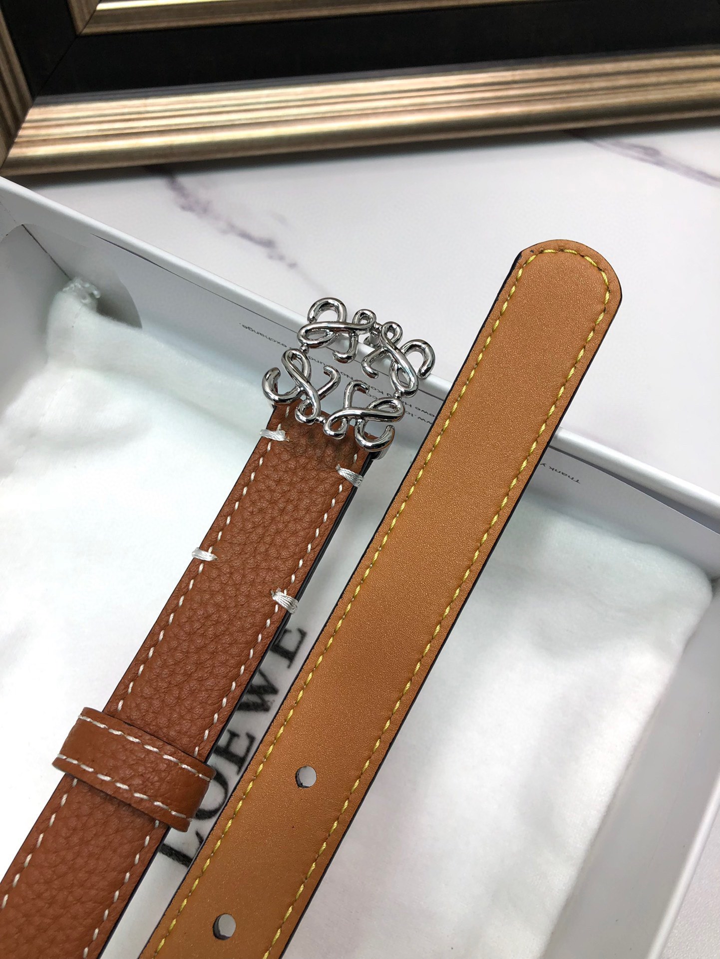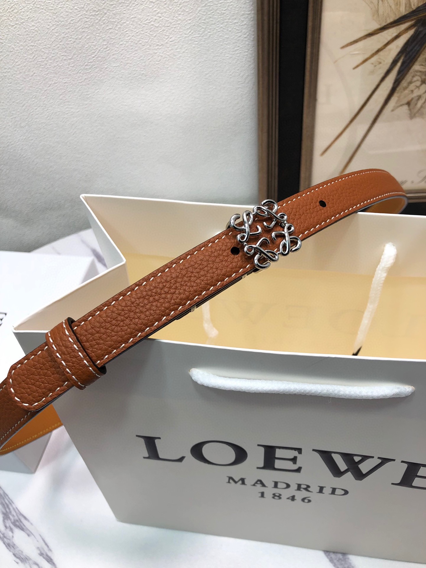 This belt is AAAAA 1:1 quality (superb). Materials used are identical to the original ones. Loewe trademark marks are indistinguishable to the authentic. Photos take by actual belt, what you receive will be 100% same with our photos.
