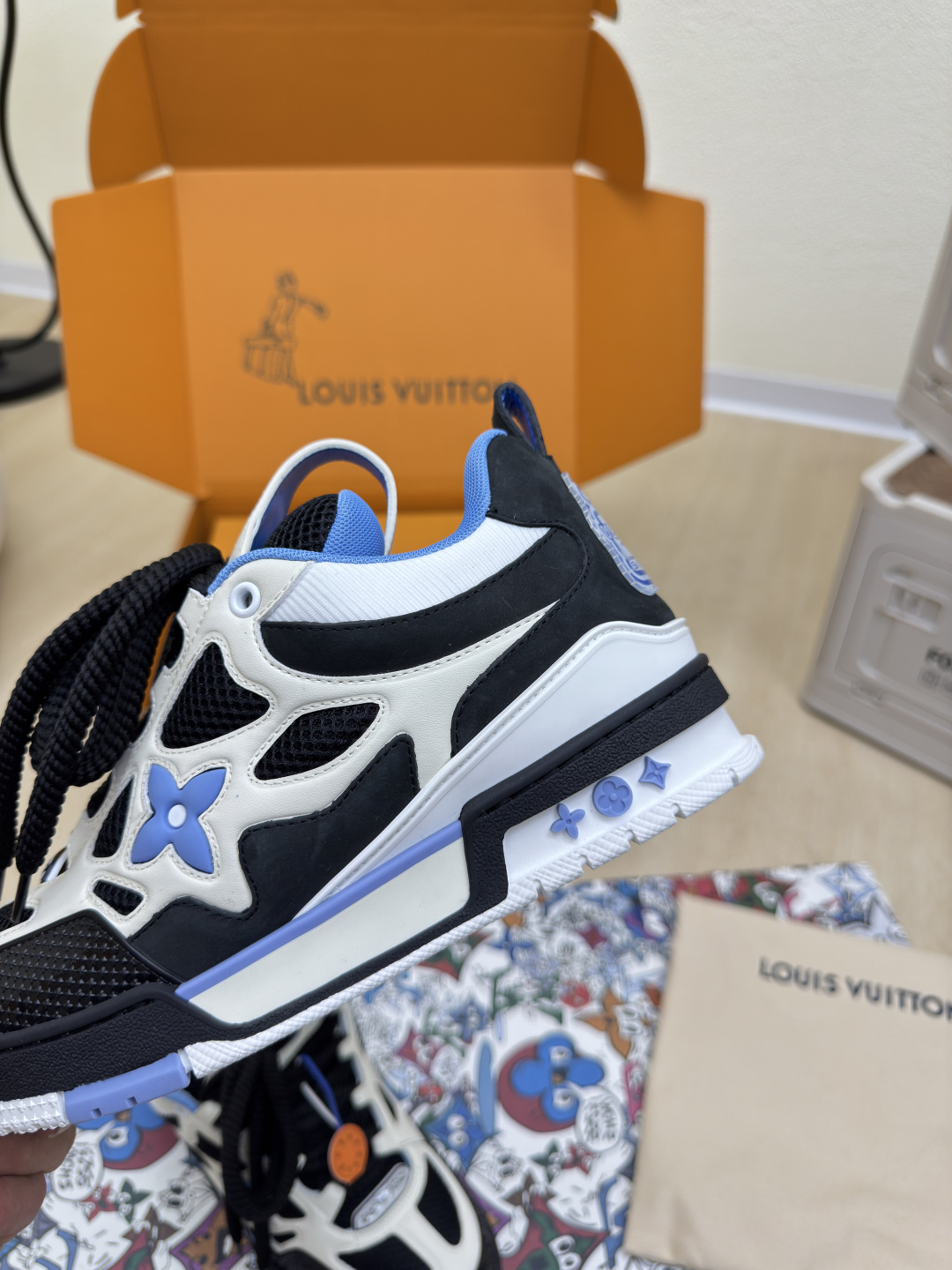 This shoes is AAAAA 1:1 quality (superb). Materials used are identical to the original ones. Louis Vuitton trademark marks are indistinguishable to the authentic. Photos take by actual shoes, what you receive will be 100% same with our photos.