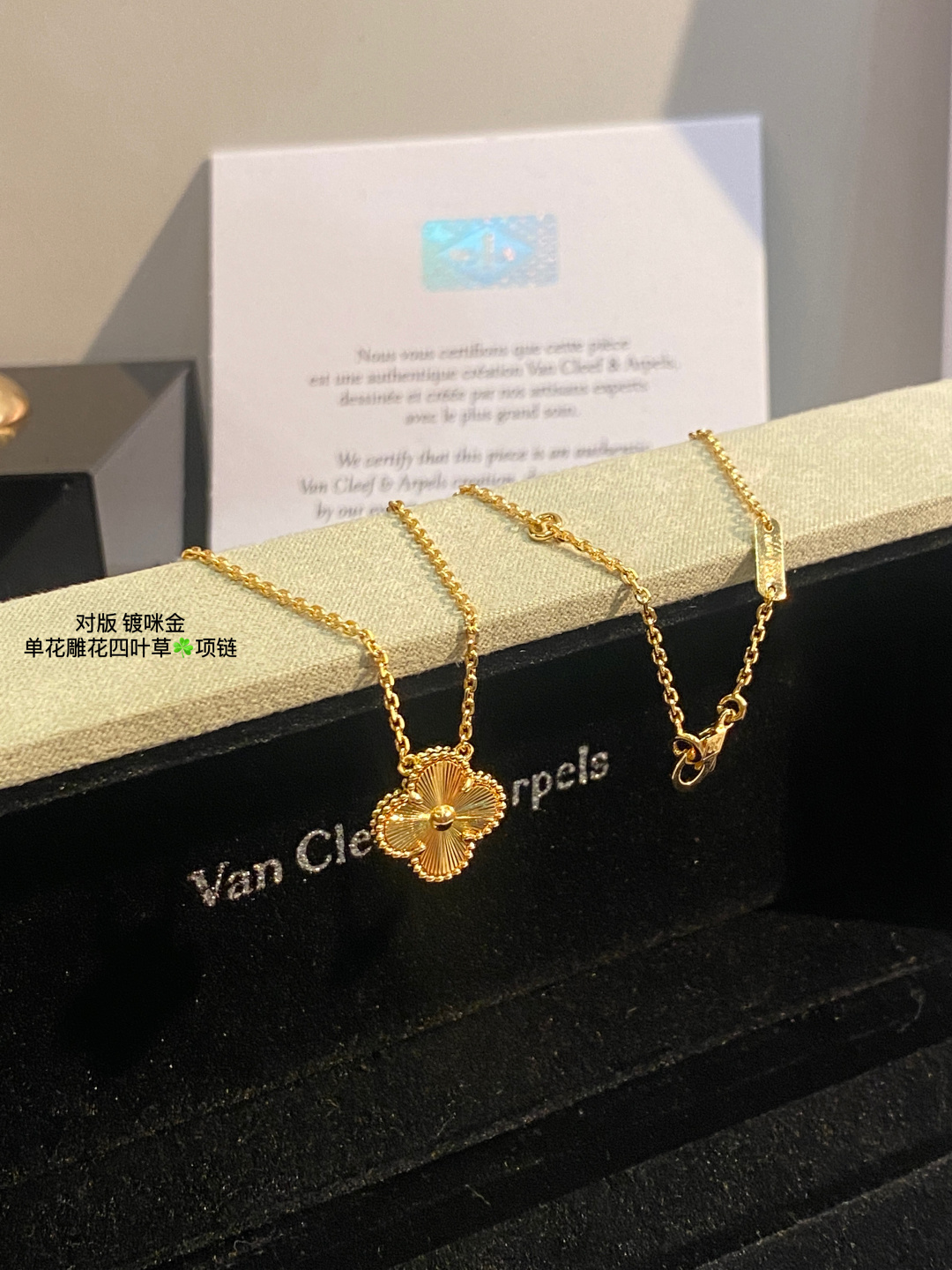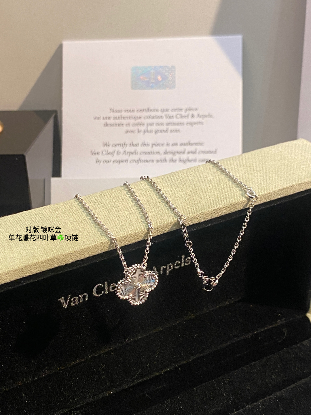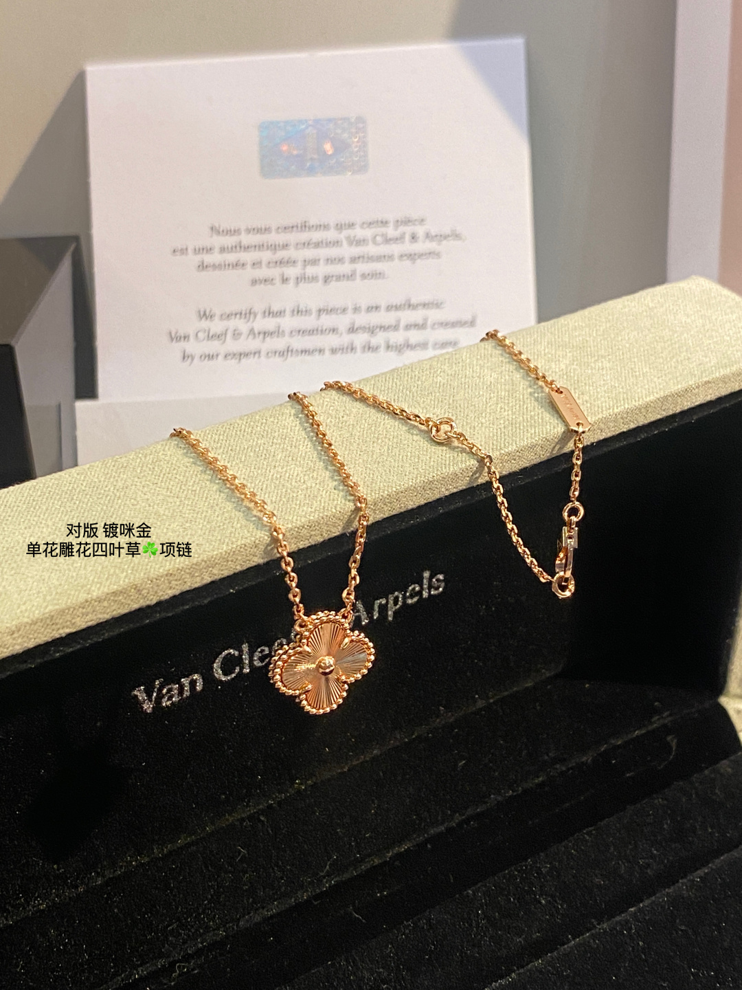 This jewelry is AAAAA 1:1 quality (superb). Materials used are identical to the original ones. Van Cleef & Arpels trademark marks are indistinguishable to the authentic. Photos take by actual jewelry, what you receive will be 100% same with our photos.