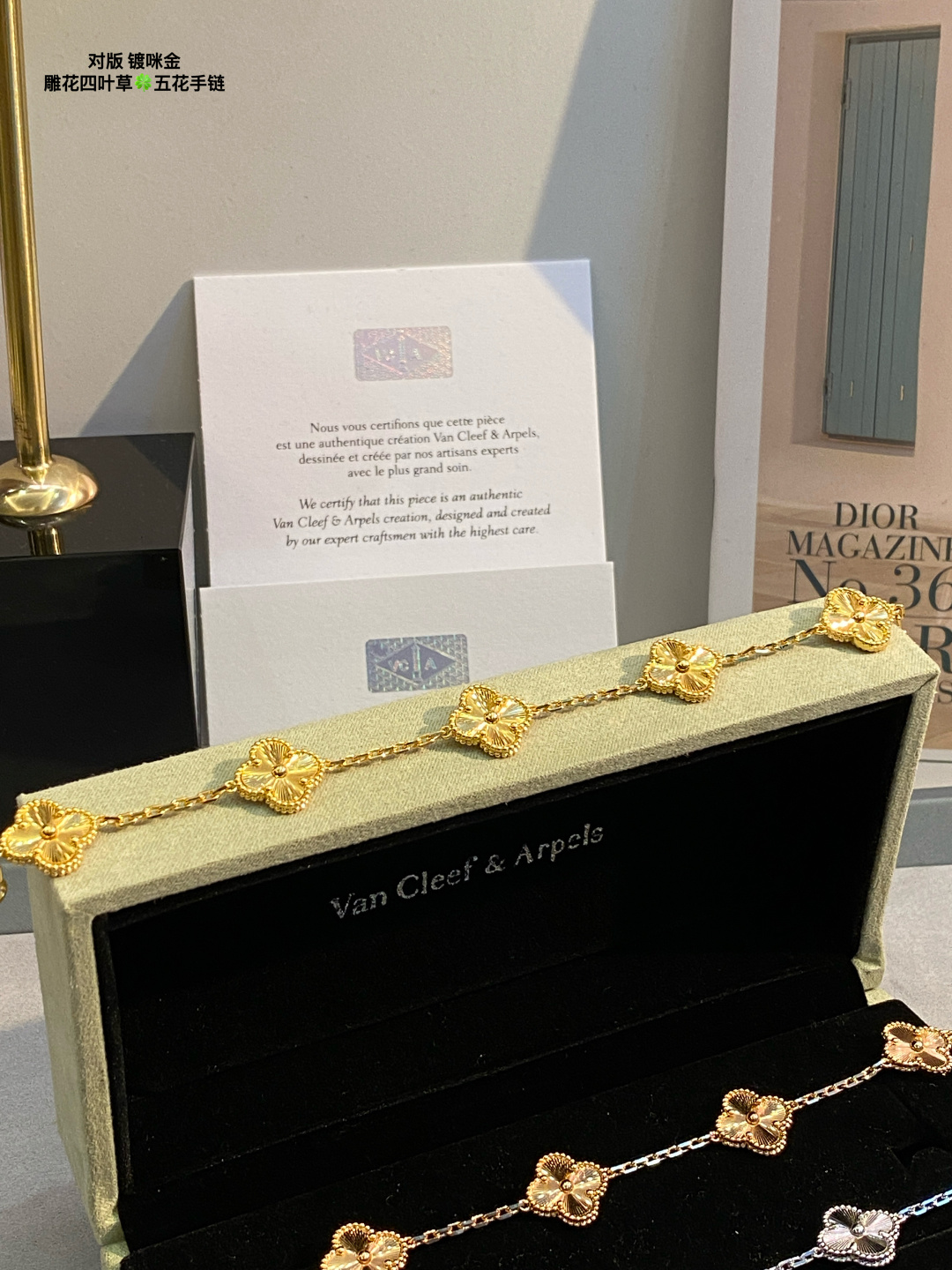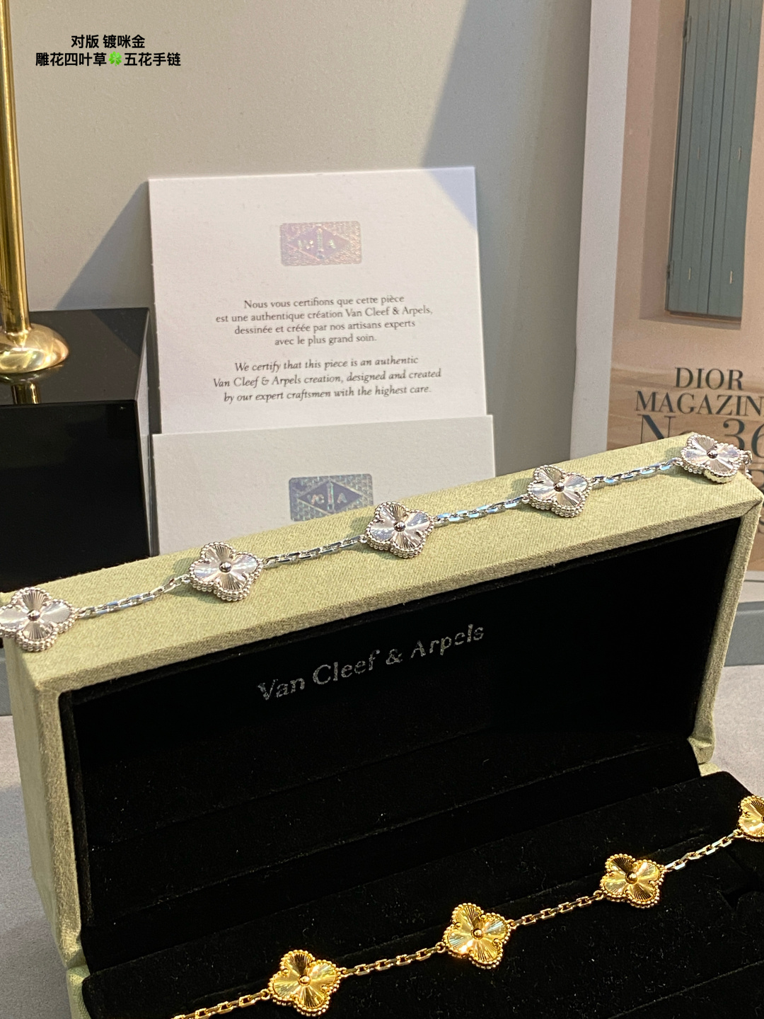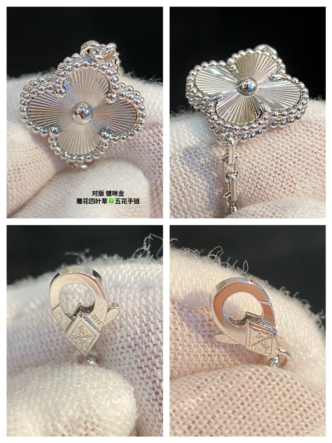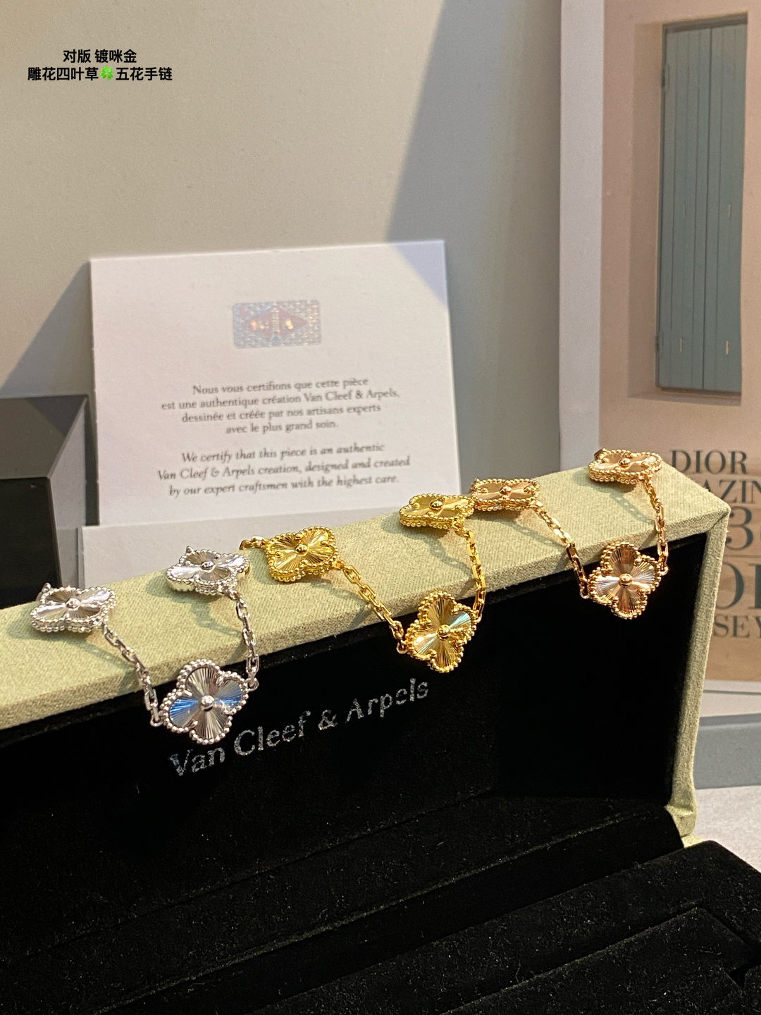 This jewelry is AAAAA 1:1 quality (superb). Materials used are identical to the original ones. Van Cleef & Arpels trademark marks are indistinguishable to the authentic. Photos take by actual jewelry, what you receive will be 100% same with our photos.