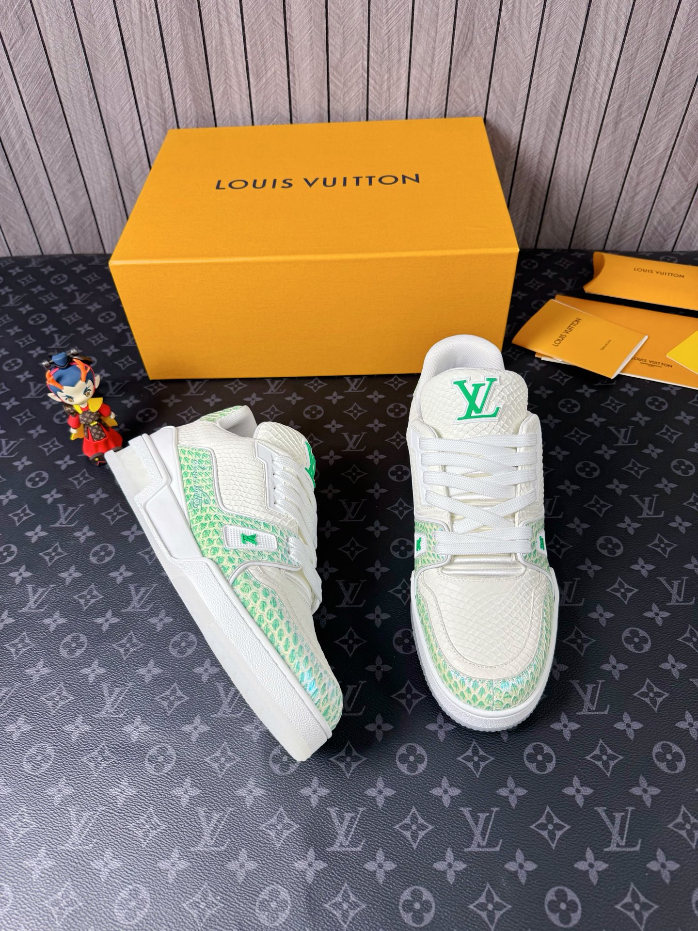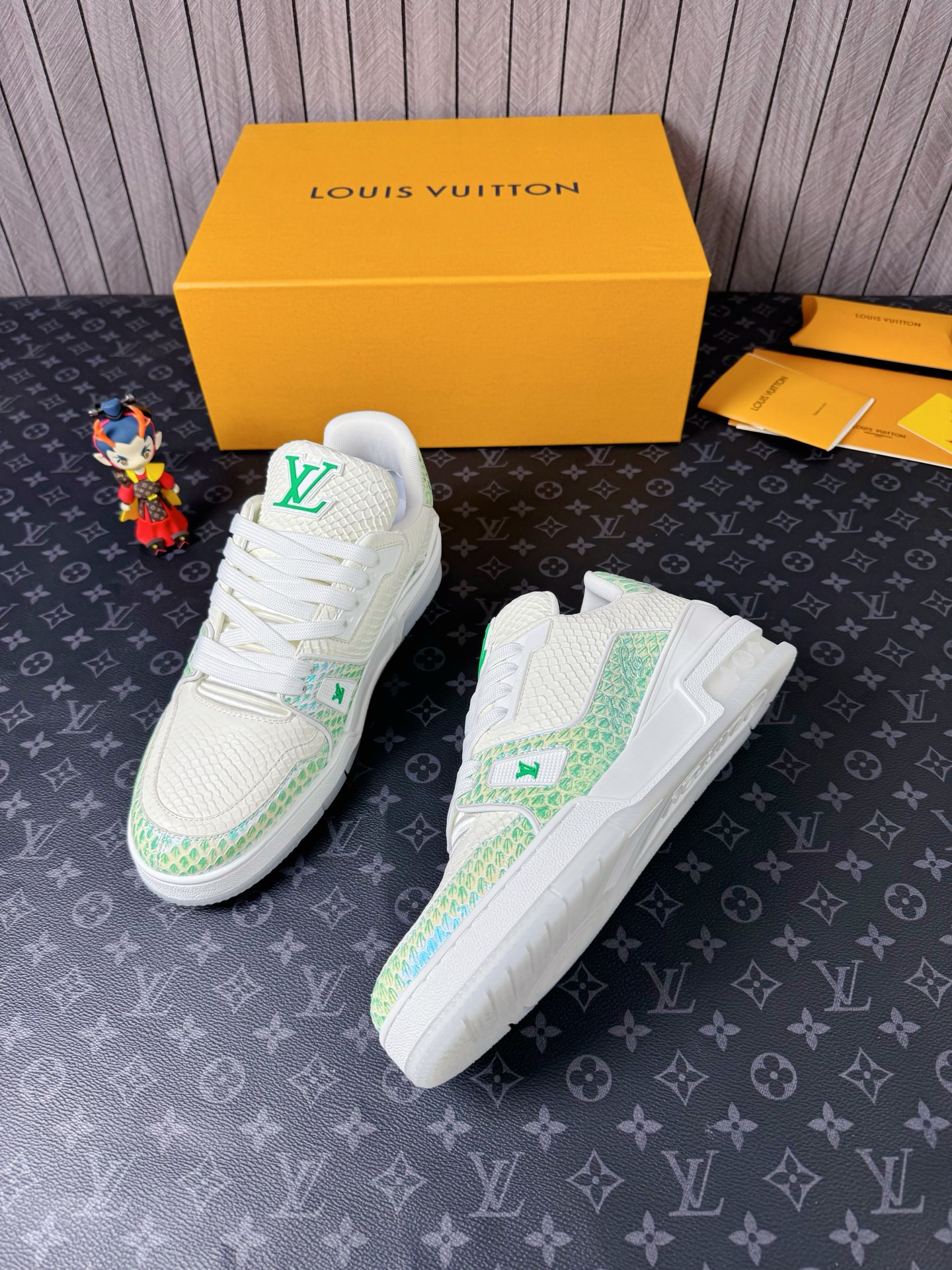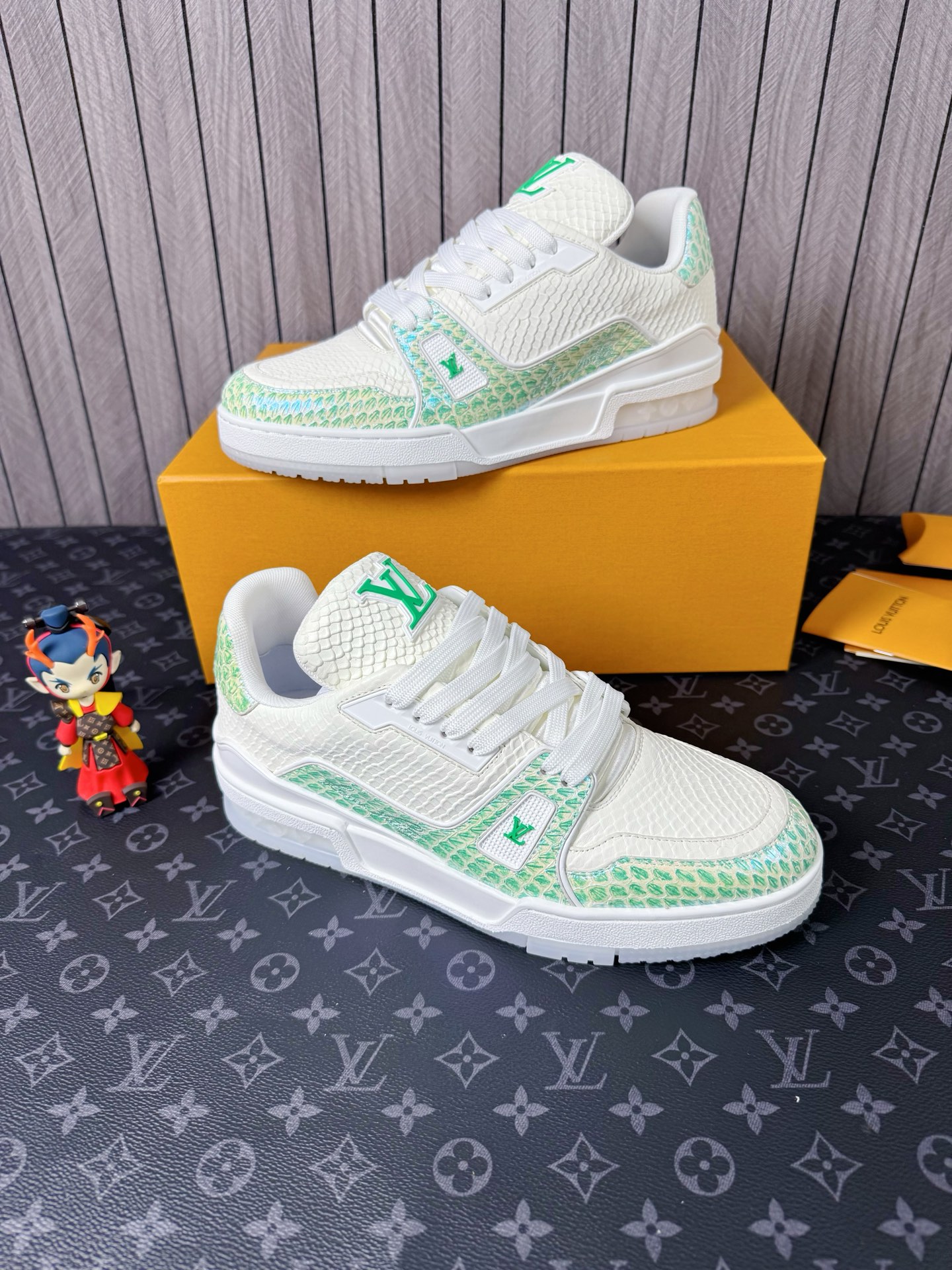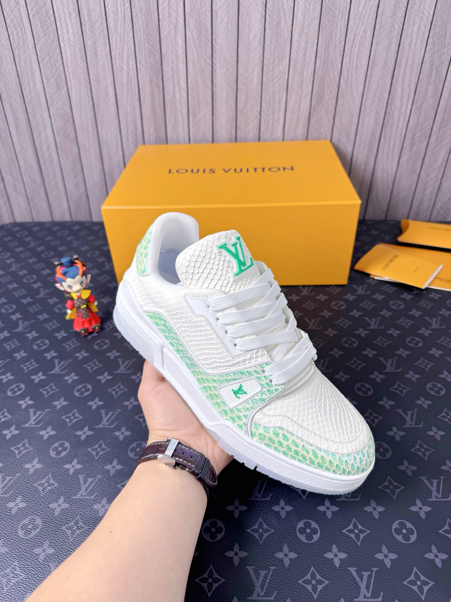 This shoes is AAAAA 1:1 quality (superb). Materials used are identical to the original ones. Louis Vuitton trademark marks are indistinguishable to the authentic. Photos take by actual shoes, what you receive will be 100% same with our photos.