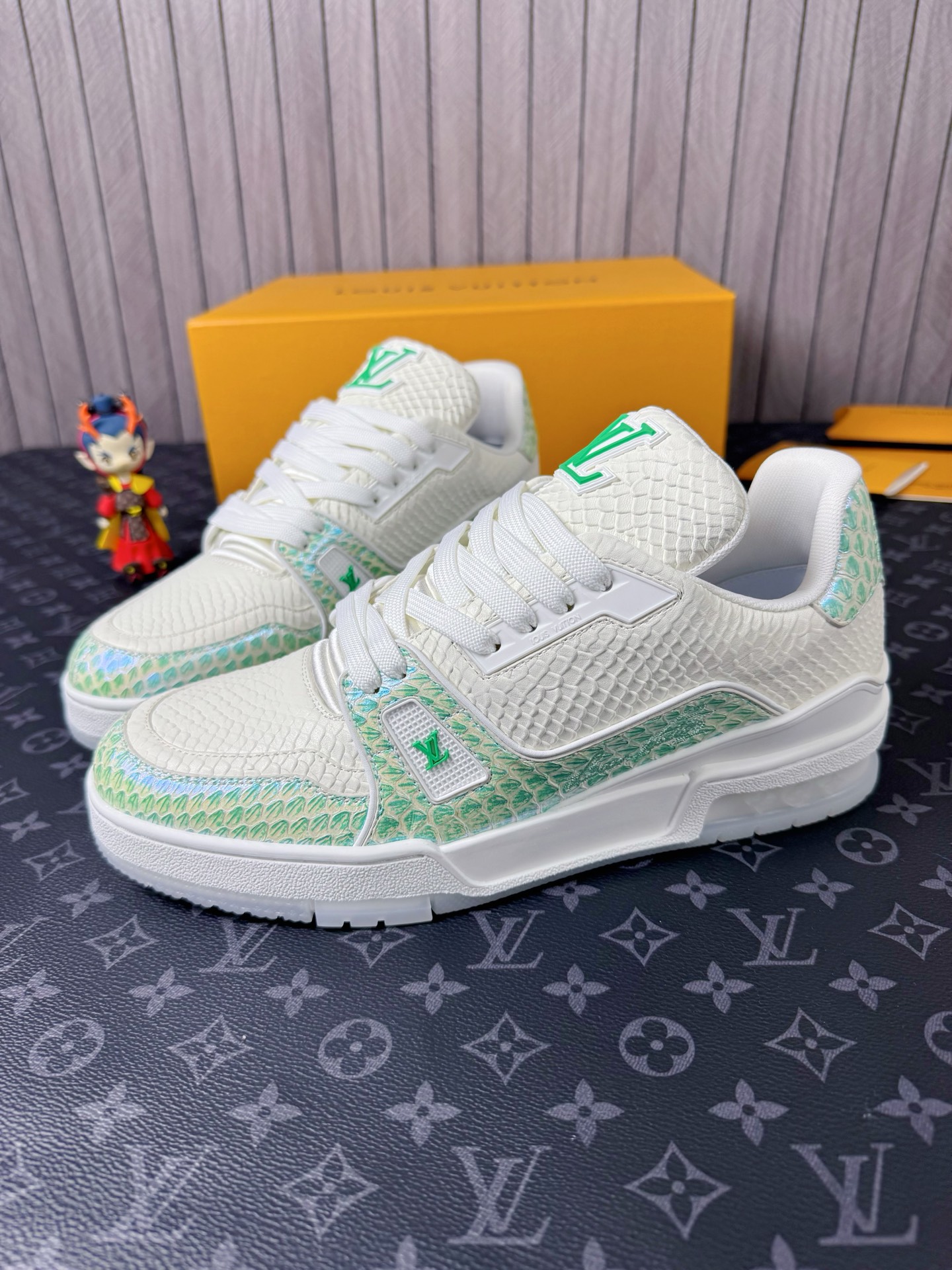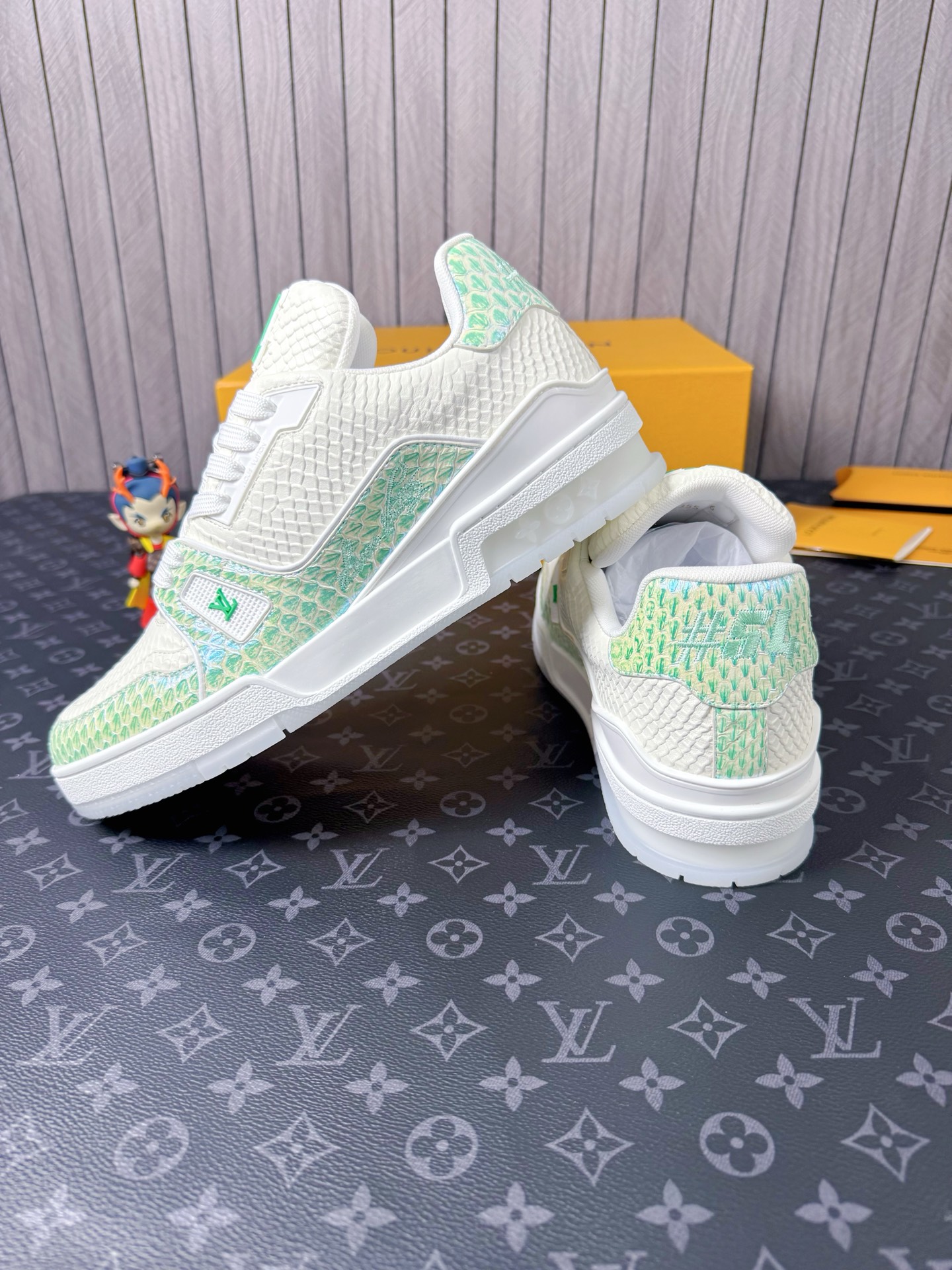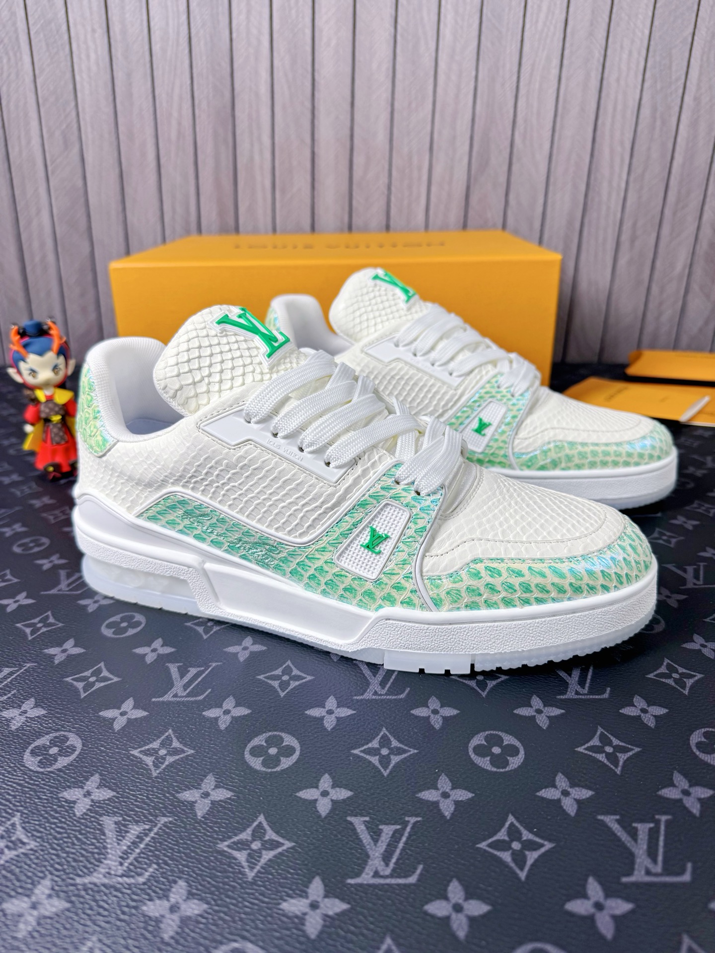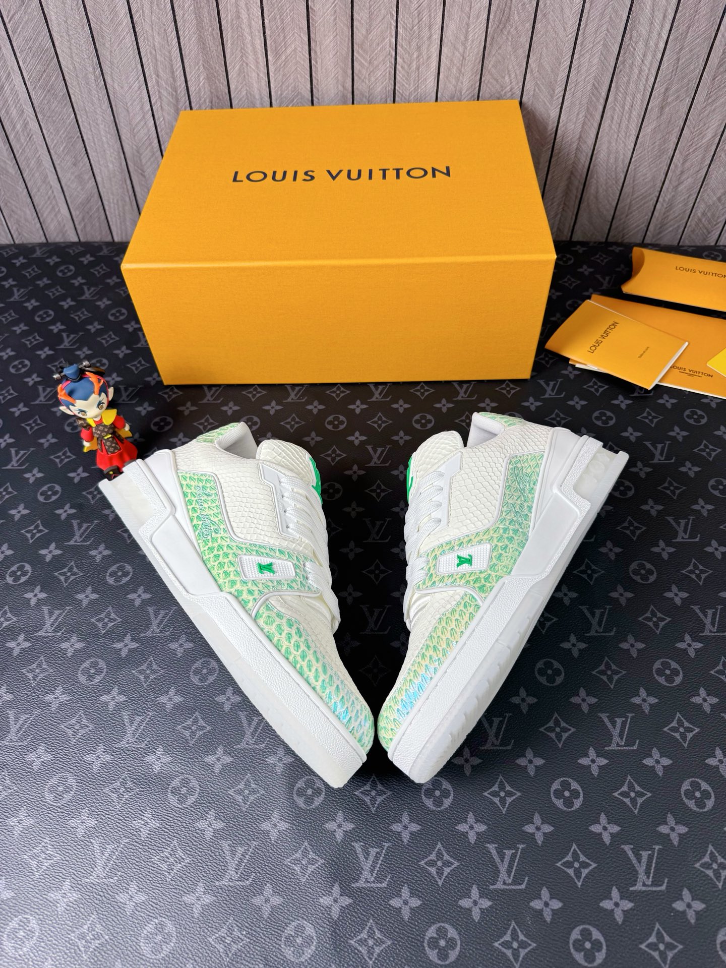 This shoes is AAAAA 1:1 quality (superb). Materials used are identical to the original ones. Louis Vuitton trademark marks are indistinguishable to the authentic. Photos take by actual shoes, what you receive will be 100% same with our photos.
