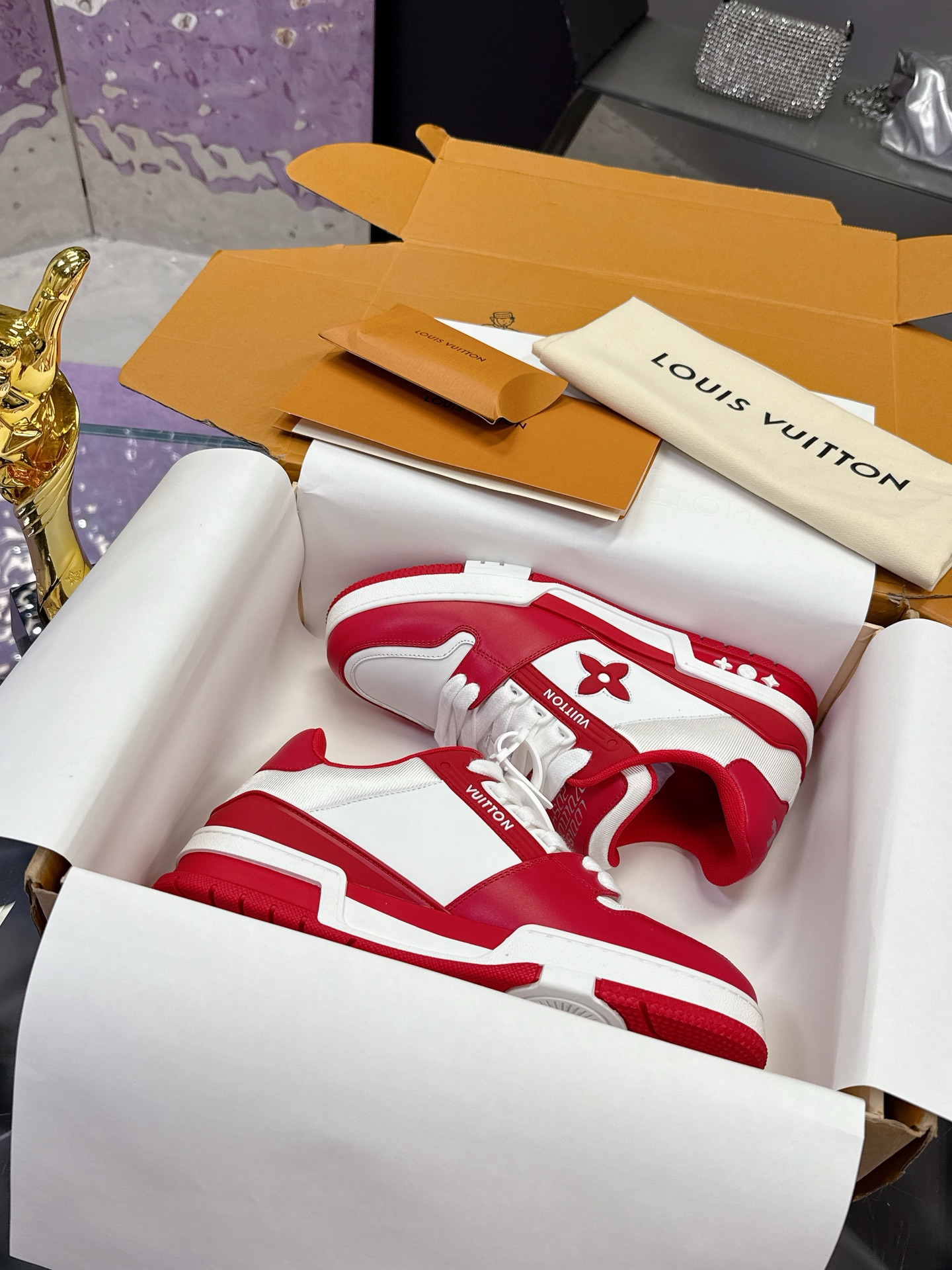 This shoes is AAAAA 1:1 quality (superb). Materials used are identical to the original ones. Louis Vuitton trademark marks are indistinguishable to the authentic. Photos take by actual shoes, what you receive will be 100% same with our photos.