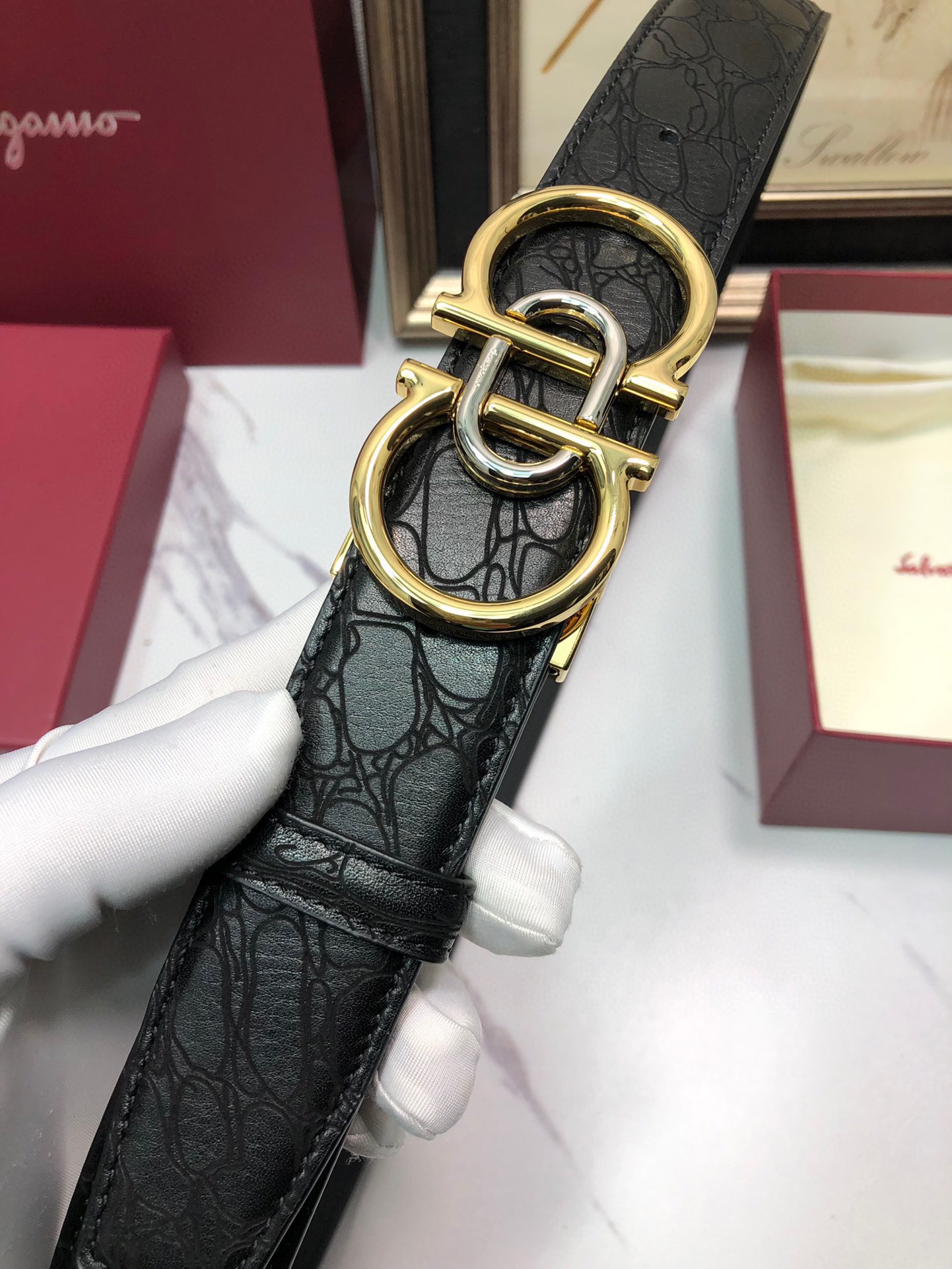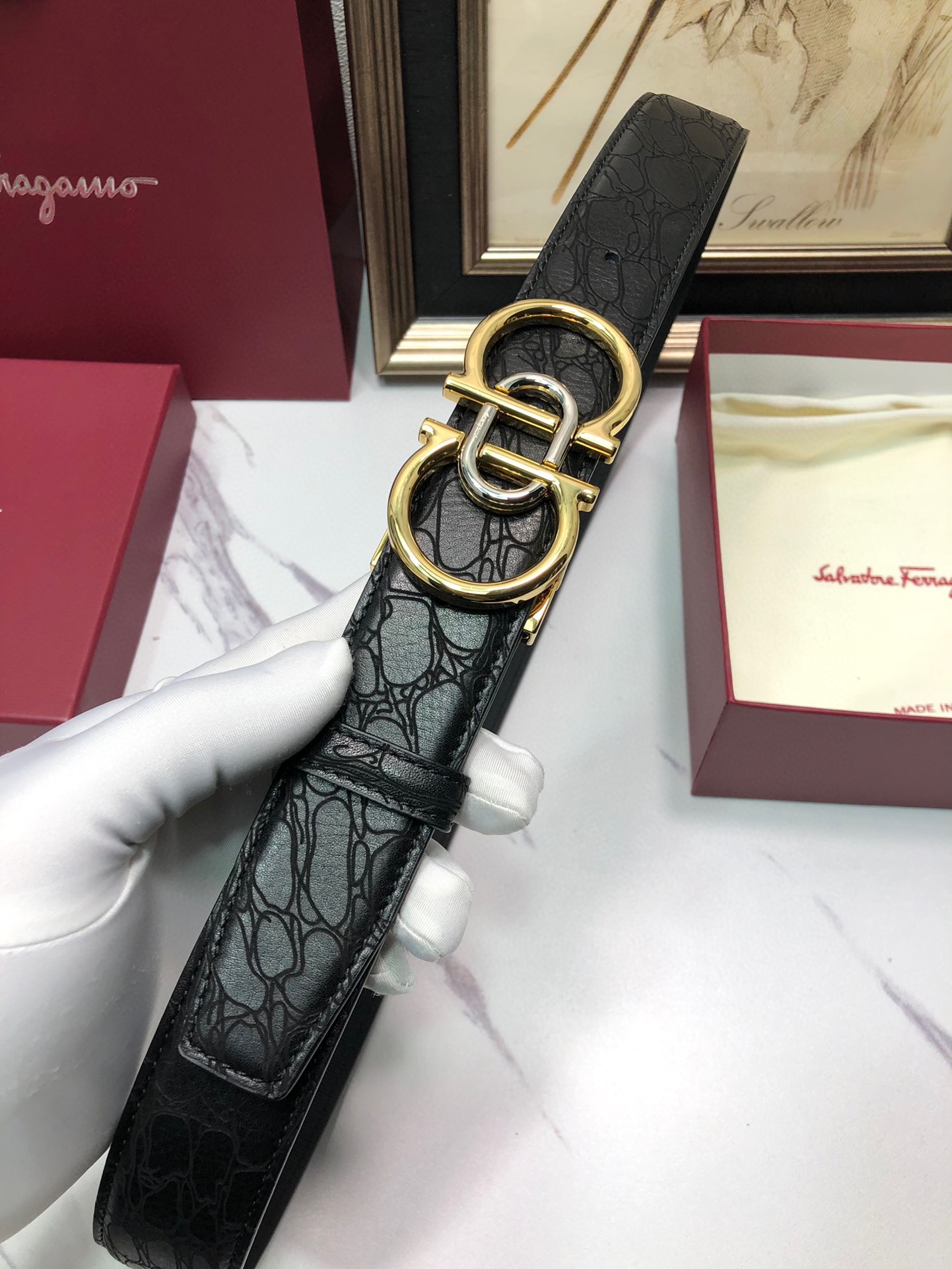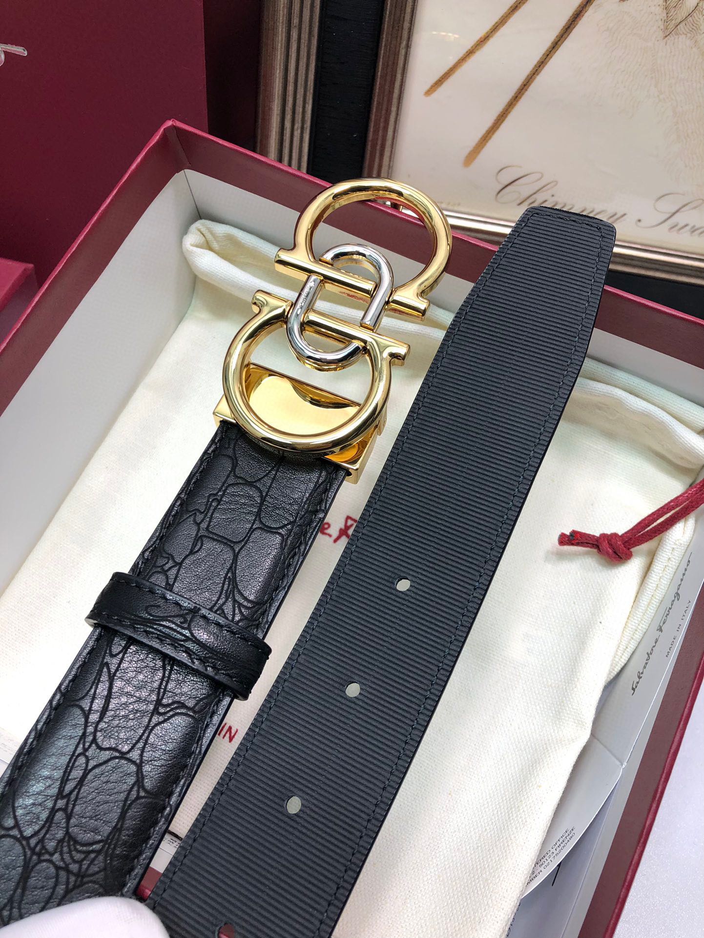 This belt is AAAAA 1:1 quality (superb). Materials used are identical to the original ones. Salvatore Ferragamo trademark marks are indistinguishable to the authentic. Photos take by actual belt, what you receive will be 100% same with our photos.
