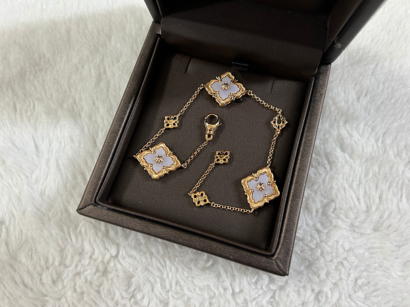 This jewelry is AAAAA 1:1 quality (superb). Materials used are identical to the original ones. Buccellati trademark marks are indistinguishable to the authentic. Photos take by actual jewelry, what you receive will be 100% same with our photos.