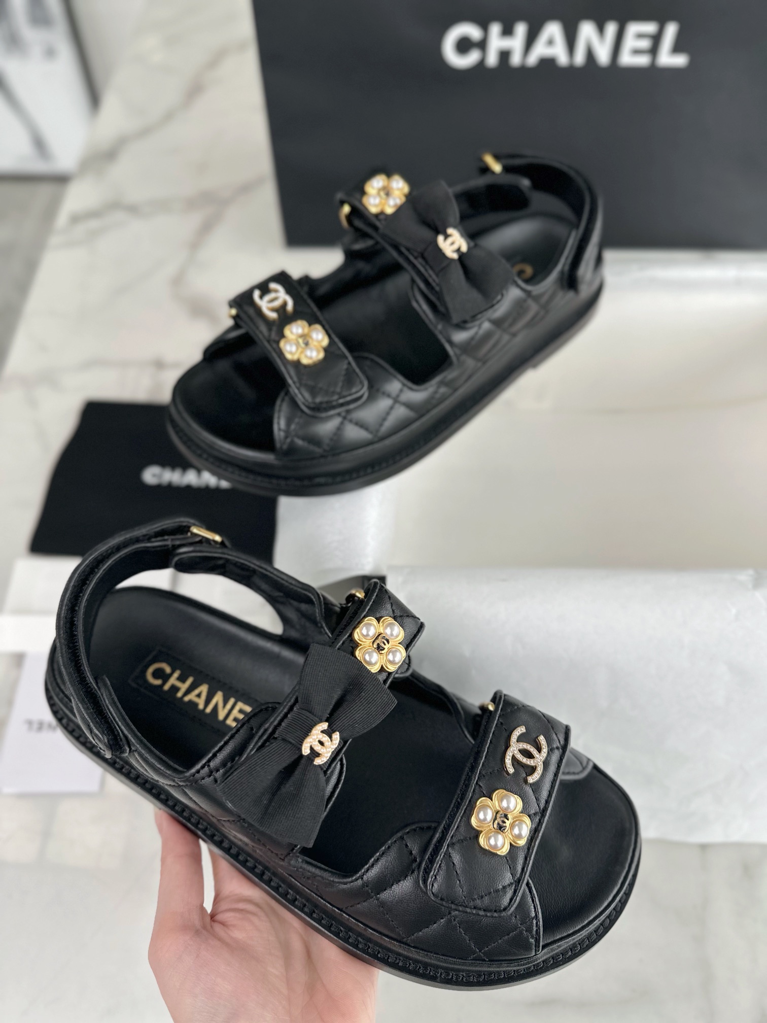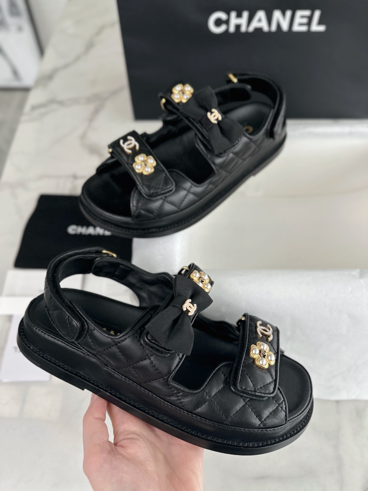 This shoes is AAAAA 1:1 quality (superb). Materials used are identical to the original ones. Chanel trademark marks are indistinguishable to the authentic. Photos take by actual shoes, what you receive will be 100% same with our photos.