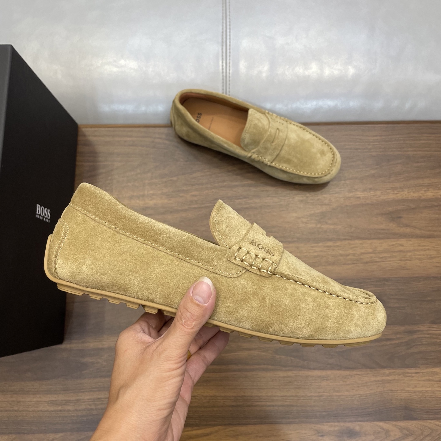 This shoes is AAAAA 1:1 quality (superb). Materials used are identical to the original ones. BOSS trademark marks are indistinguishable to the authentic. Photos take by actual shoes, what you receive will be 100% same with our photos.