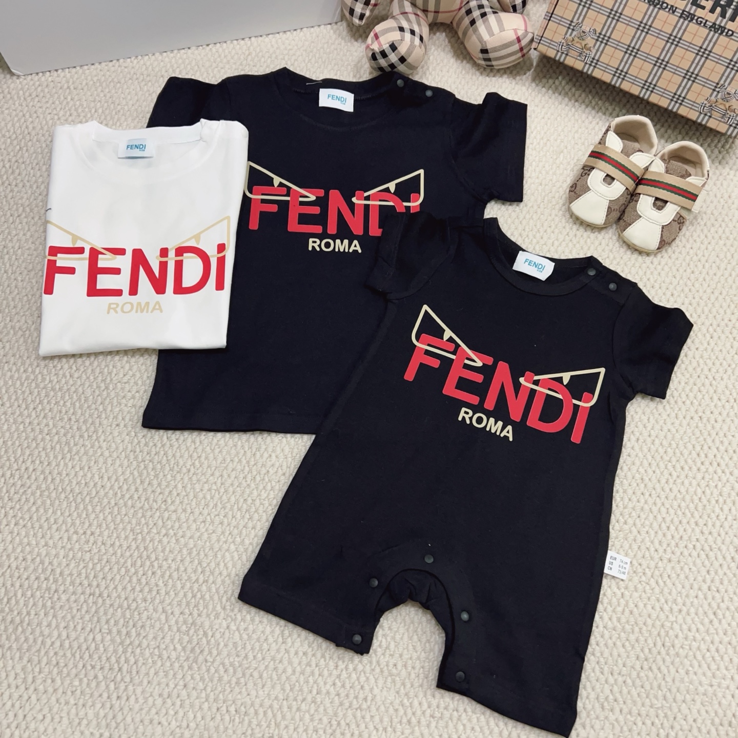 This children's clothes is AAAAA 1:1 quality (superb). Materials used are identical to the original ones. trademark marks are indistinguishable to the authentic. Photos take by actual children's clothes, what you receive will be 100% same with our photos.