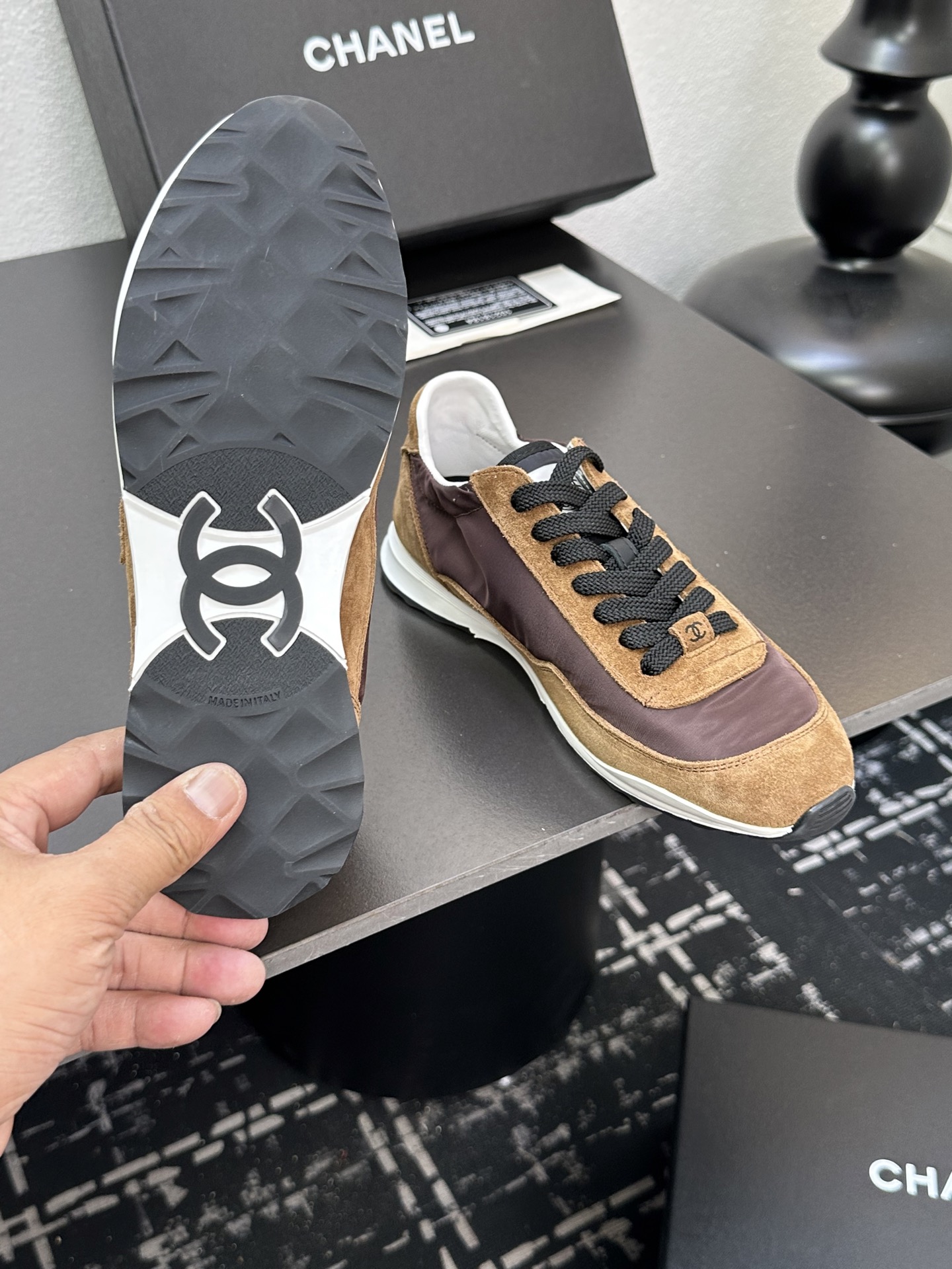 This shoes is AAAAA 1:1 quality (superb). Materials used are identical to the original ones. Chanel trademark marks are indistinguishable to the authentic. Photos take by actual shoes, what you receive will be 100% same with our photos.