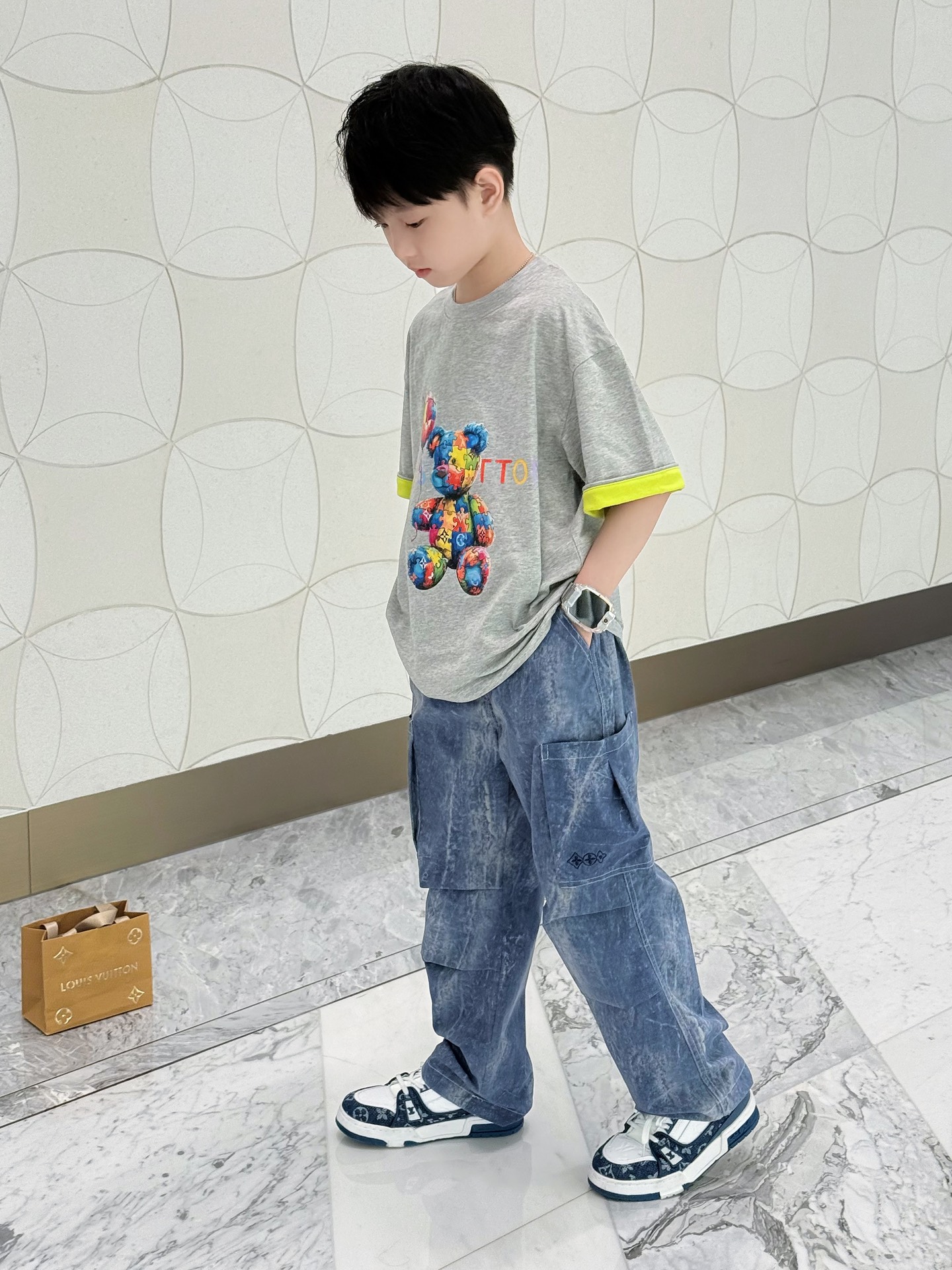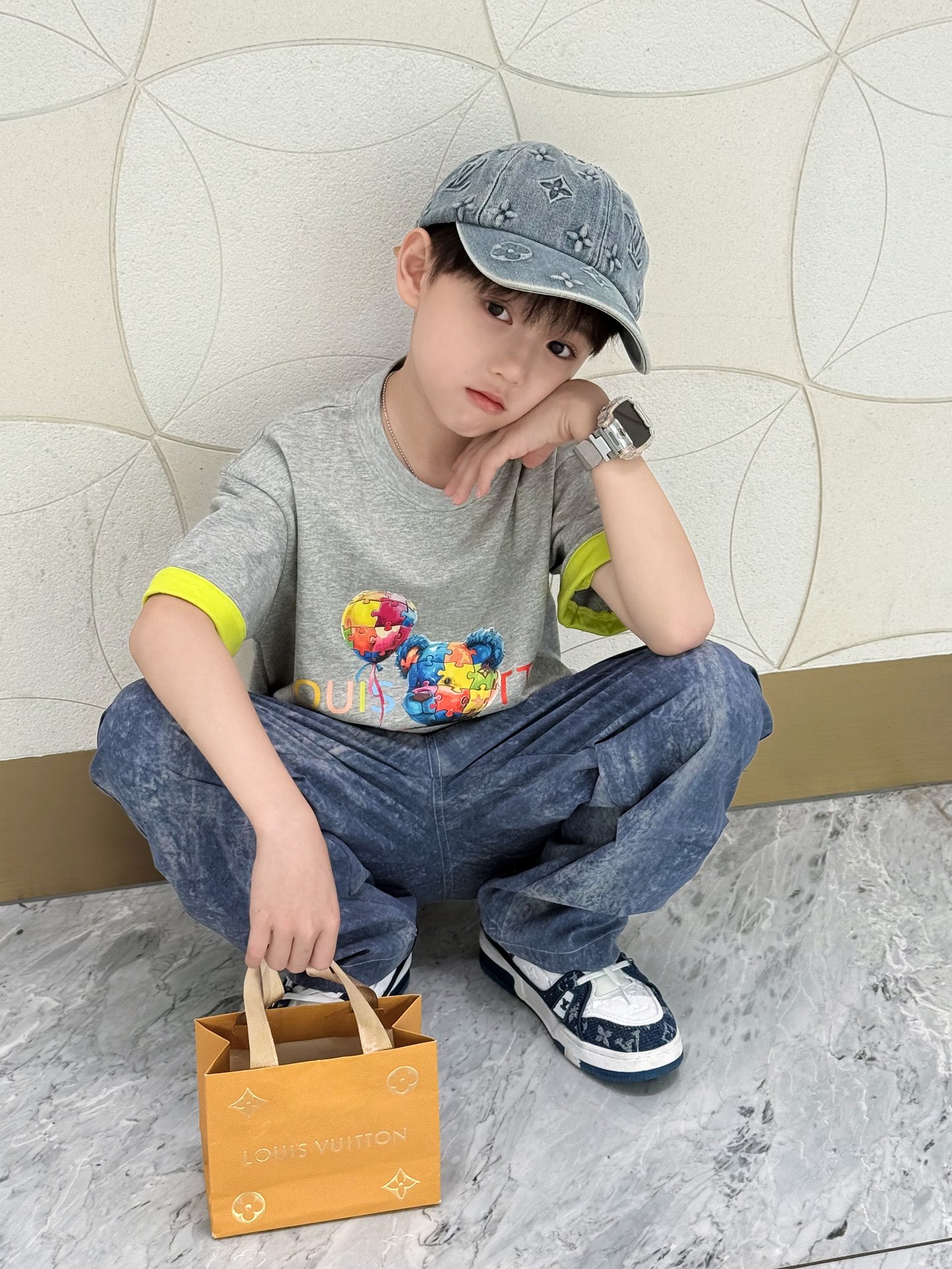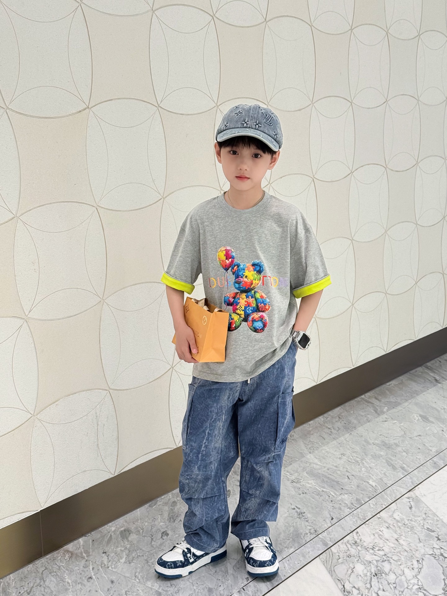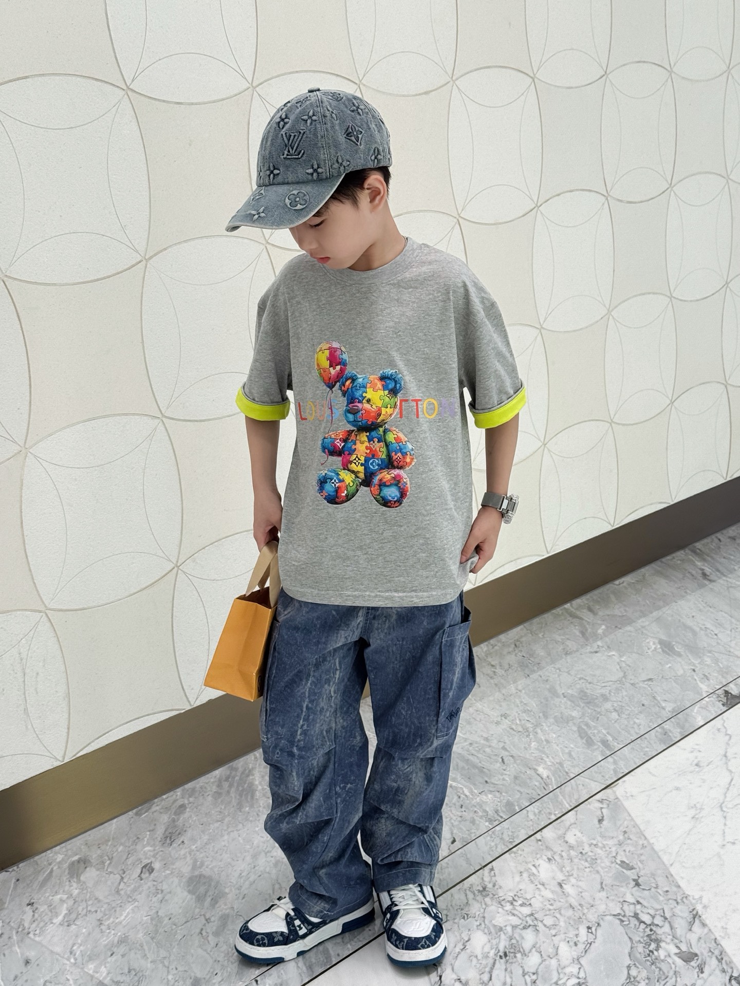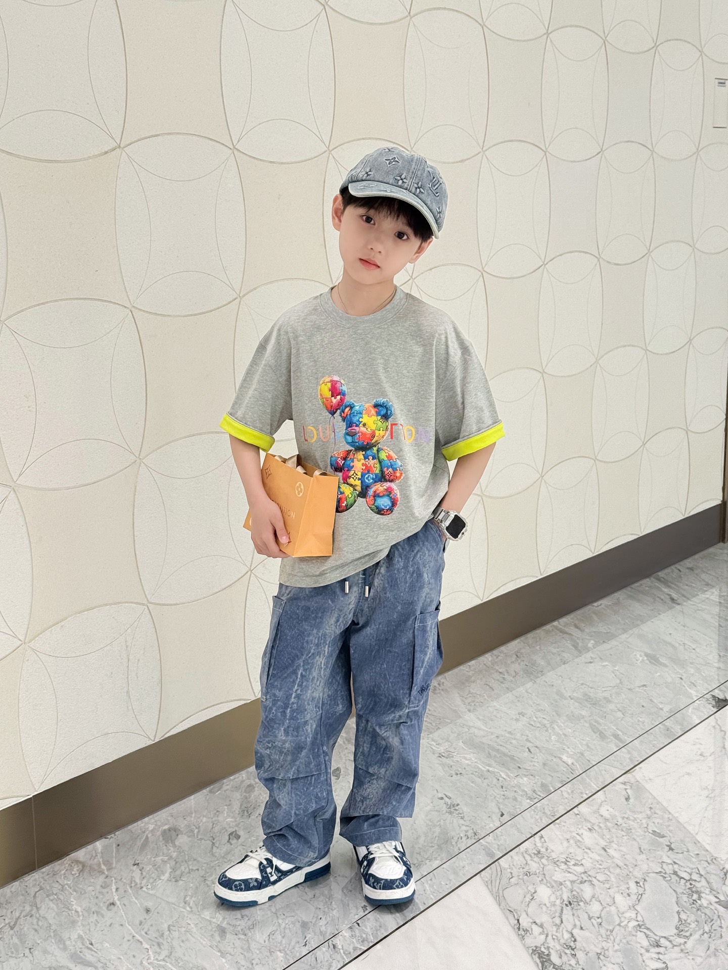 This children's clothes is AAAAA 1:1 quality (superb). Materials used are identical to the original ones. trademark marks are indistinguishable to the authentic. Photos take by actual children's clothes, what you receive will be 100% same with our photos.