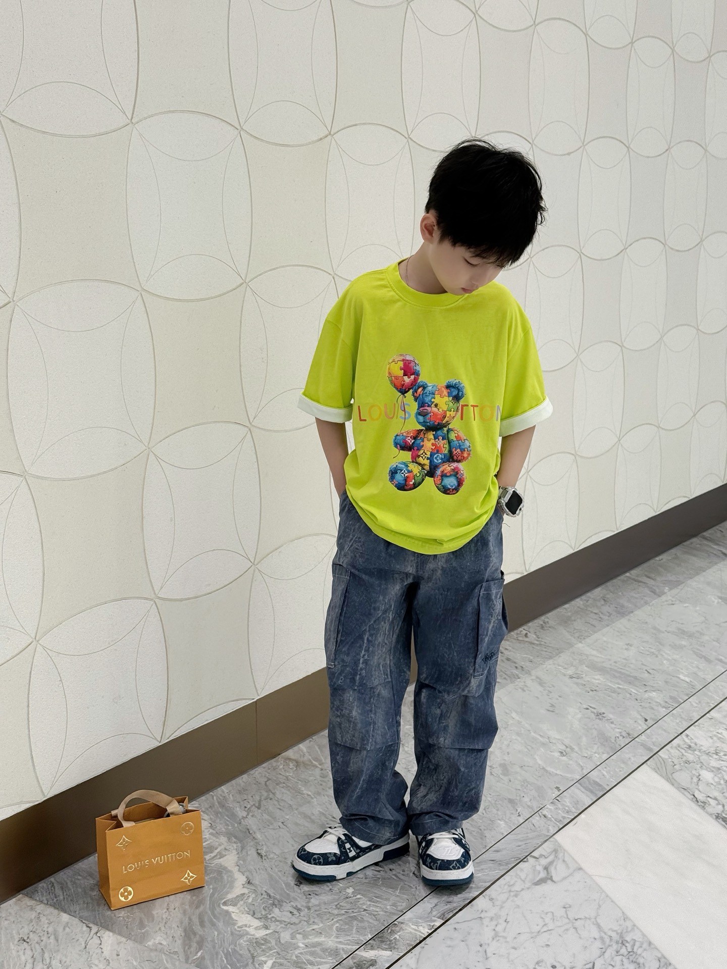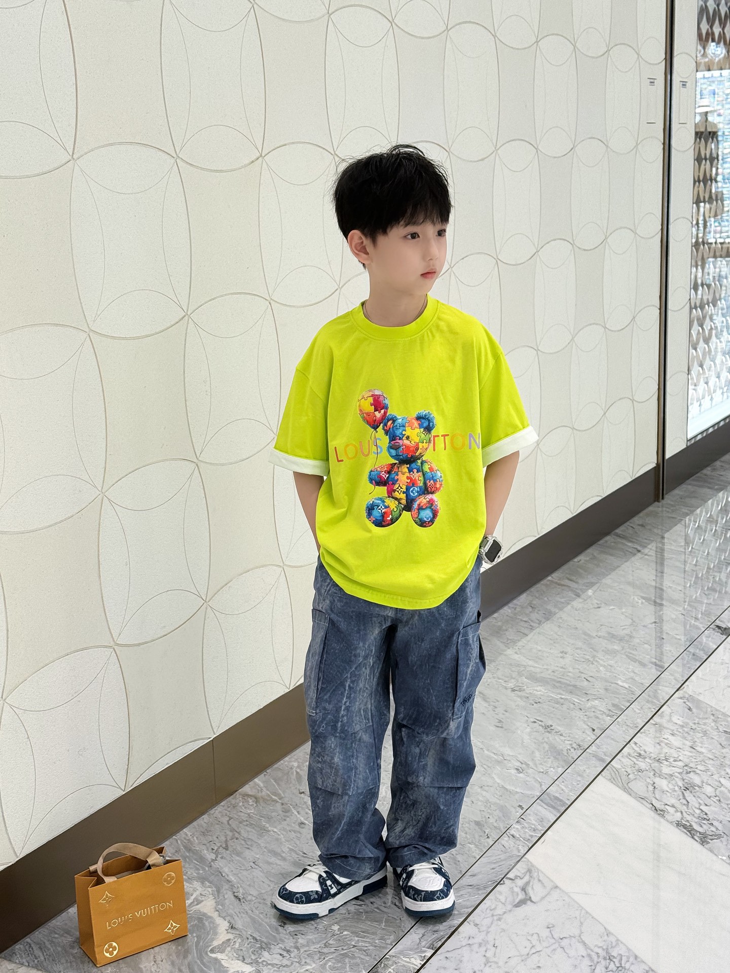 This children's clothes is AAAAA 1:1 quality (superb). Materials used are identical to the original ones. trademark marks are indistinguishable to the authentic. Photos take by actual children's clothes, what you receive will be 100% same with our photos.