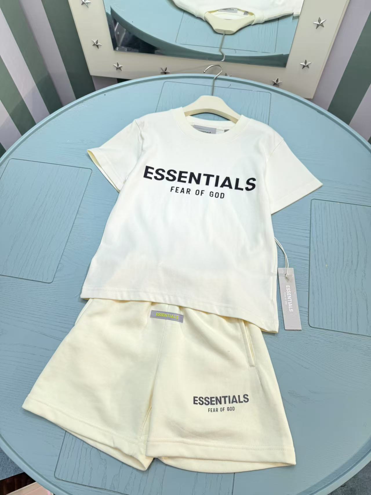 This children's clothes is AAAAA 1:1 quality (superb). Materials used are identical to the original ones. ESSENTIALS trademark marks are indistinguishable to the authentic. Photos take by actual children's clothes, what you receive will be 100% same with our photos.