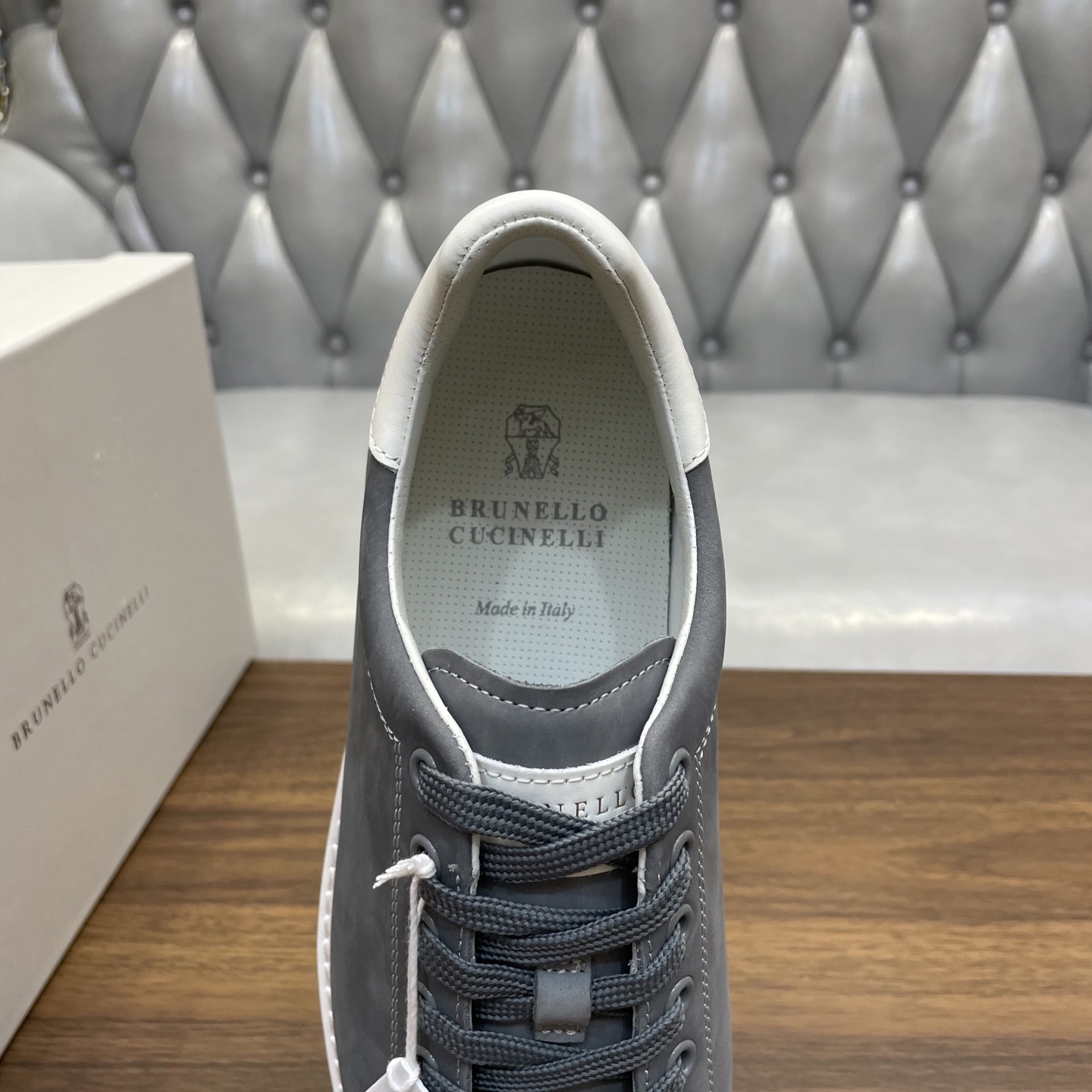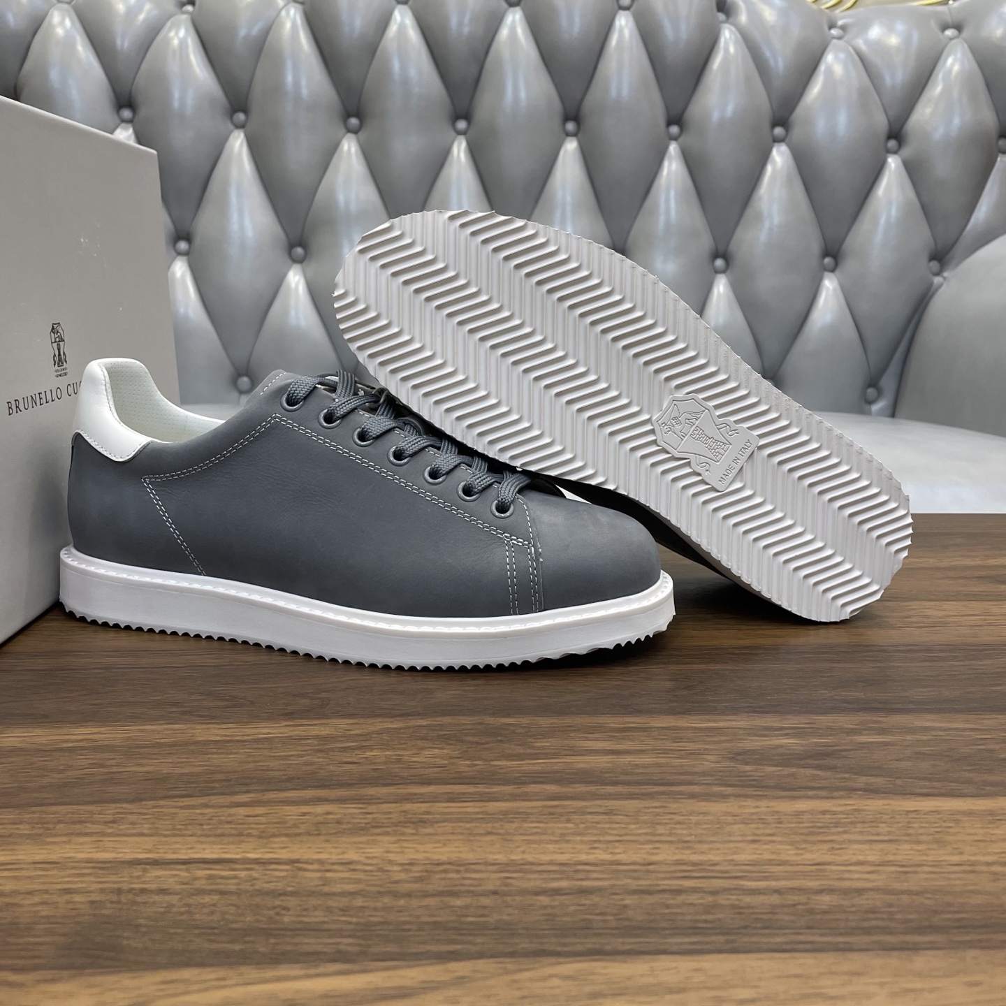 This shoes is AAAAA 1:1 quality (superb). Materials used are identical to the original ones. Brunello Cucinelli trademark marks are indistinguishable to the authentic. Photos take by actual shoes, what you receive will be 100% same with our photos.