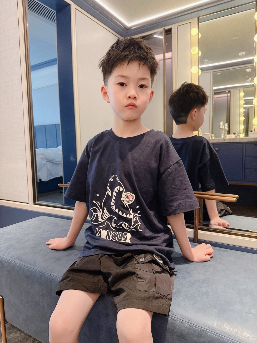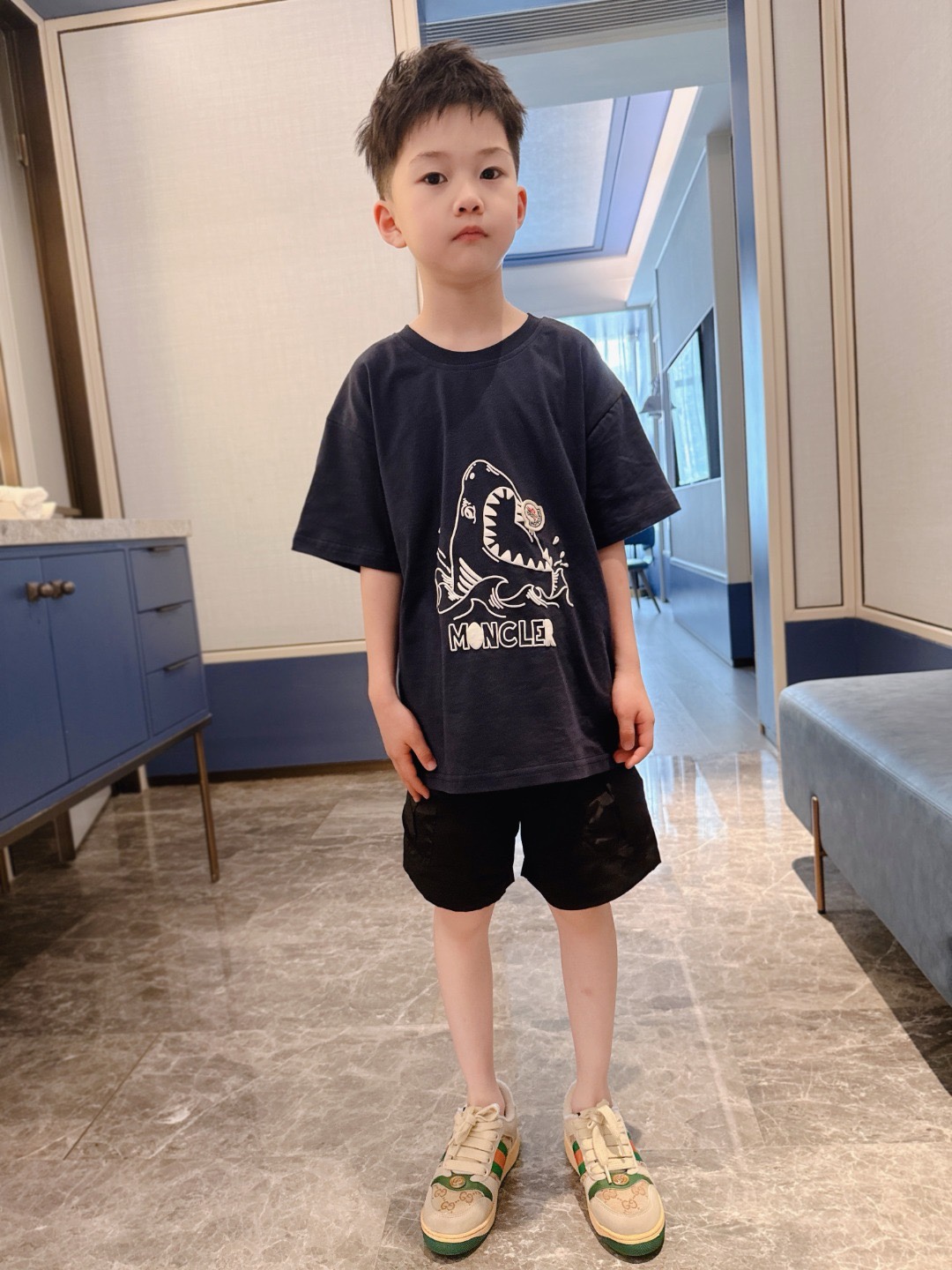 This children's clothes is AAAAA 1:1 quality (superb). Materials used are identical to the original ones. trademark marks are indistinguishable to the authentic. Photos take by actual children's clothes, what you receive will be 100% same with our photos.
