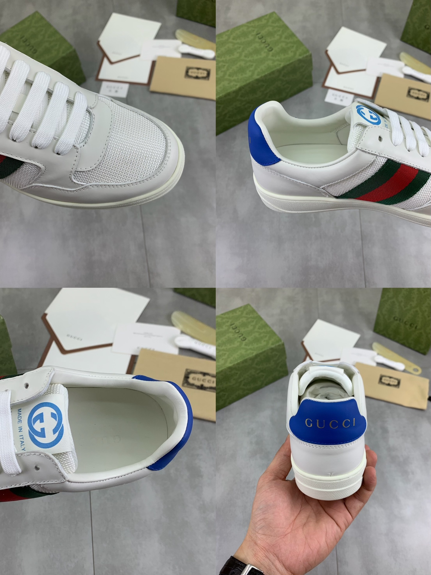 This shoes is AAAAA 1:1 quality (superb). Materials used are identical to the original ones. Gucci trademark marks are indistinguishable to the authentic. Photos take by actual shoes, what you receive will be 100% same with our photos.
