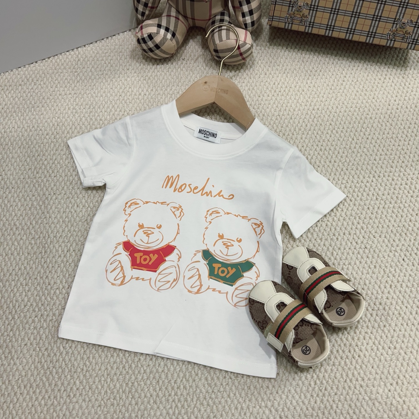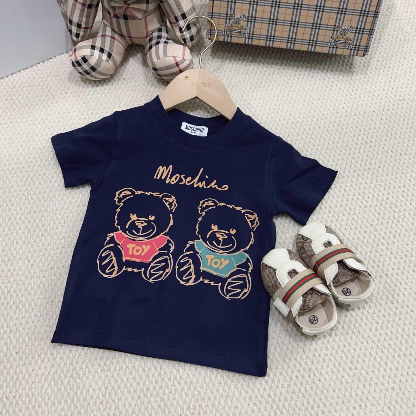 This children's clothes is AAAAA 1:1 quality (superb). Materials used are identical to the original ones. trademark marks are indistinguishable to the authentic. Photos take by actual children's clothes, what you receive will be 100% same with our photos.