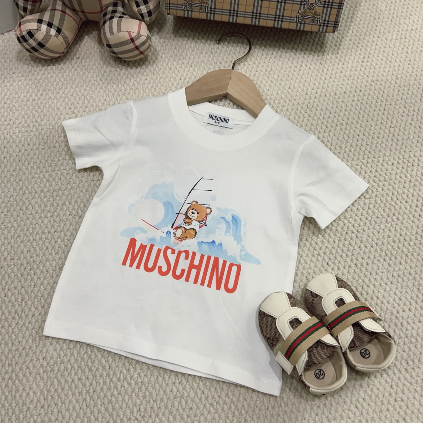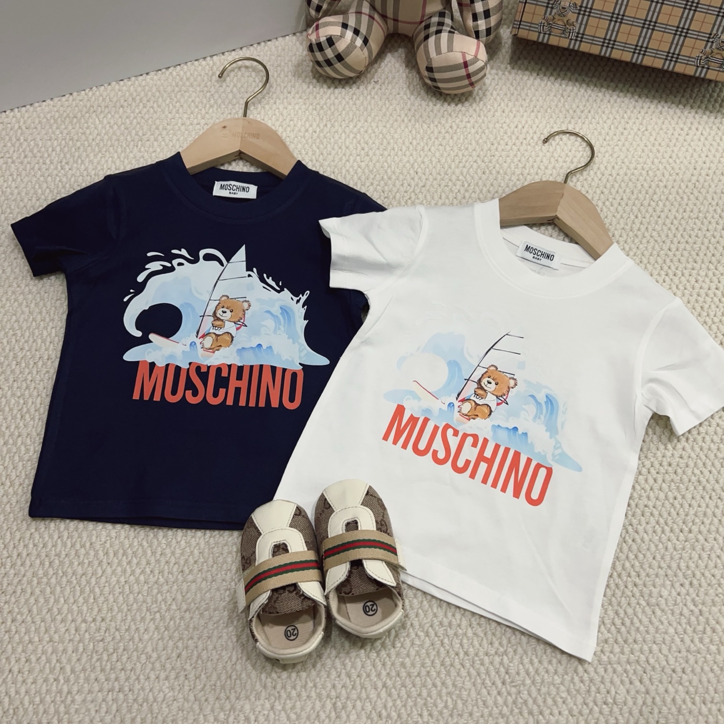 This children's clothes is AAAAA 1:1 quality (superb). Materials used are identical to the original ones. trademark marks are indistinguishable to the authentic. Photos take by actual children's clothes, what you receive will be 100% same with our photos.