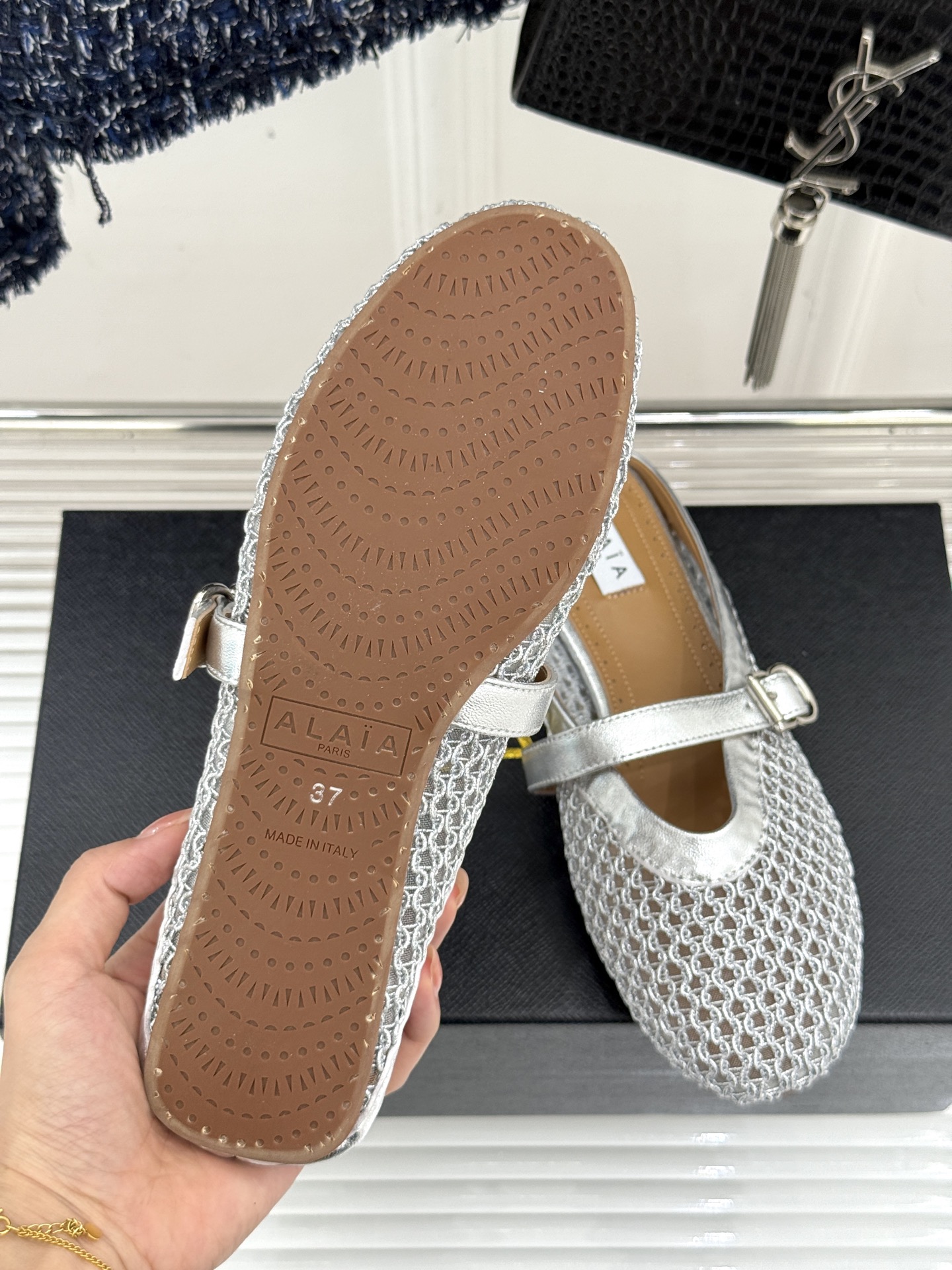 This shoes is AAAAA 1:1 quality (superb). Materials used are identical to the original ones. Alaia trademark marks are indistinguishable to the authentic. Photos take by actual shoes, what you receive will be 100% same with our photos.