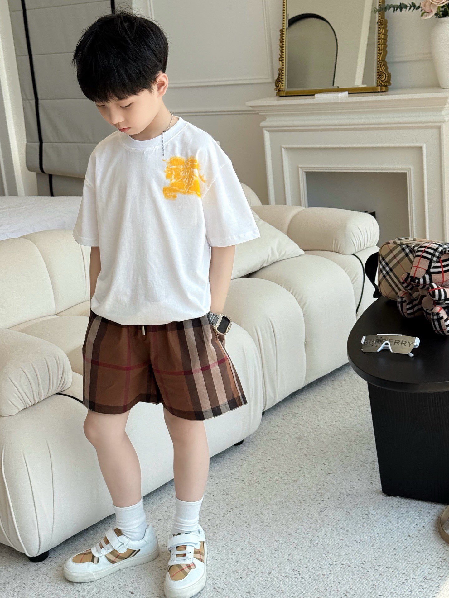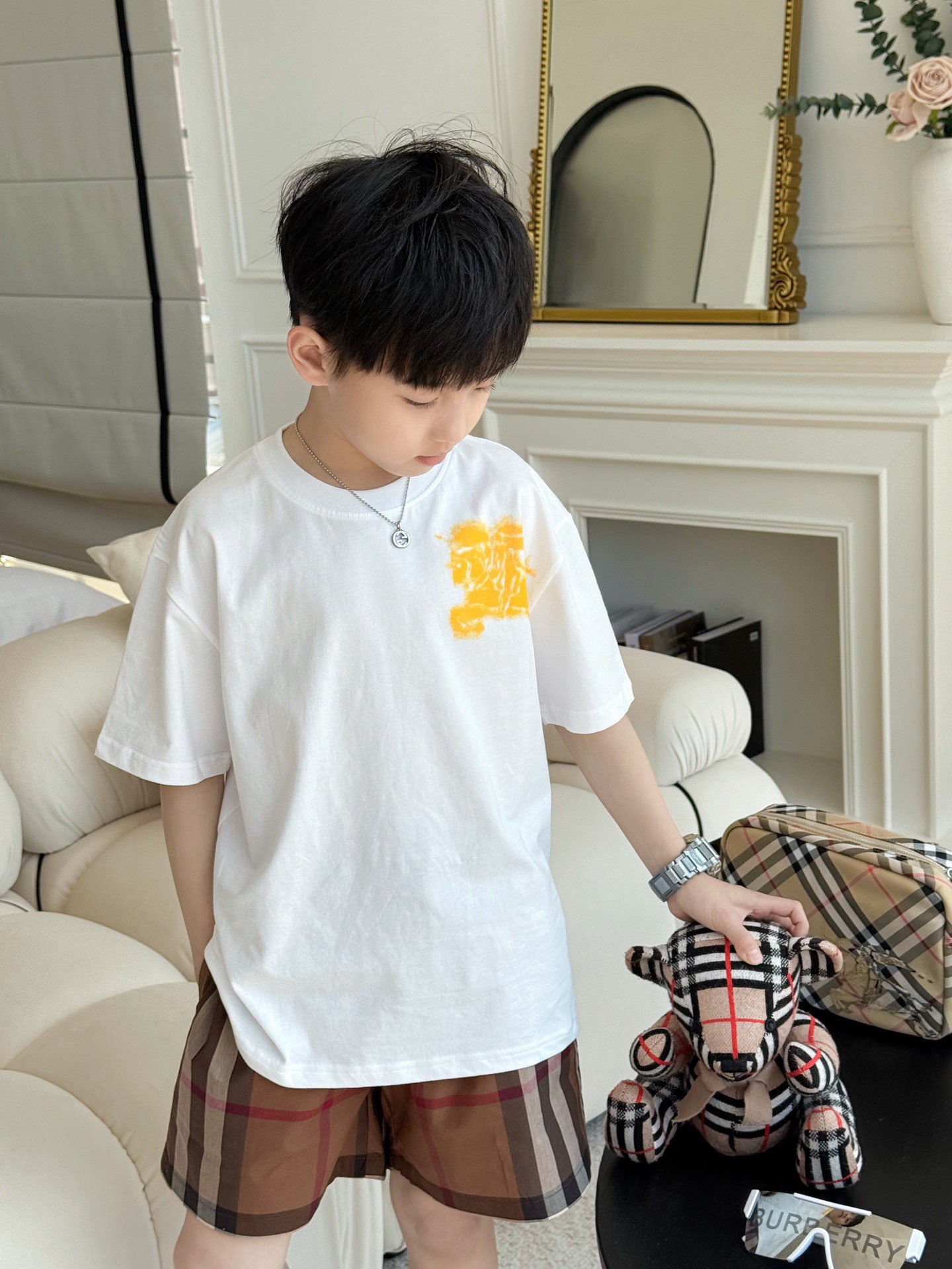 This children's clothes is AAAAA 1:1 quality (superb). Materials used are identical to the original ones. trademark marks are indistinguishable to the authentic. Photos take by actual children's clothes, what you receive will be 100% same with our photos.