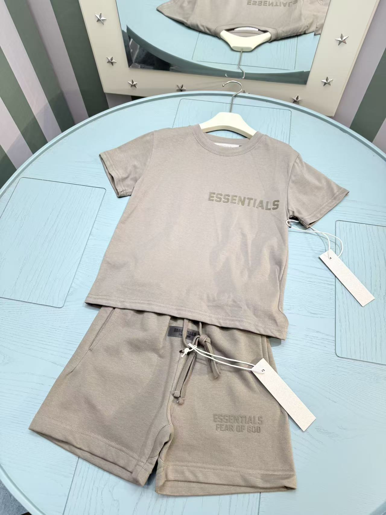This children's clothes is AAAAA 1:1 quality (superb). Materials used are identical to the original ones. ESSENTIALS trademark marks are indistinguishable to the authentic. Photos take by actual children's clothes, what you receive will be 100% same with our photos.