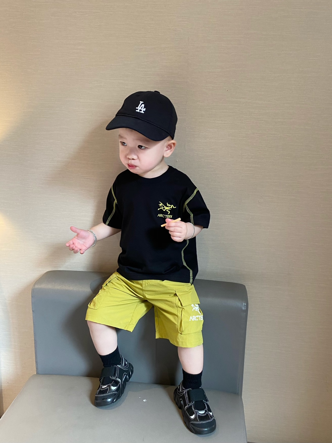 This children's clothes is AAAAA 1:1 quality (superb). Materials used are identical to the original ones. trademark marks are indistinguishable to the authentic. Photos take by actual children's clothes, what you receive will be 100% same with our photos.