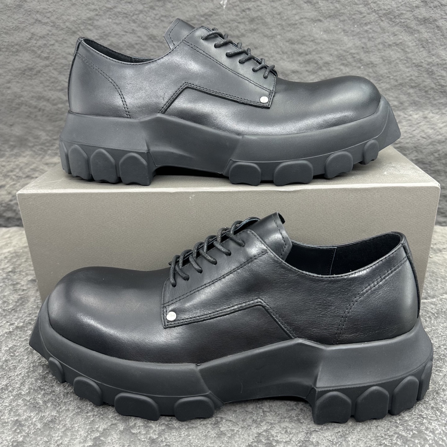 This shoes is AAAAA 1:1 quality (superb). Materials used are identical to the original ones. Rick Owens trademark marks are indistinguishable to the authentic. Photos take by actual shoes, what you receive will be 100% same with our photos.
