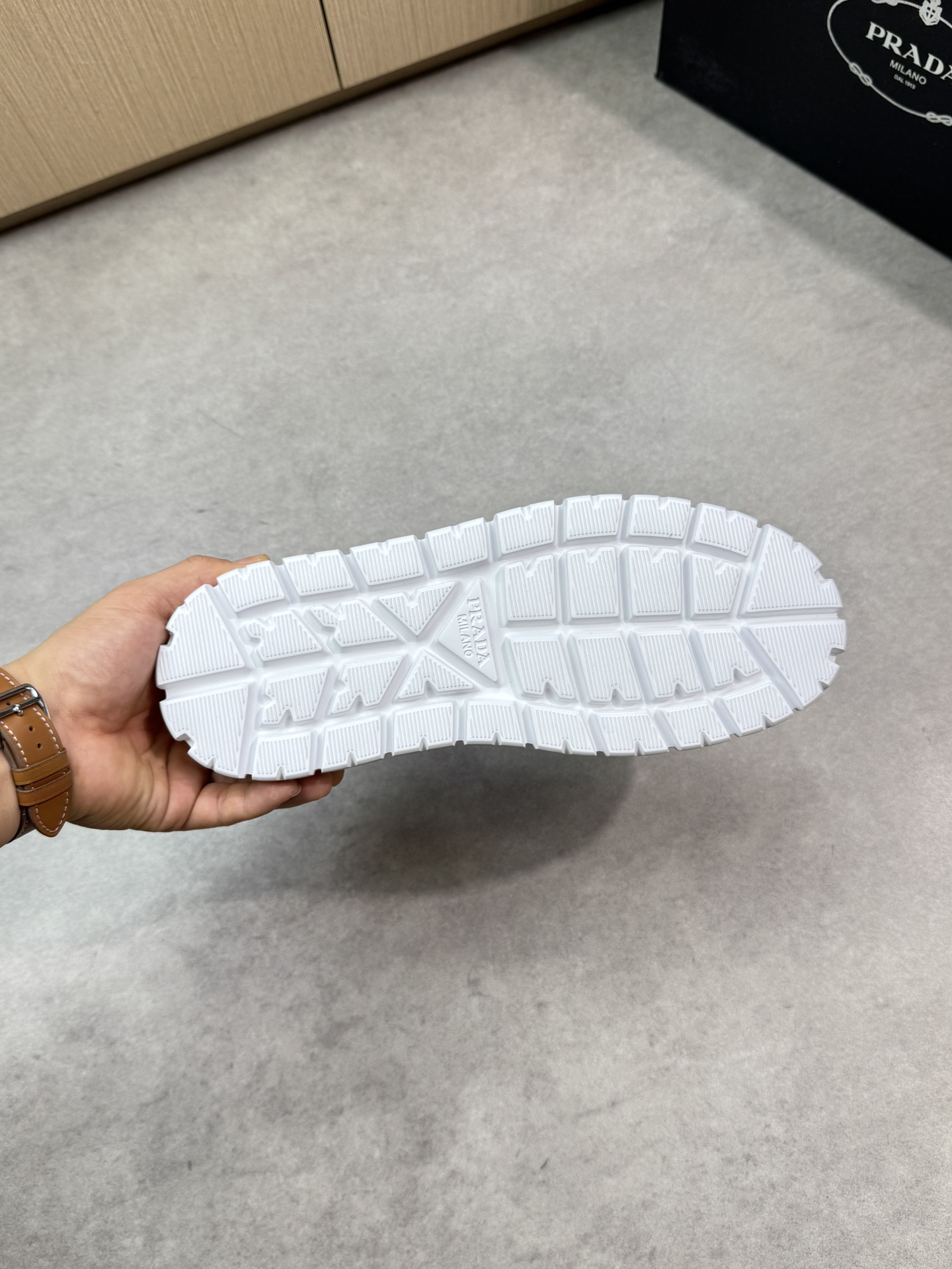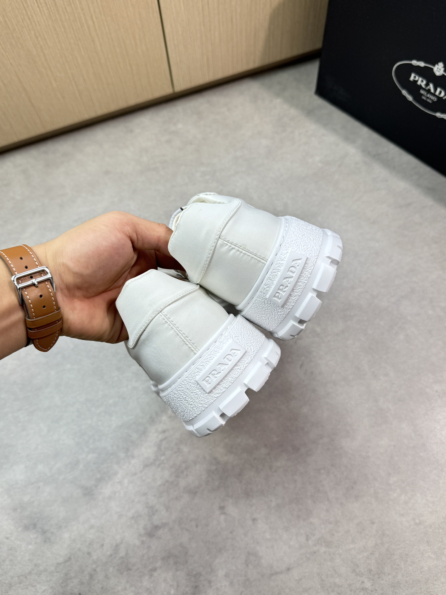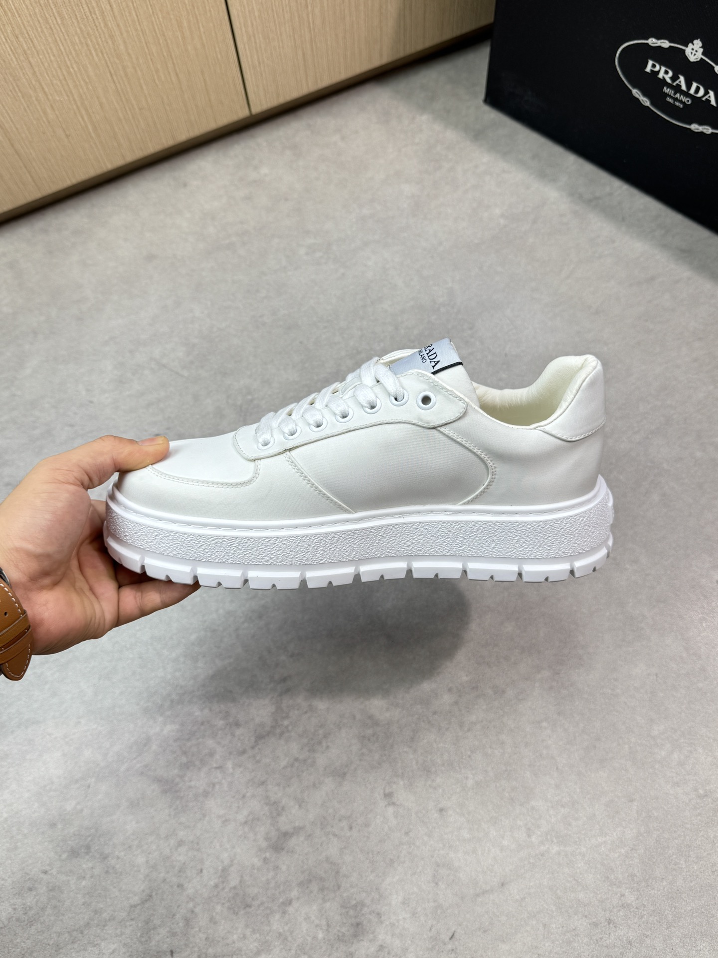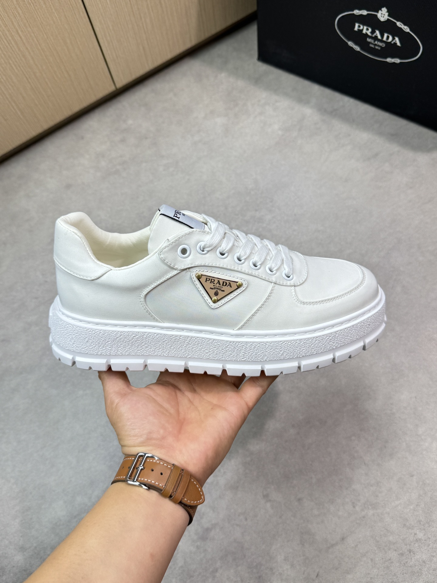 This shoes is AAAAA 1:1 quality (superb). Materials used are identical to the original ones. Prada trademark marks are indistinguishable to the authentic. Photos take by actual shoes, what you receive will be 100% same with our photos.