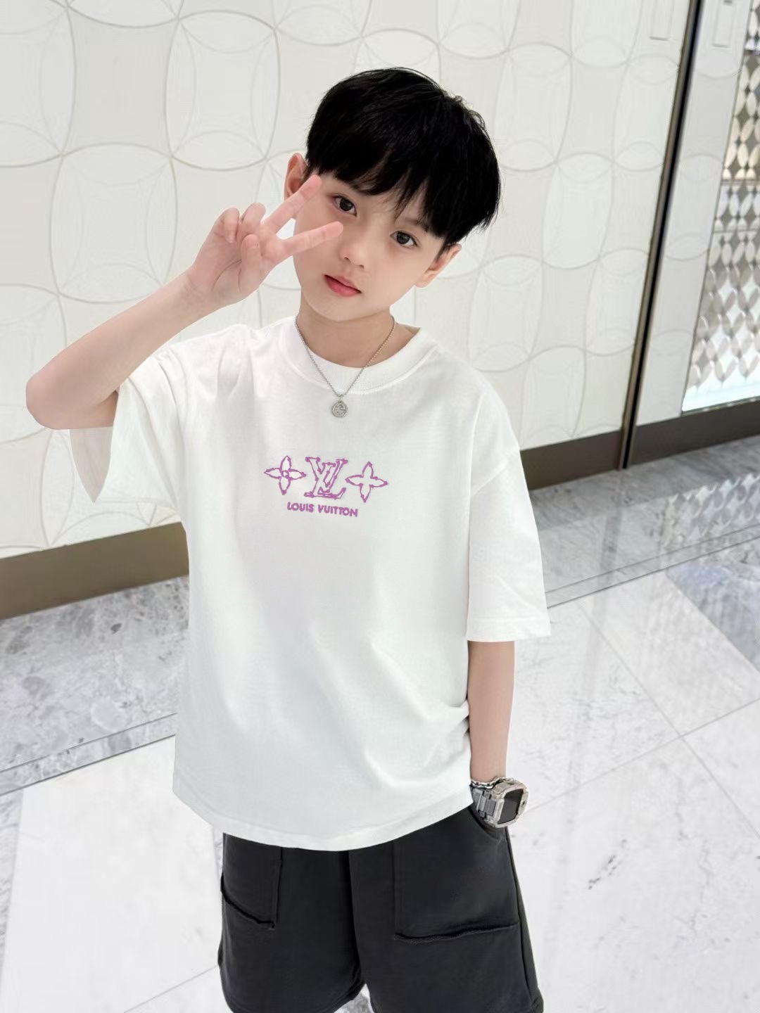 This children's clothes is AAAAA 1:1 quality (superb). Materials used are identical to the original ones. trademark marks are indistinguishable to the authentic. Photos take by actual children's clothes, what you receive will be 100% same with our photos.