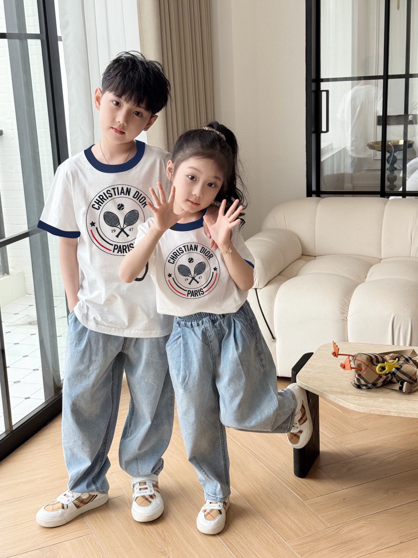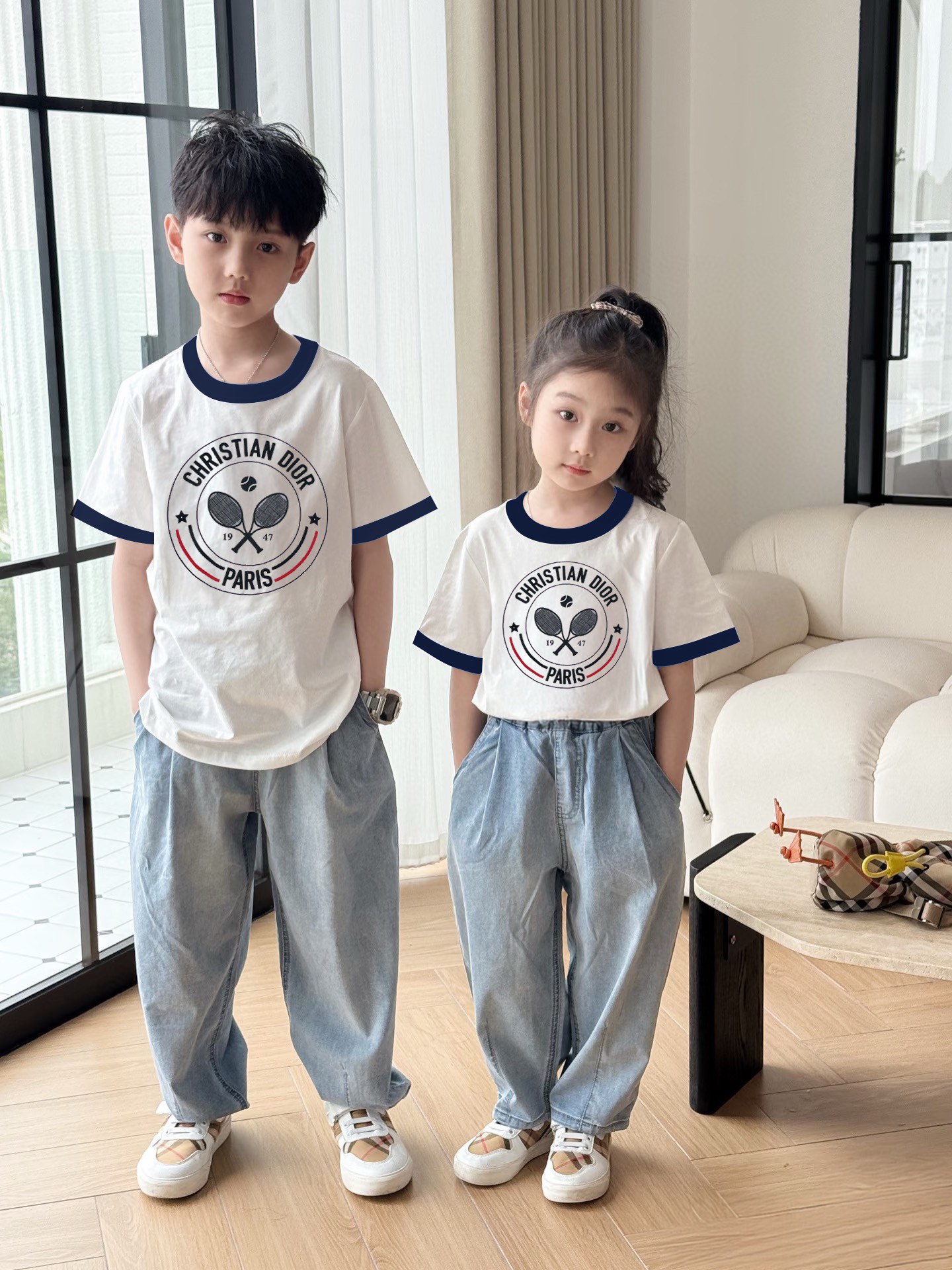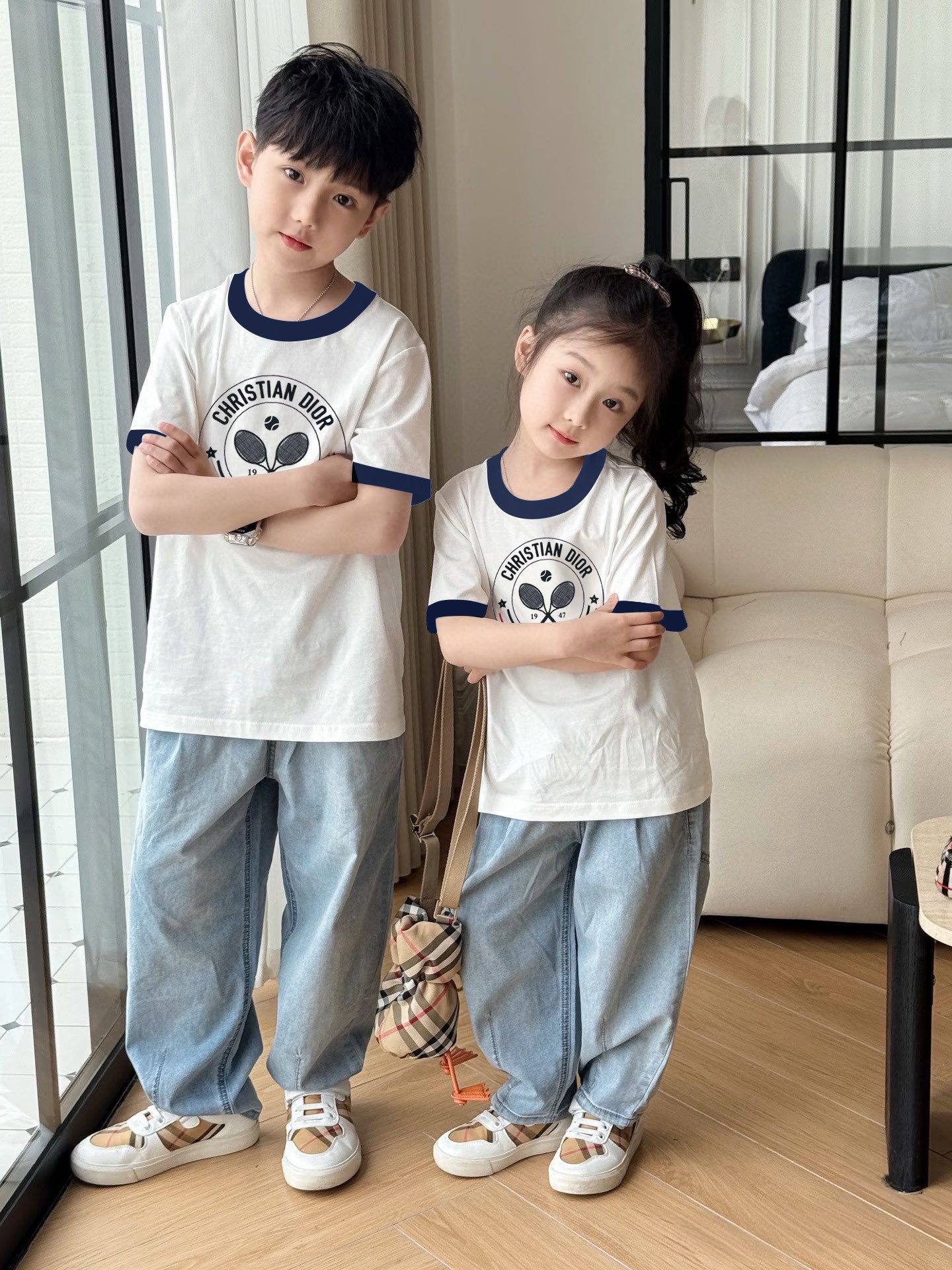 This children's clothes is AAAAA 1:1 quality (superb). Materials used are identical to the original ones. trademark marks are indistinguishable to the authentic. Photos take by actual children's clothes, what you receive will be 100% same with our photos.