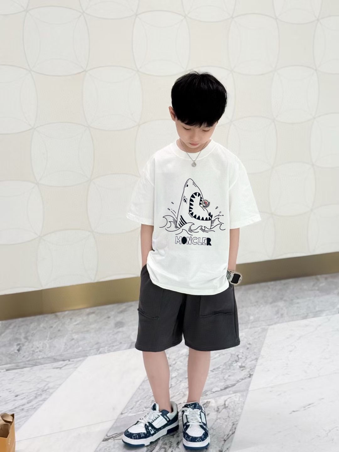 This children's clothes is AAAAA 1:1 quality (superb). Materials used are identical to the original ones. trademark marks are indistinguishable to the authentic. Photos take by actual children's clothes, what you receive will be 100% same with our photos.