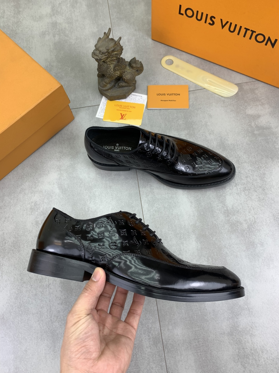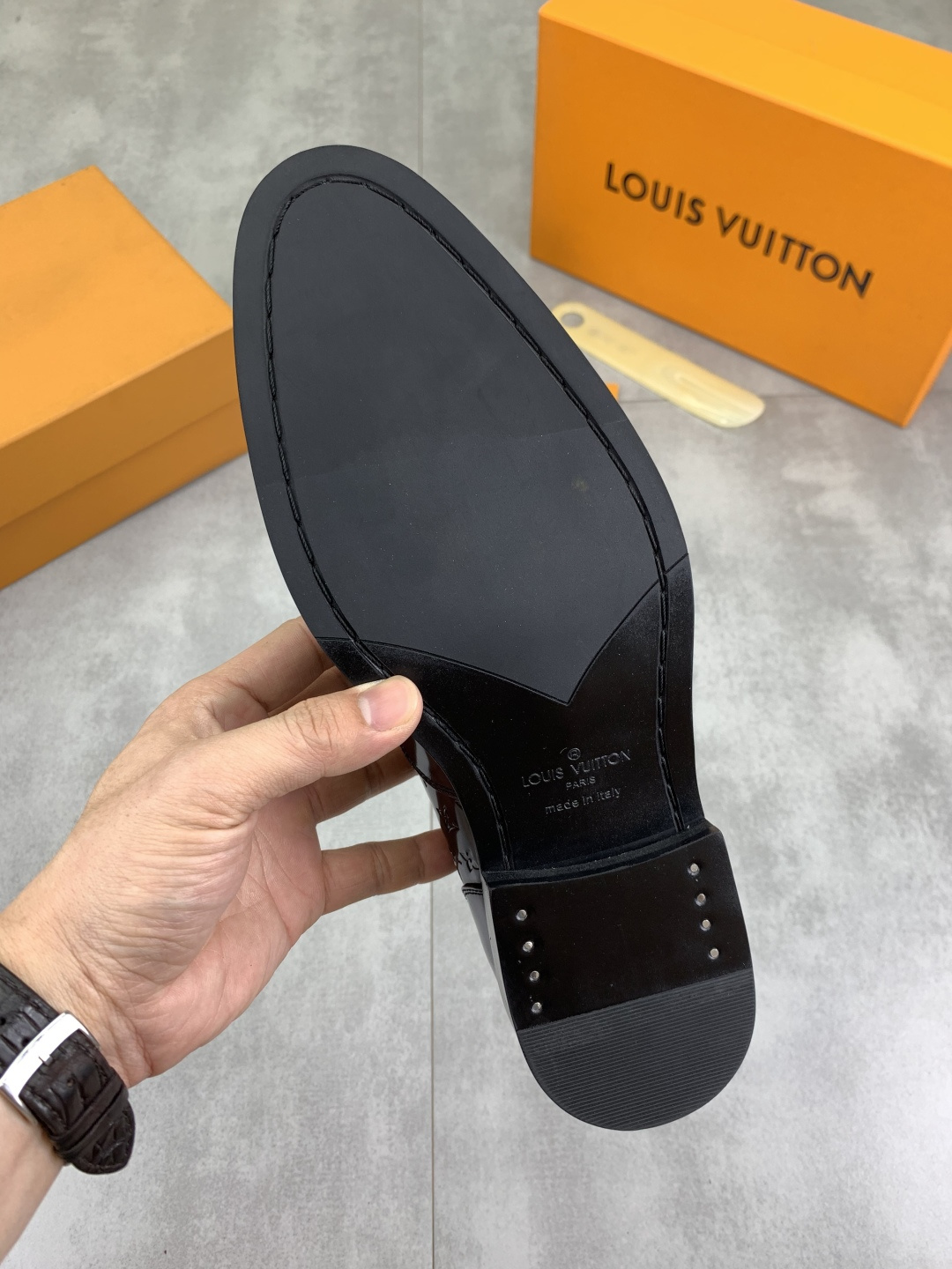 This shoes is AAAAA 1:1 quality (superb). Materials used are identical to the original ones. Louis Vuitton trademark marks are indistinguishable to the authentic. Photos take by actual shoes, what you receive will be 100% same with our photos.